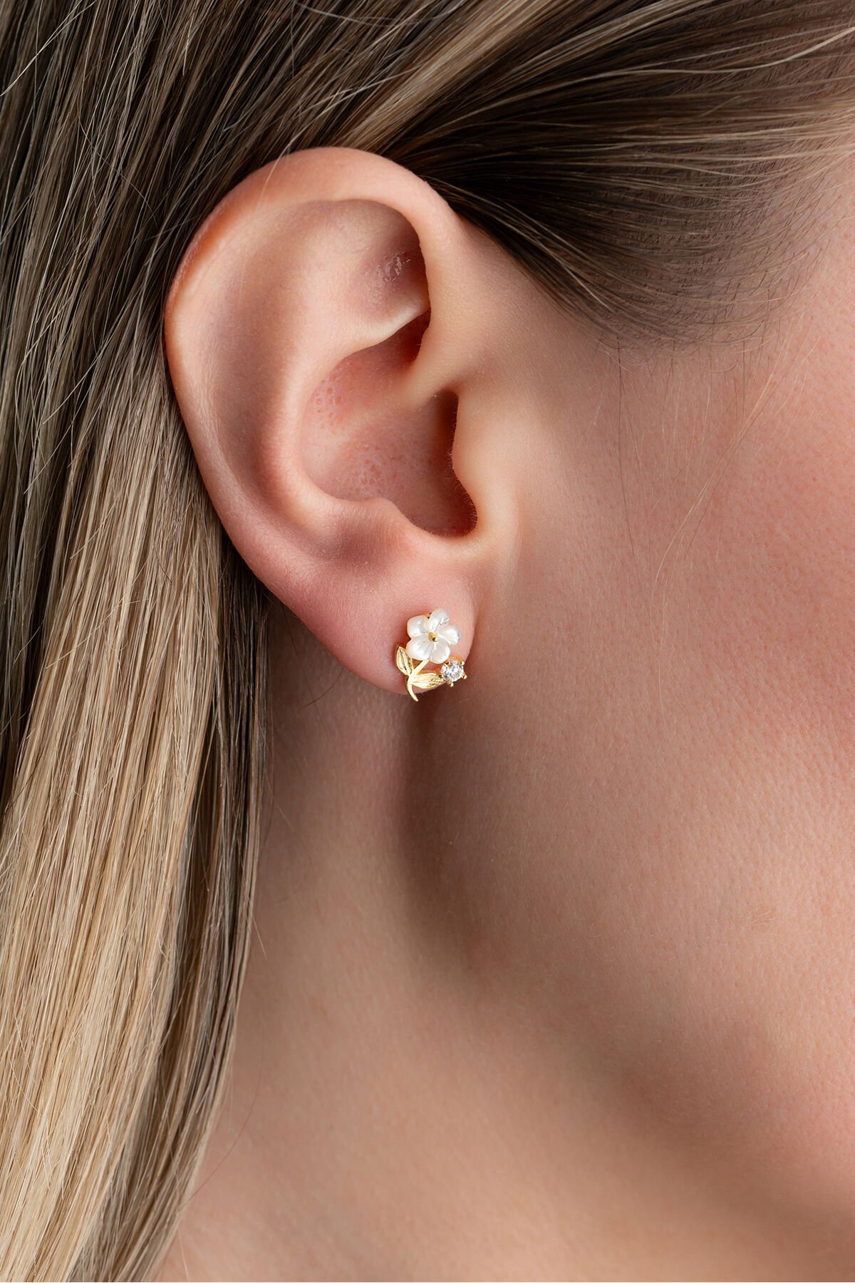 925 Ayar Gümüş Sedefli Çivili Küpe