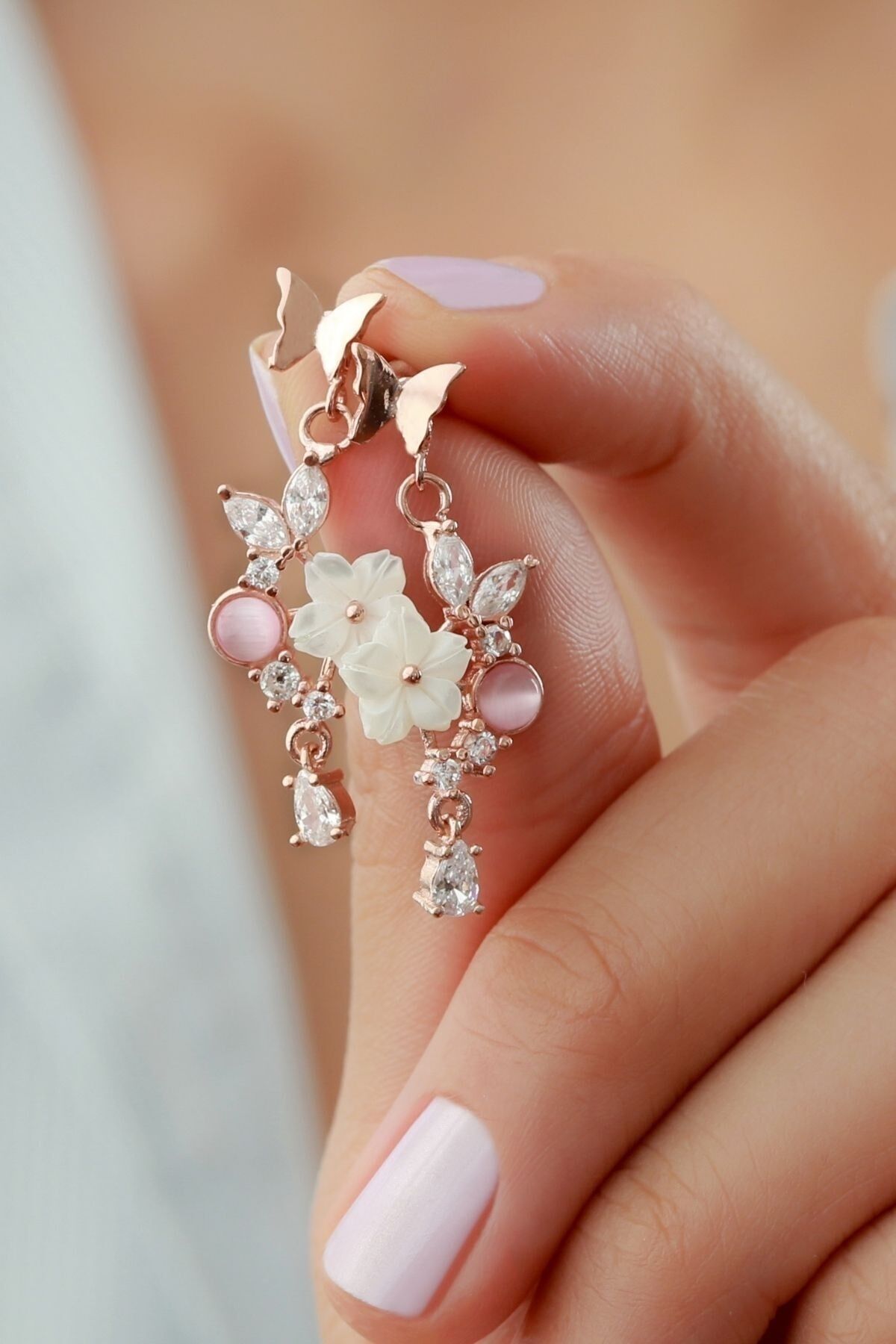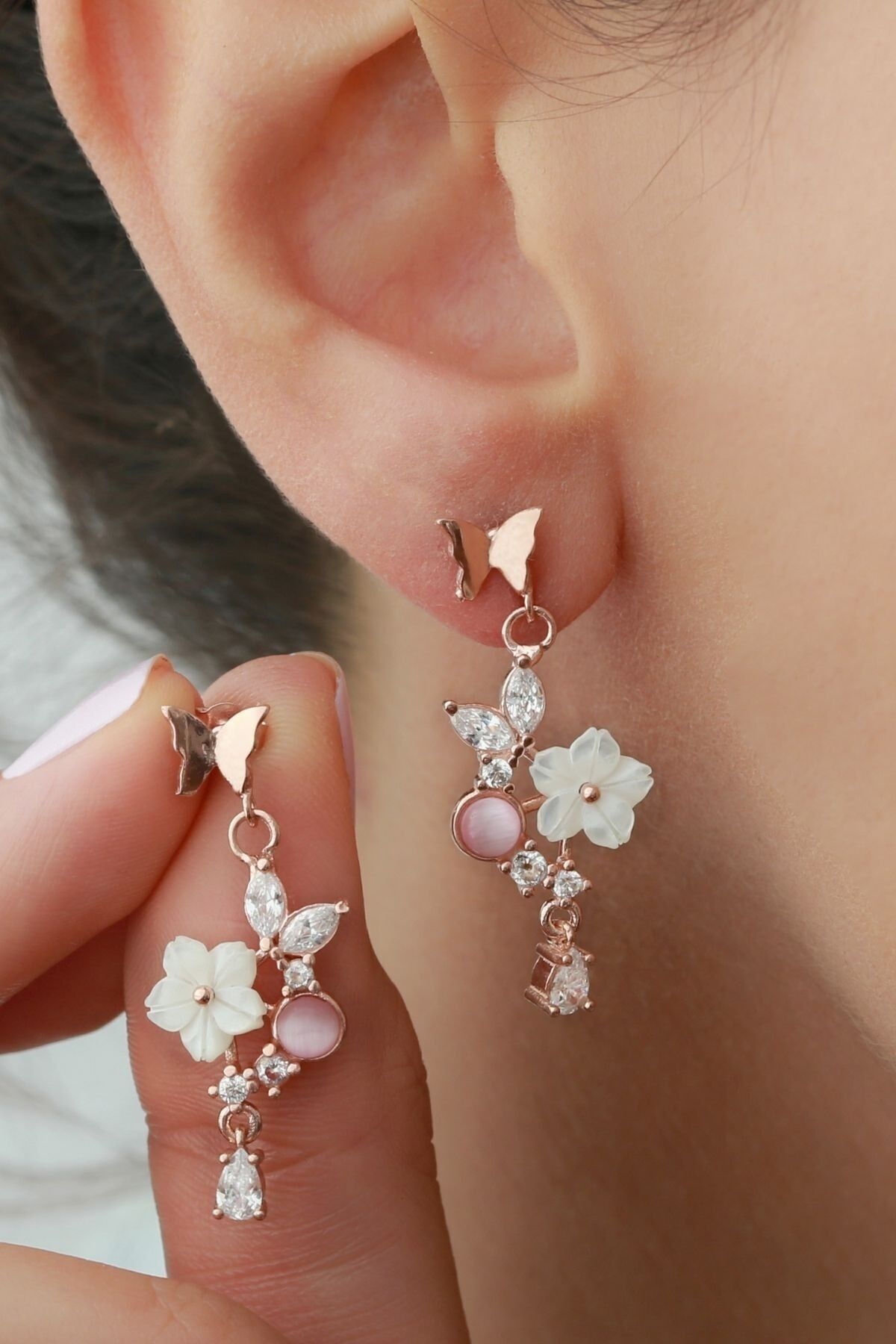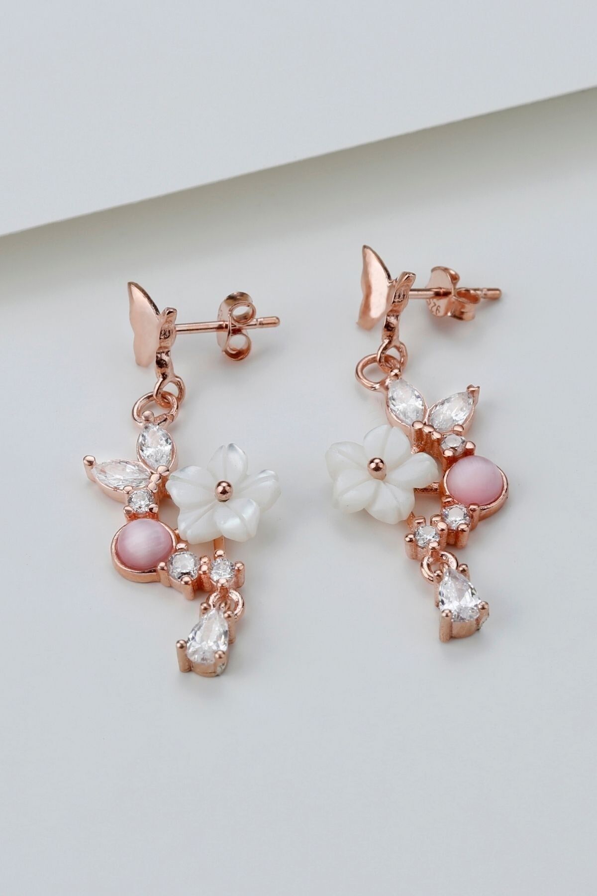 925 Ayar Gümüş Sedefli Güllü Küpe