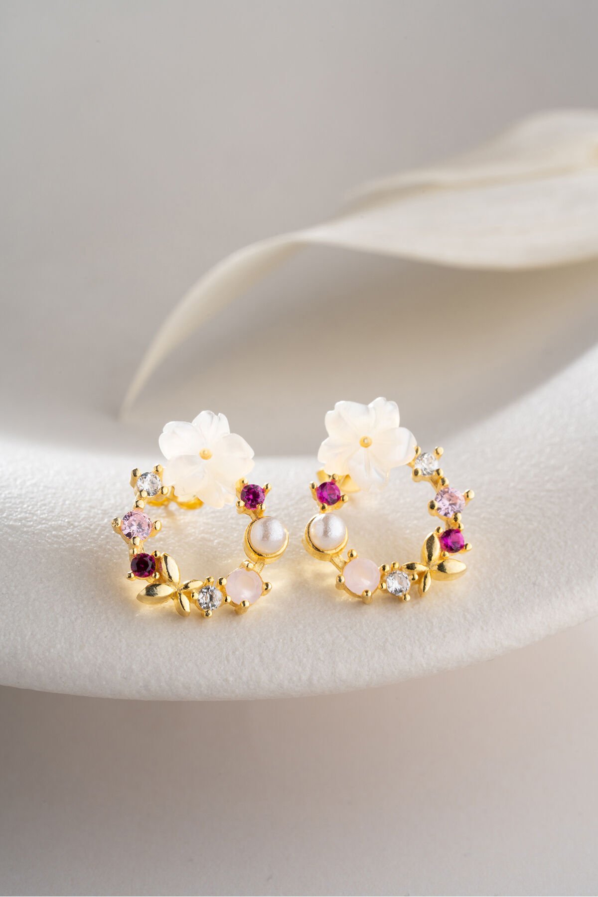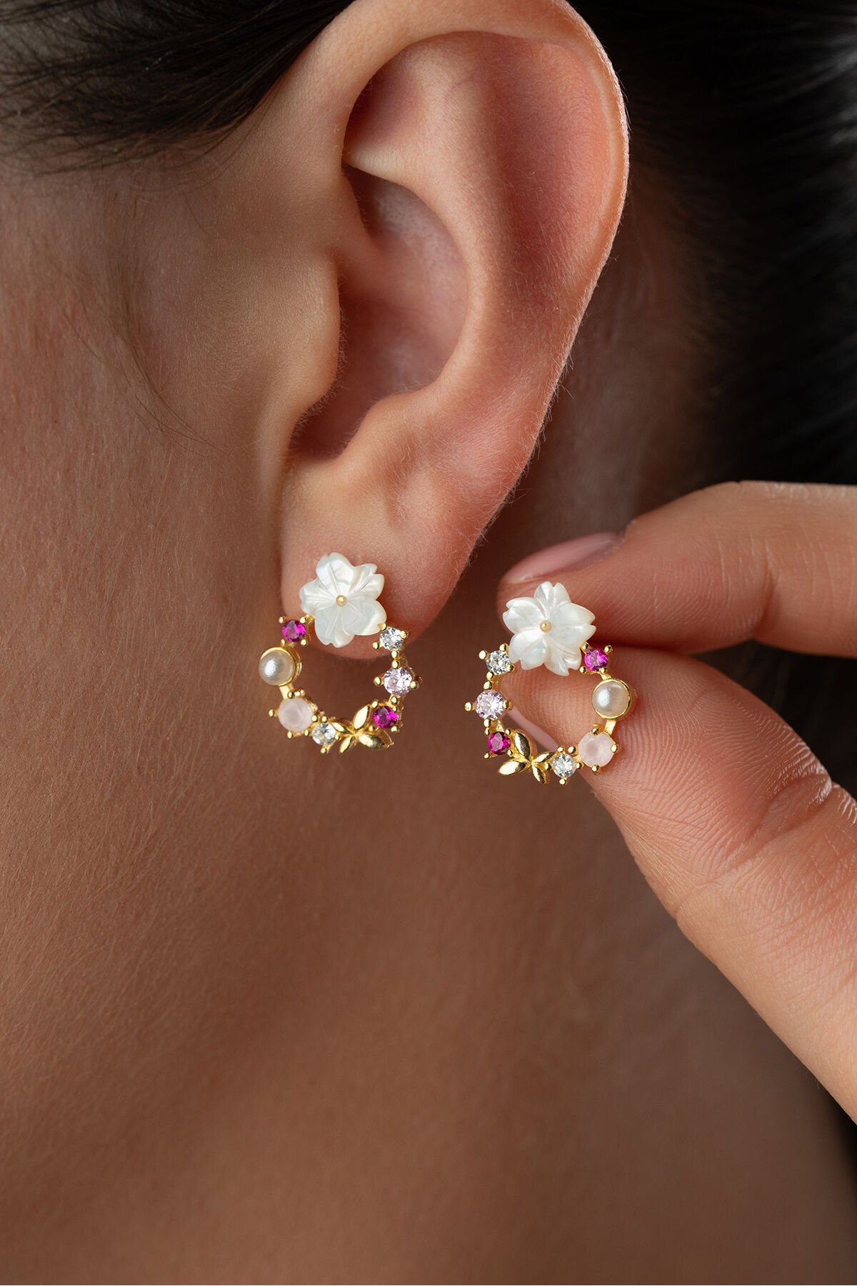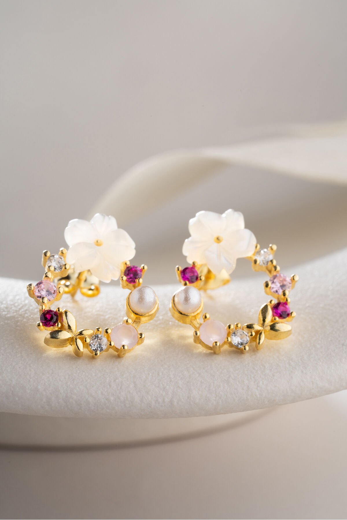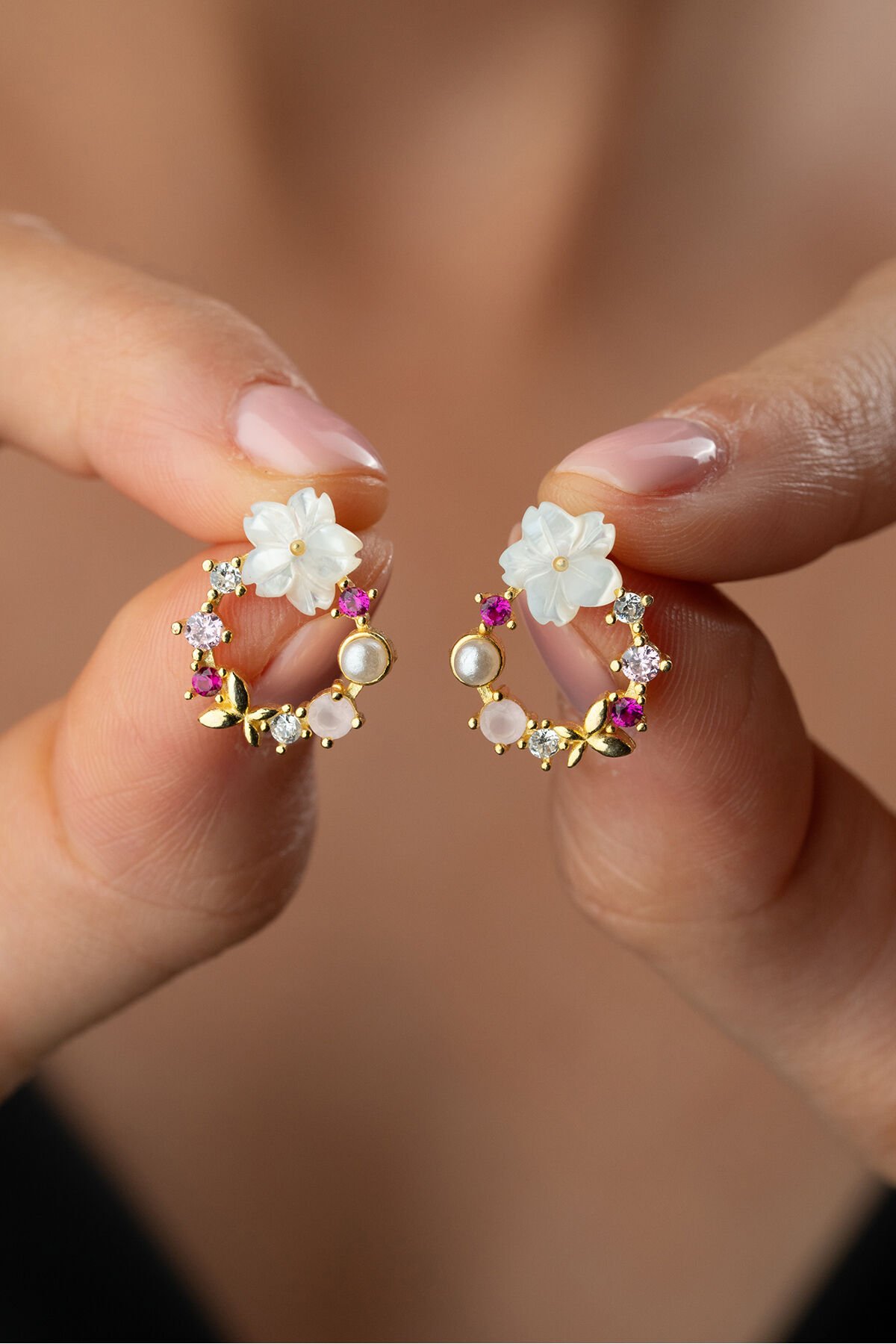 925 Ayar Gümüş Sedefli Model Çiçek Küpe