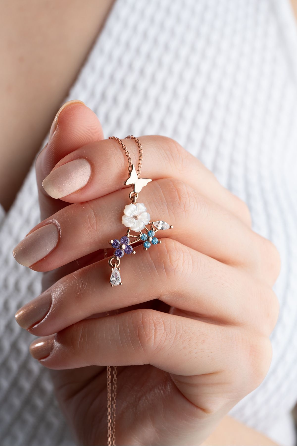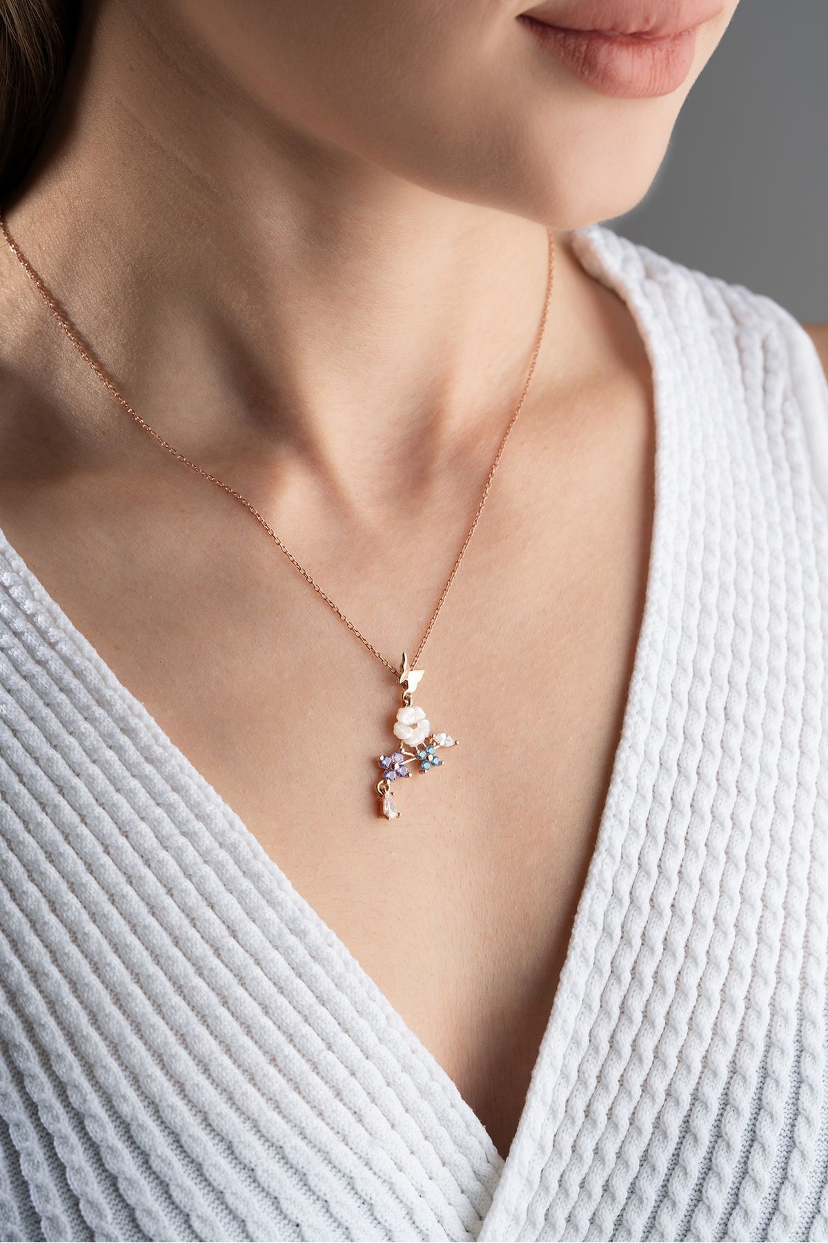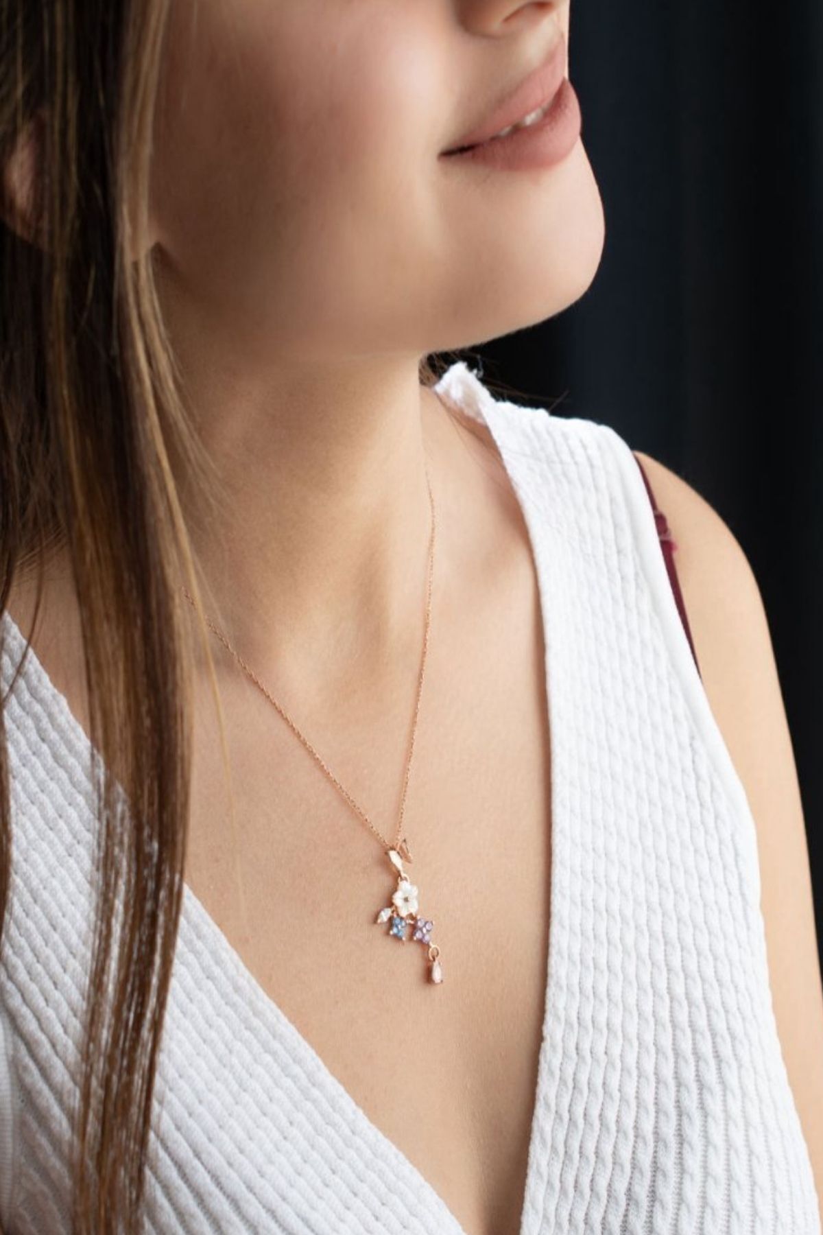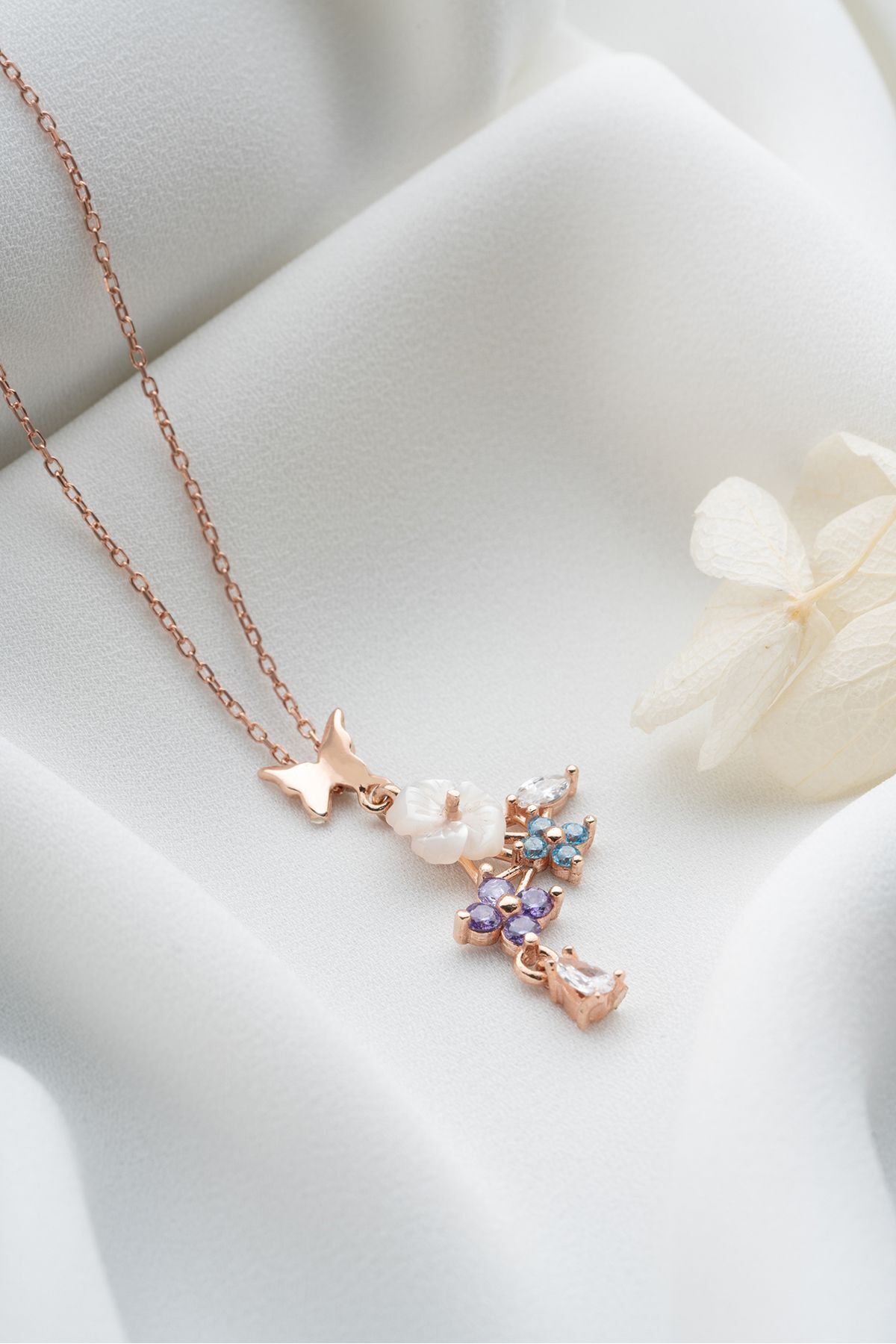 925 Ayar Gümüş Sedefli Renkli Sarmaşık Kolye