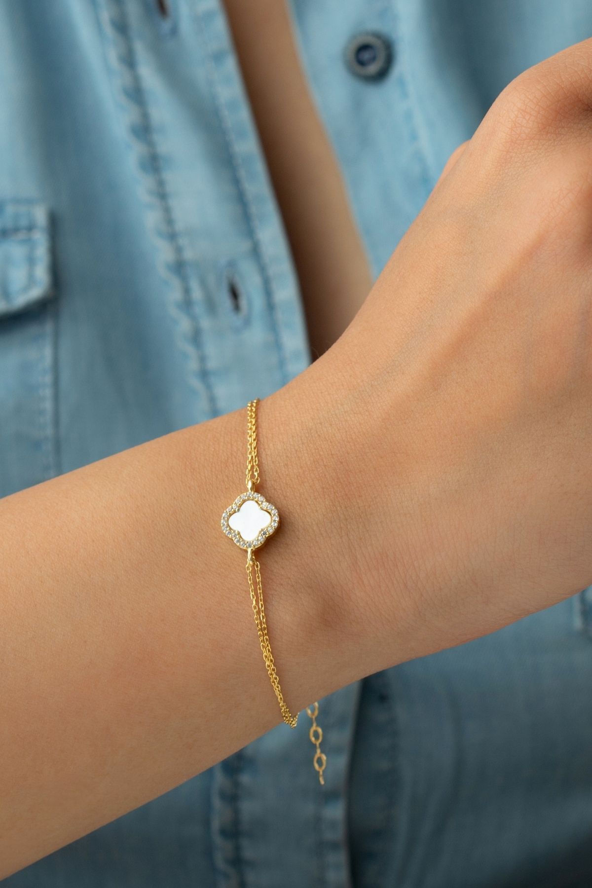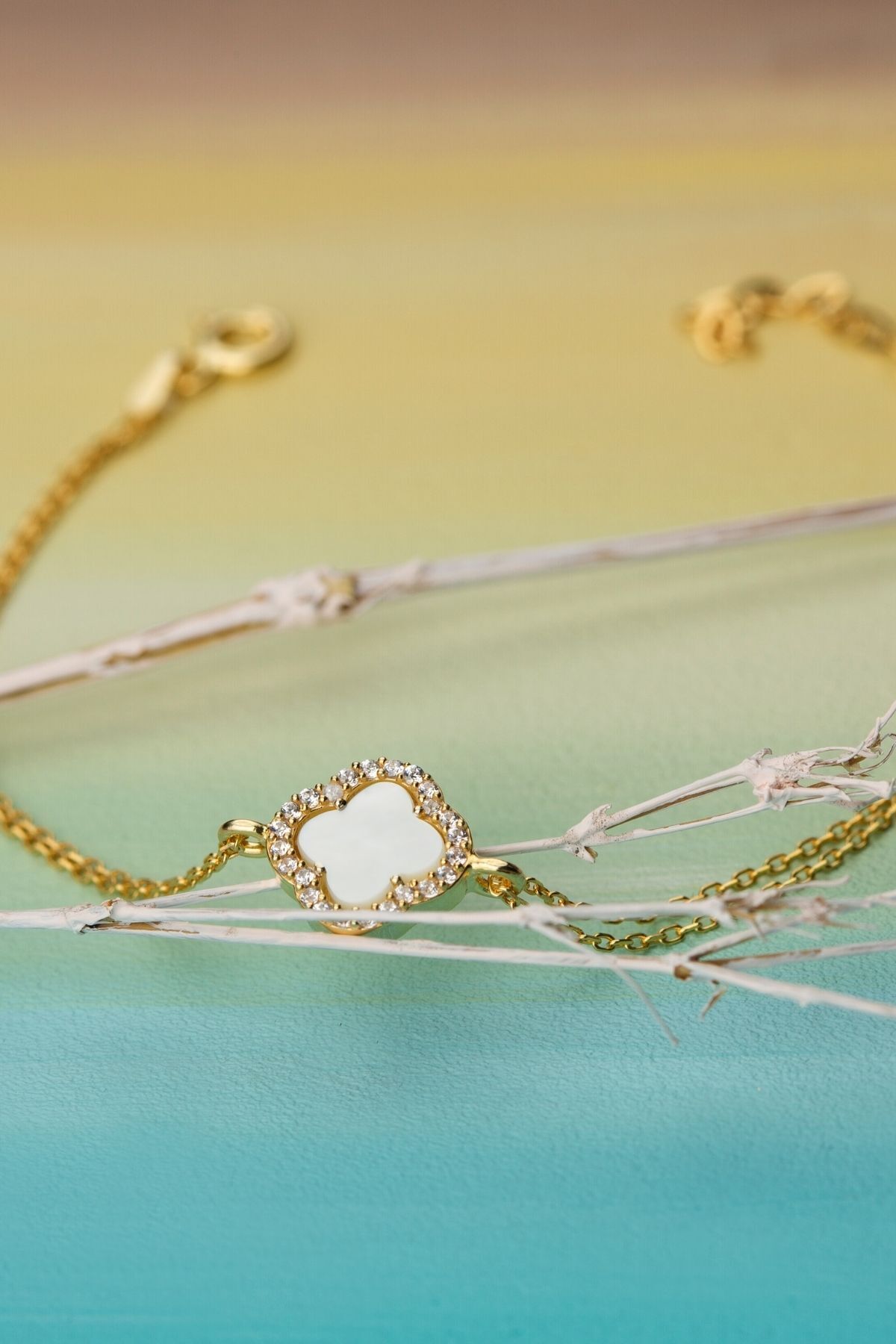 925 Ayar Gümüş Sedefli Yonca Bileklik
