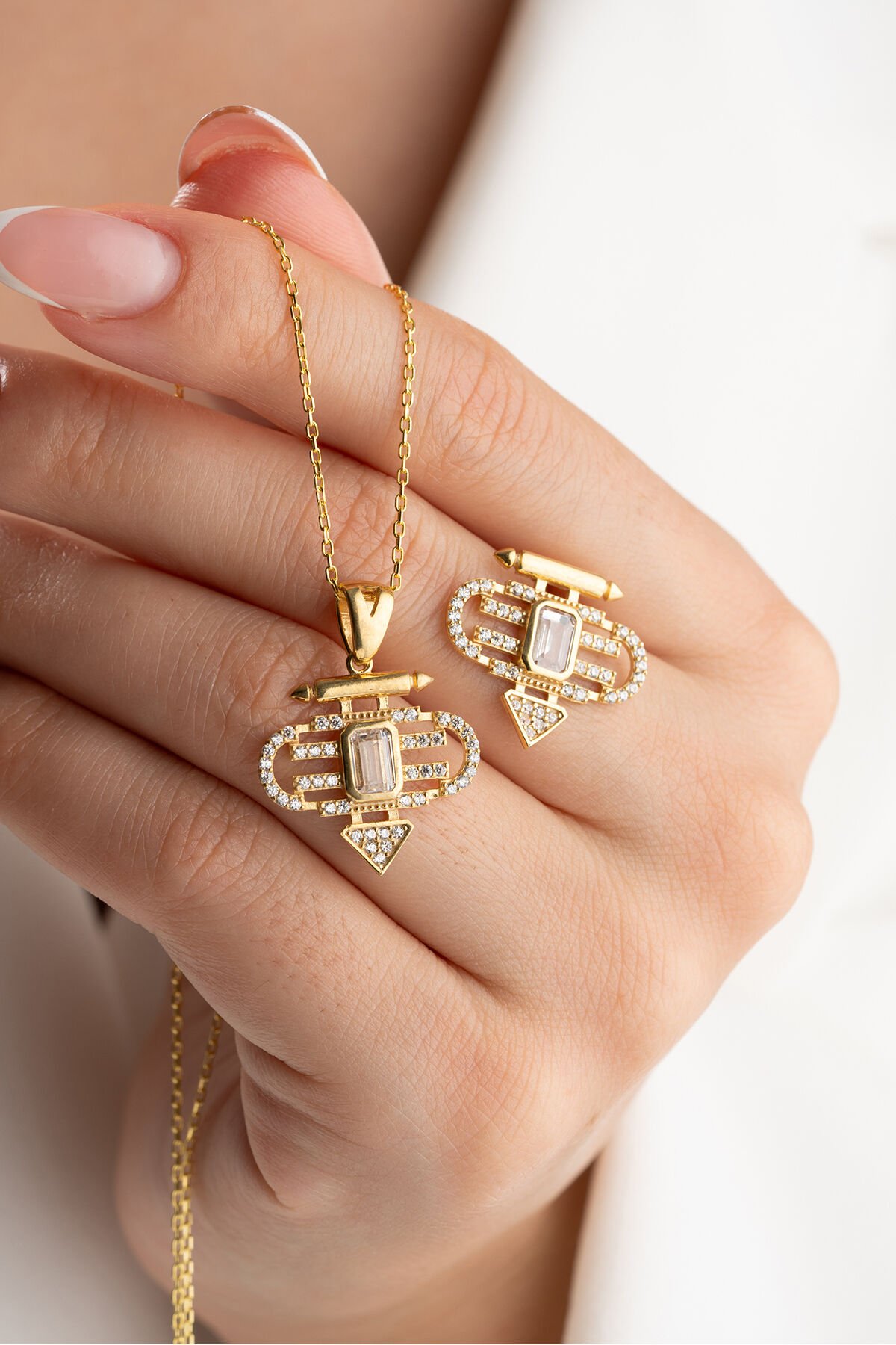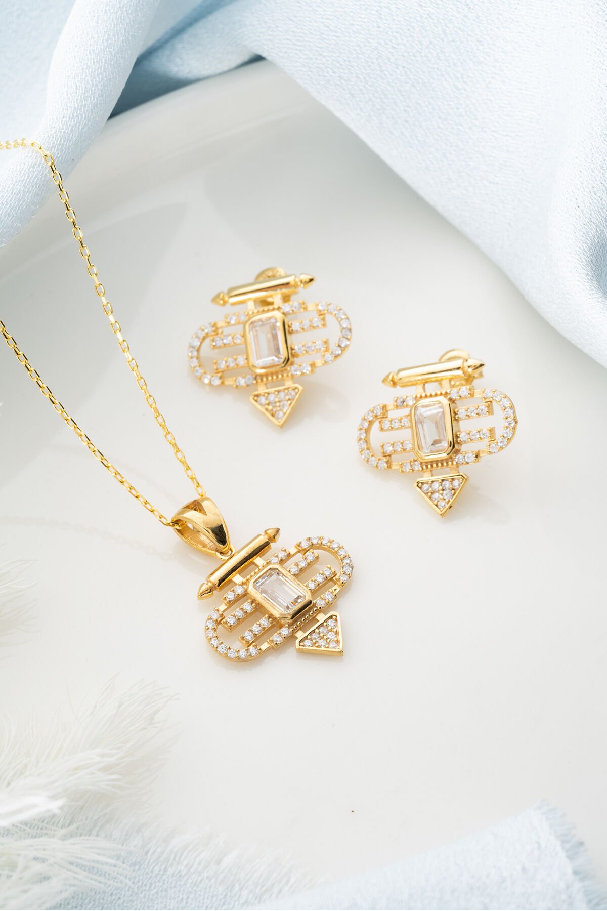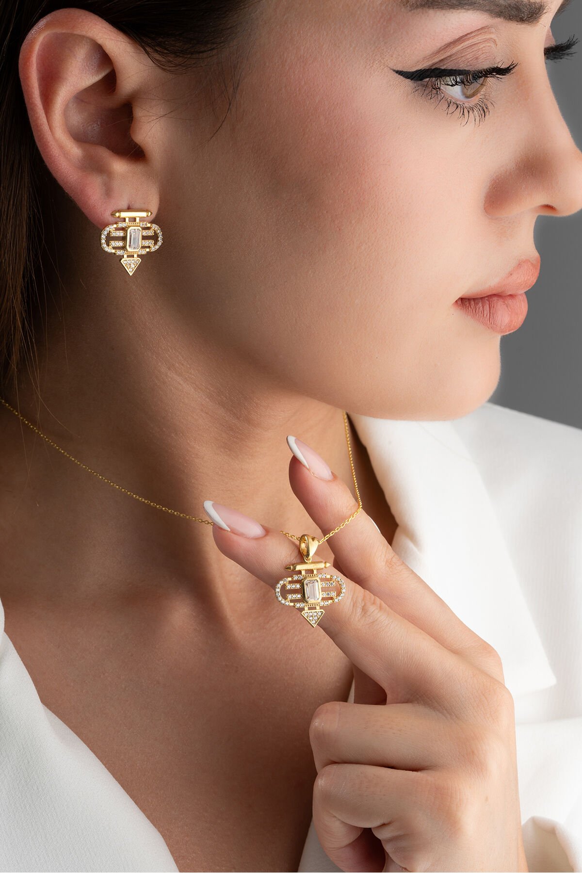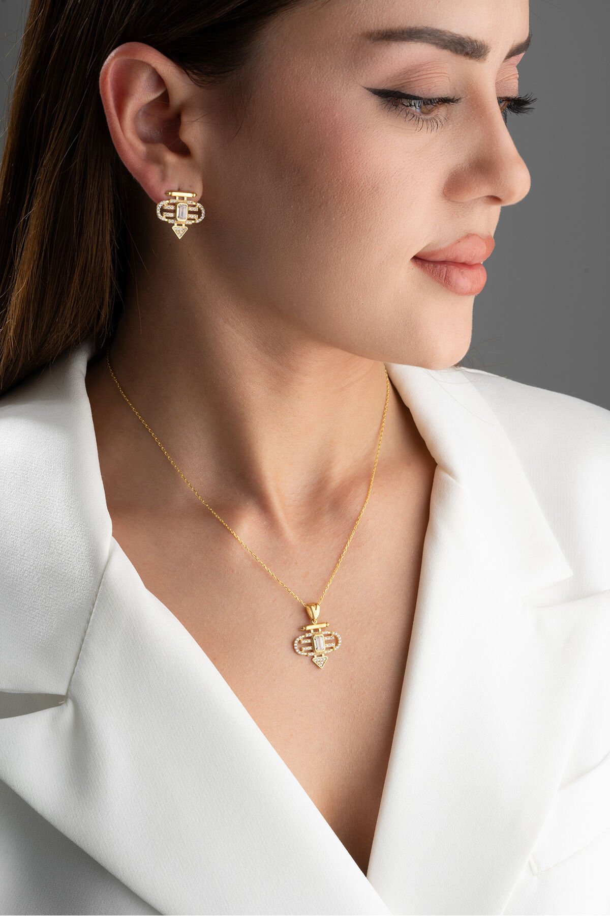 925 Ayar Gümüş Şeyma (Kolye-Küpe) Seti