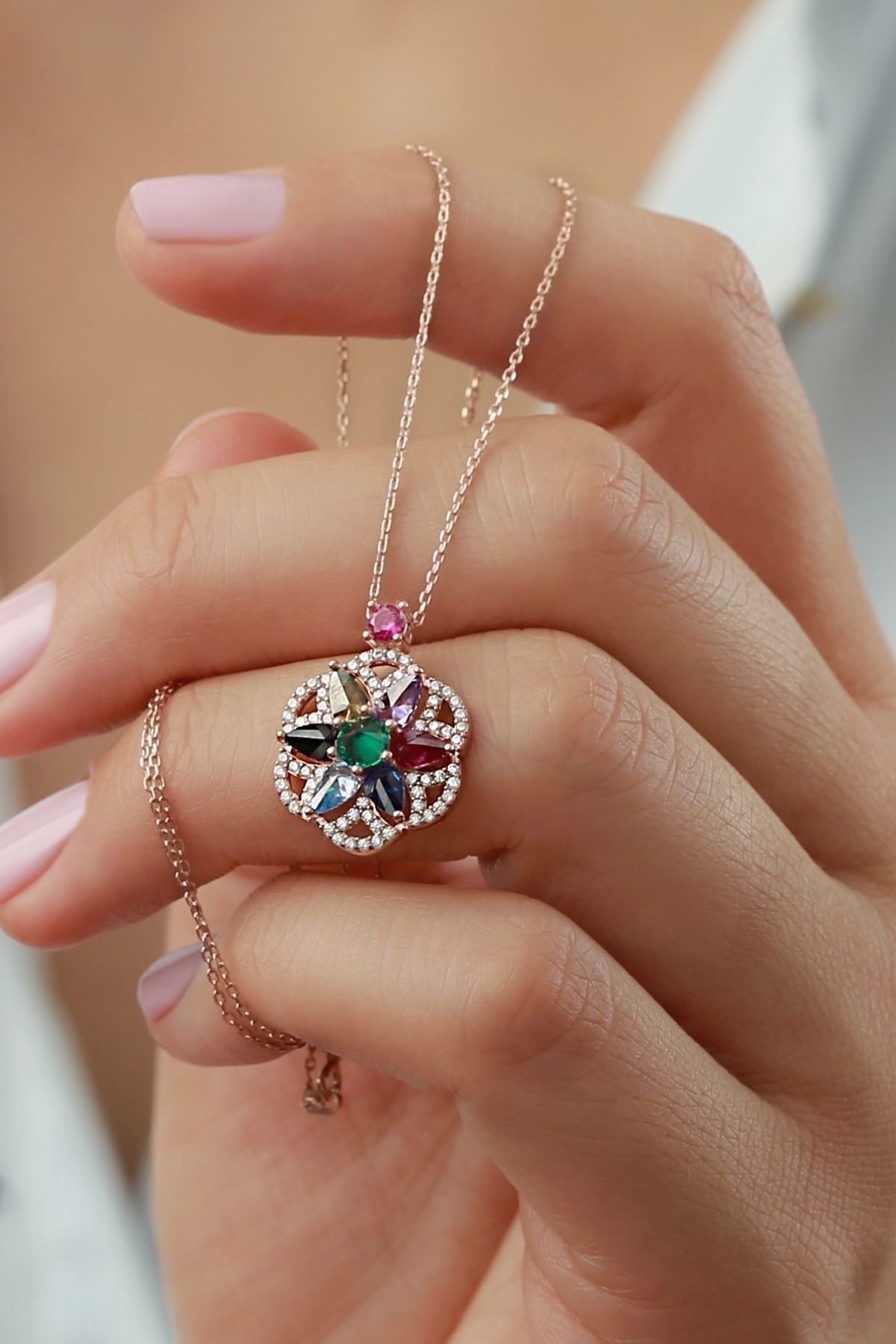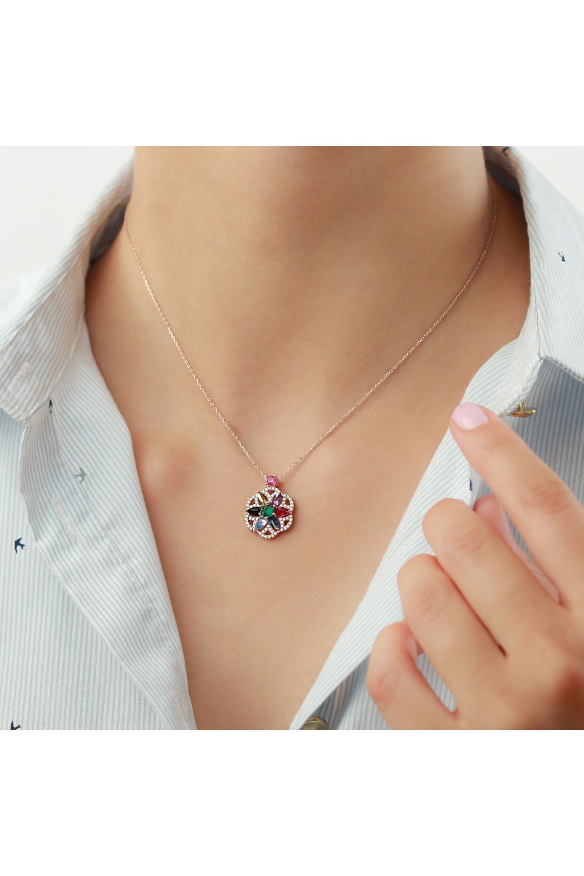 925 Ayar Gümüş Şeyma Rengarenk Kolye