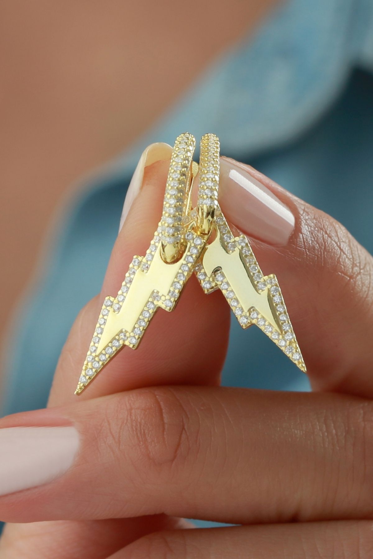 925 Ayar Gümüş Şimşek Sallantılı Küpe