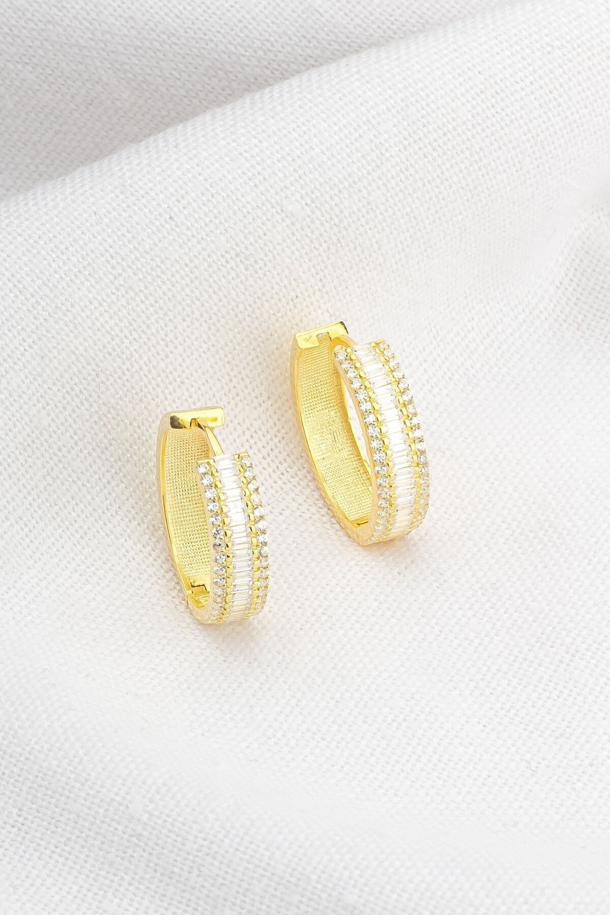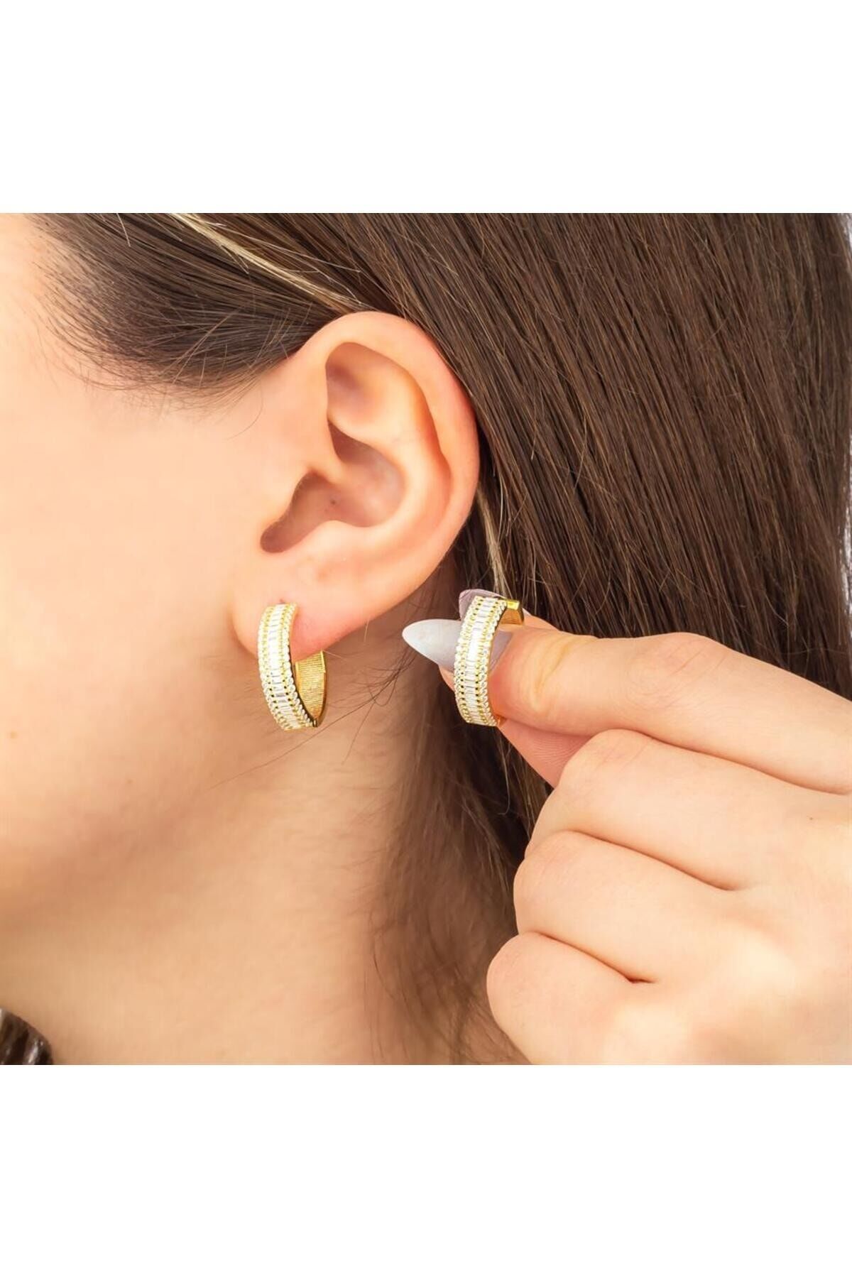 925 Ayar Gümüş Sıra Taşlı Halka Küpe