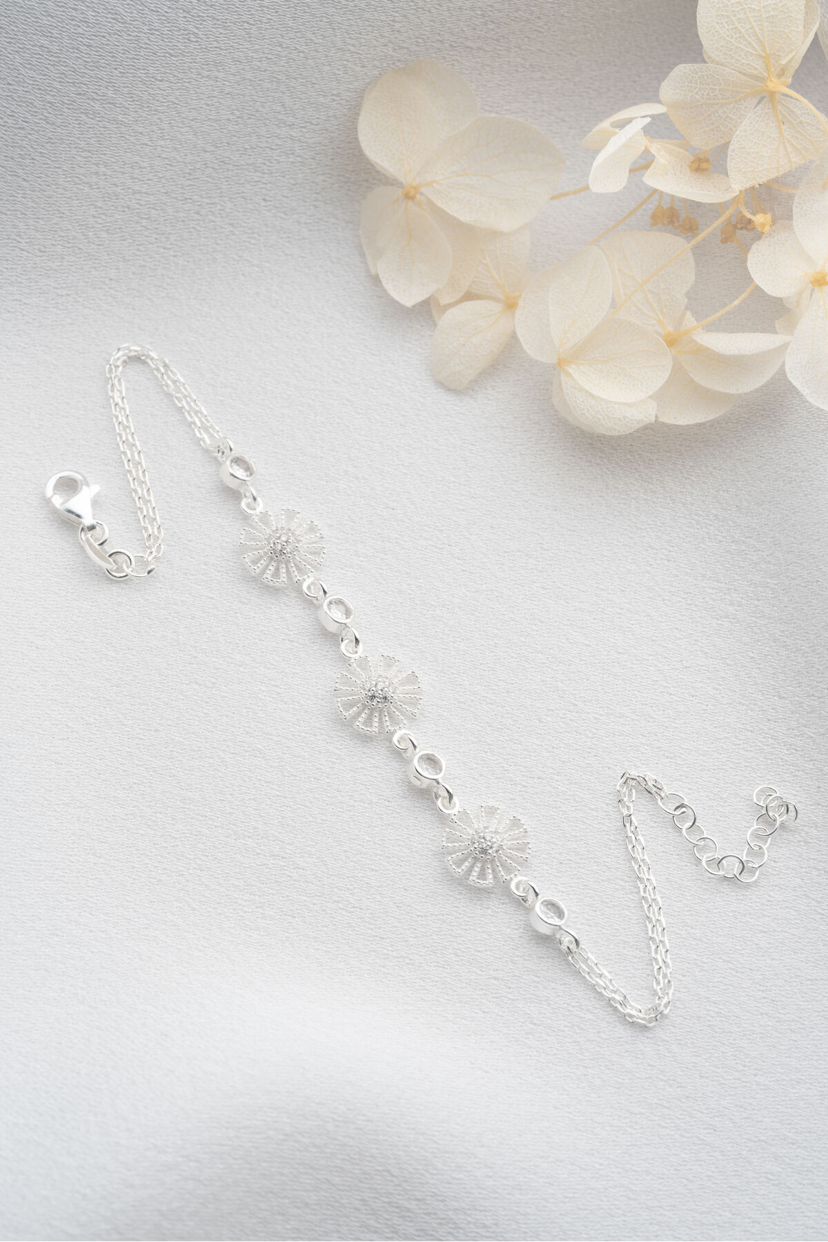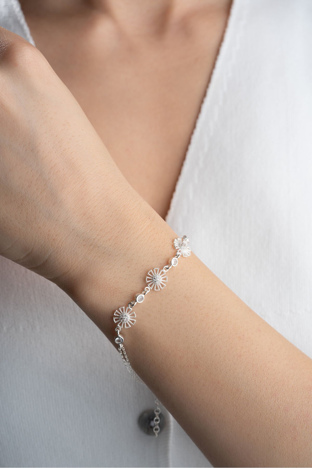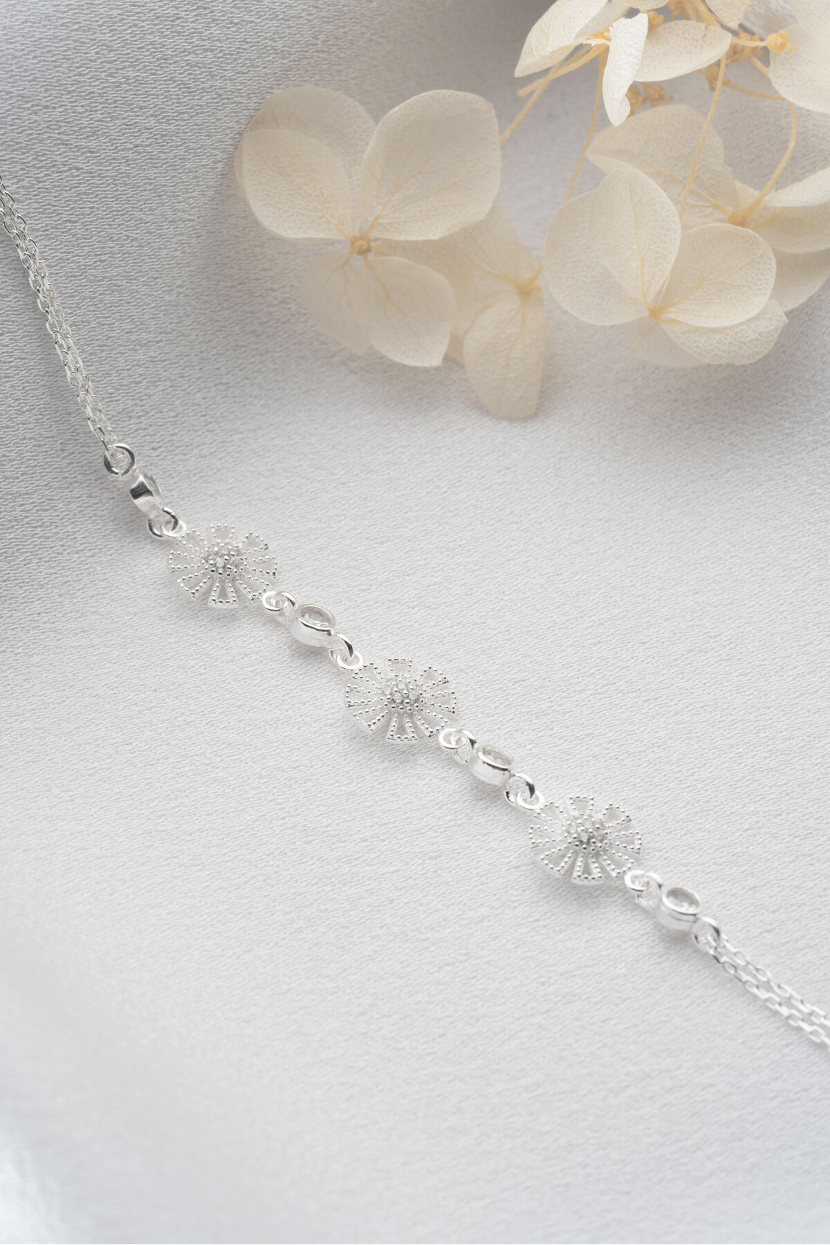 925 Ayar Gümüş Sıralı Çiçek Bileklik