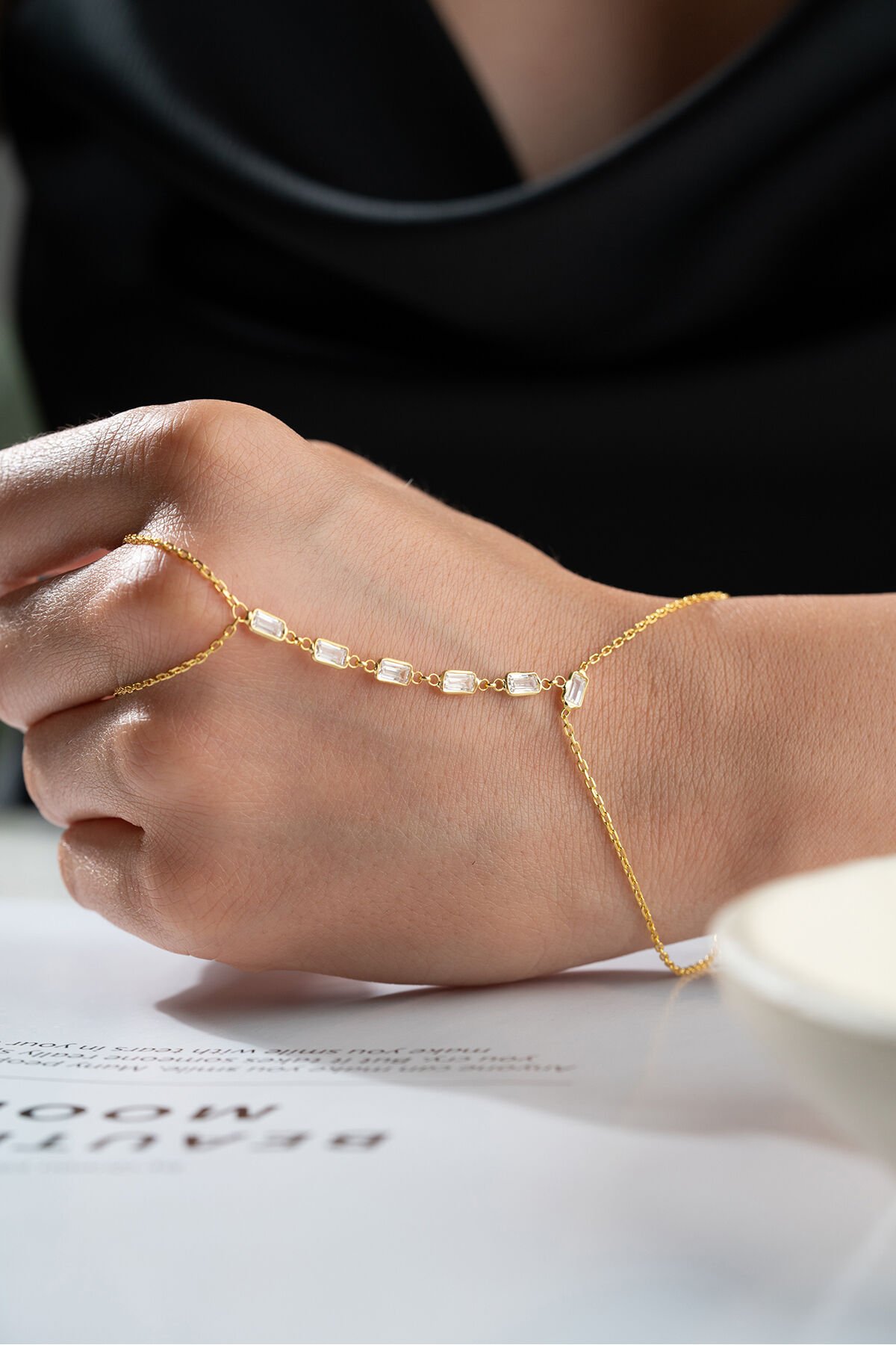 925 Ayar Gümüş Sıralı Dikdörtgen Baget Taşlı Şahmeran