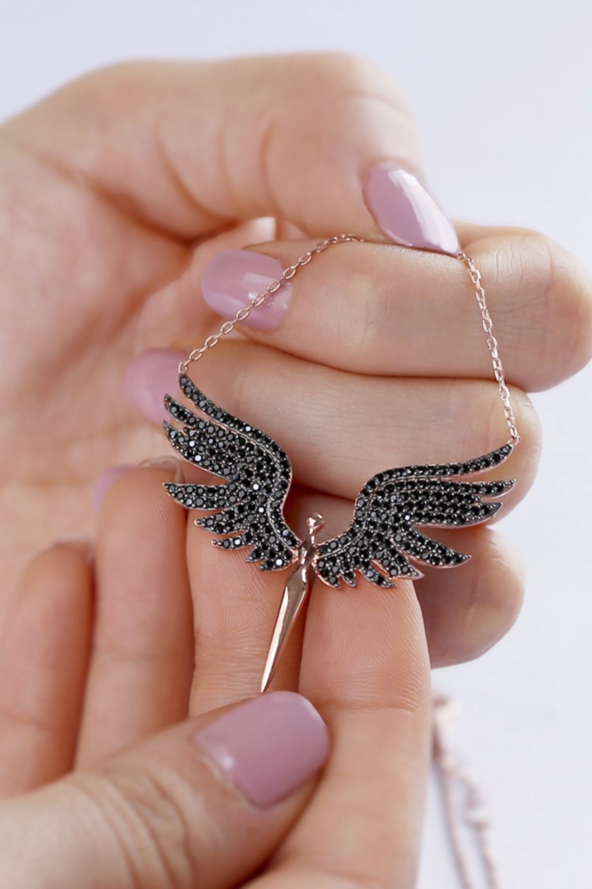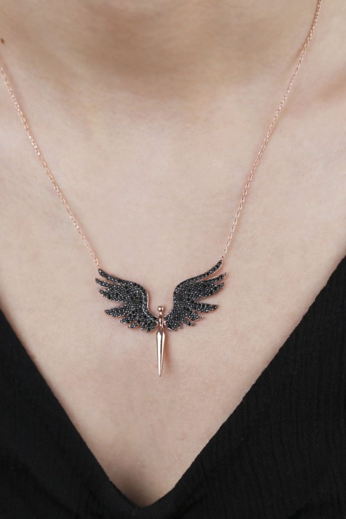 925 Ayar Gümüş Siyah Kanat Melek Kolye