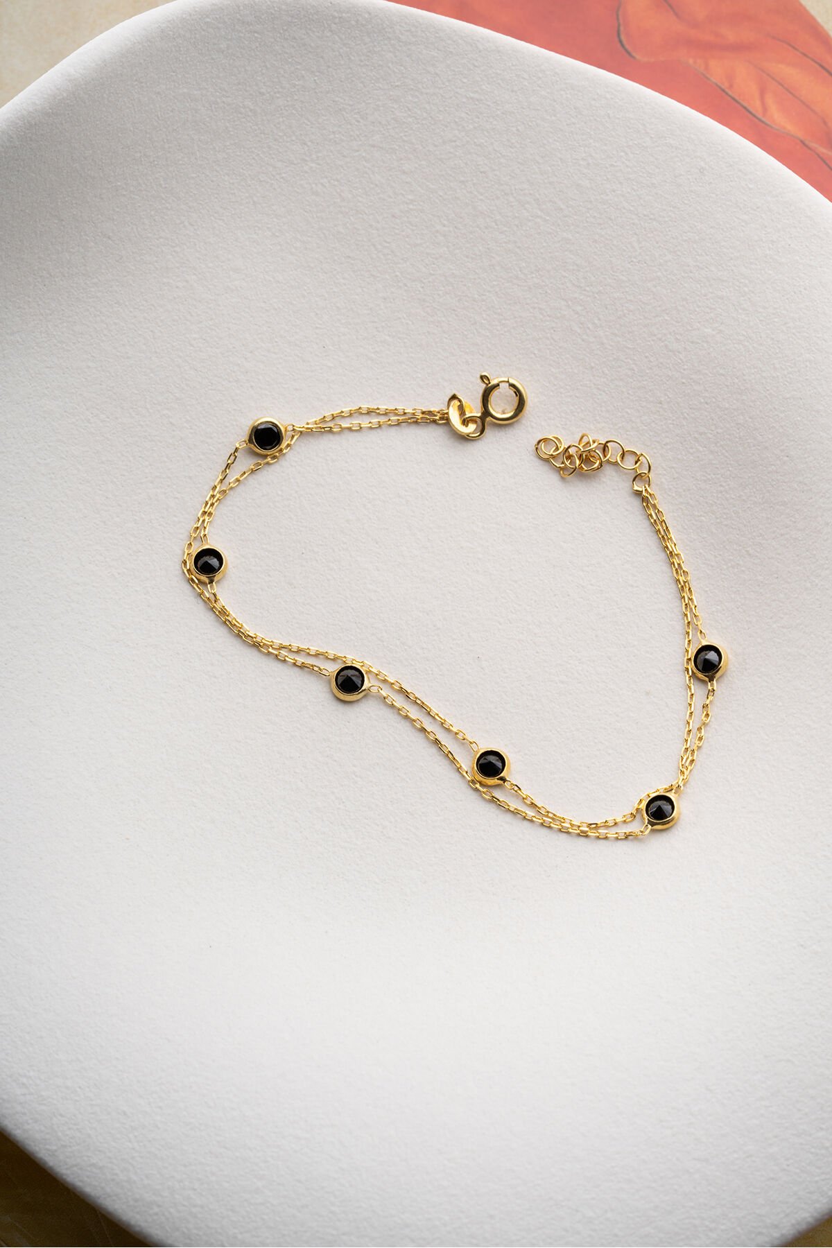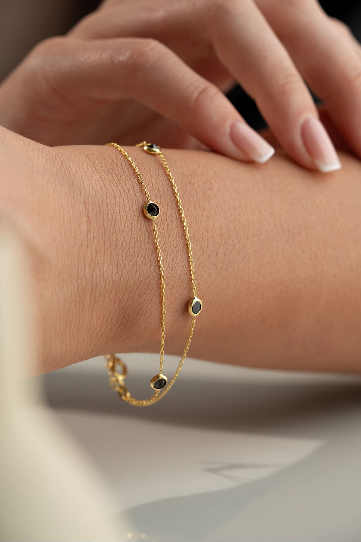 925 Ayar Gümüş Siyah Taşlı Bileklik