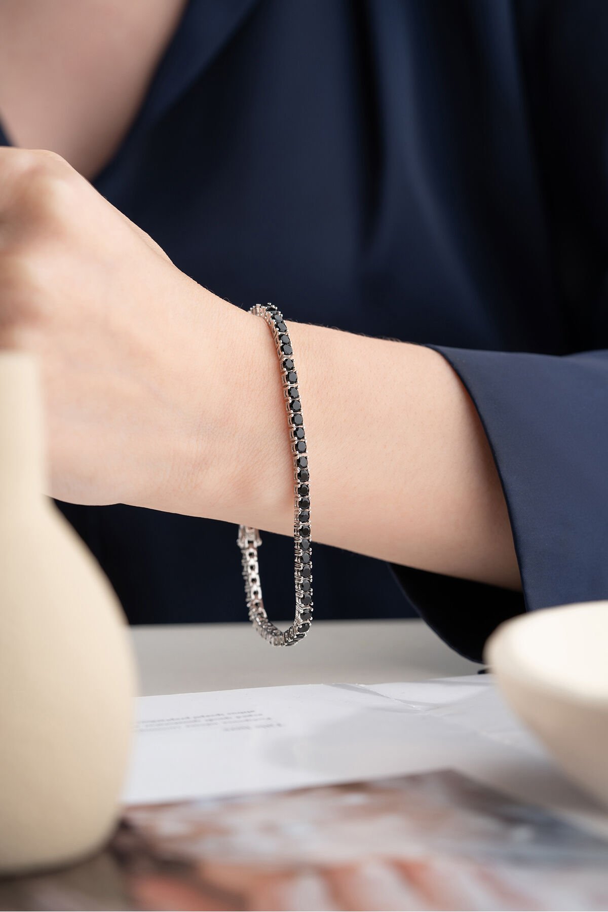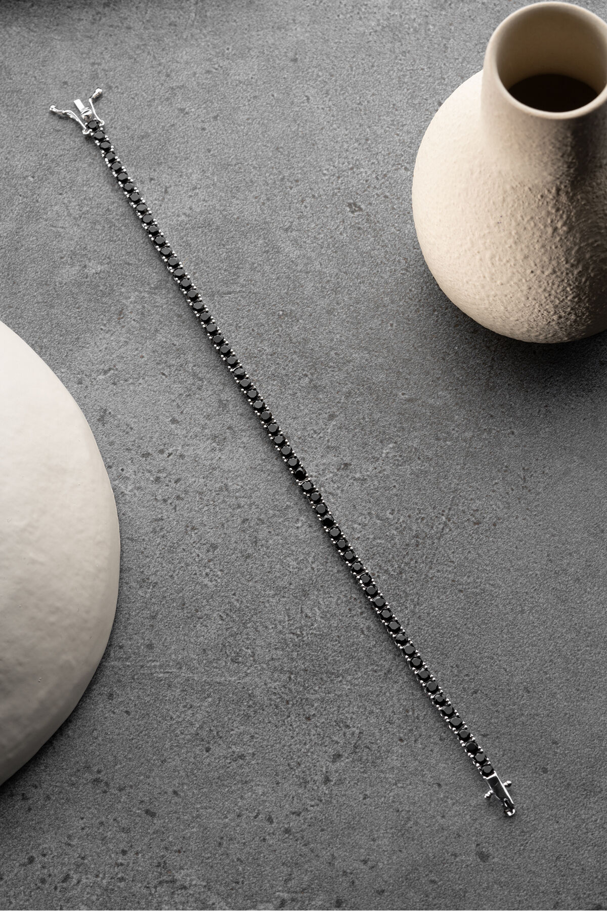 925 Ayar Gümüş Siyah Taşlı Su Yolu Bileklik