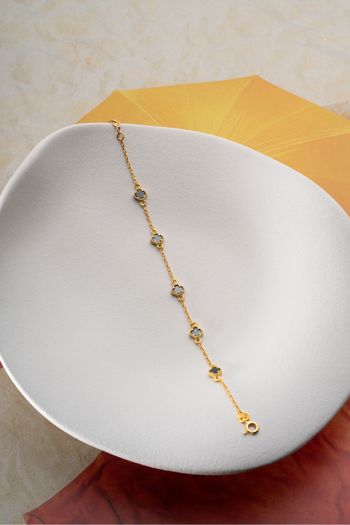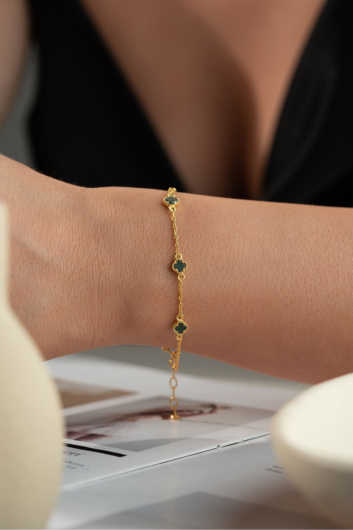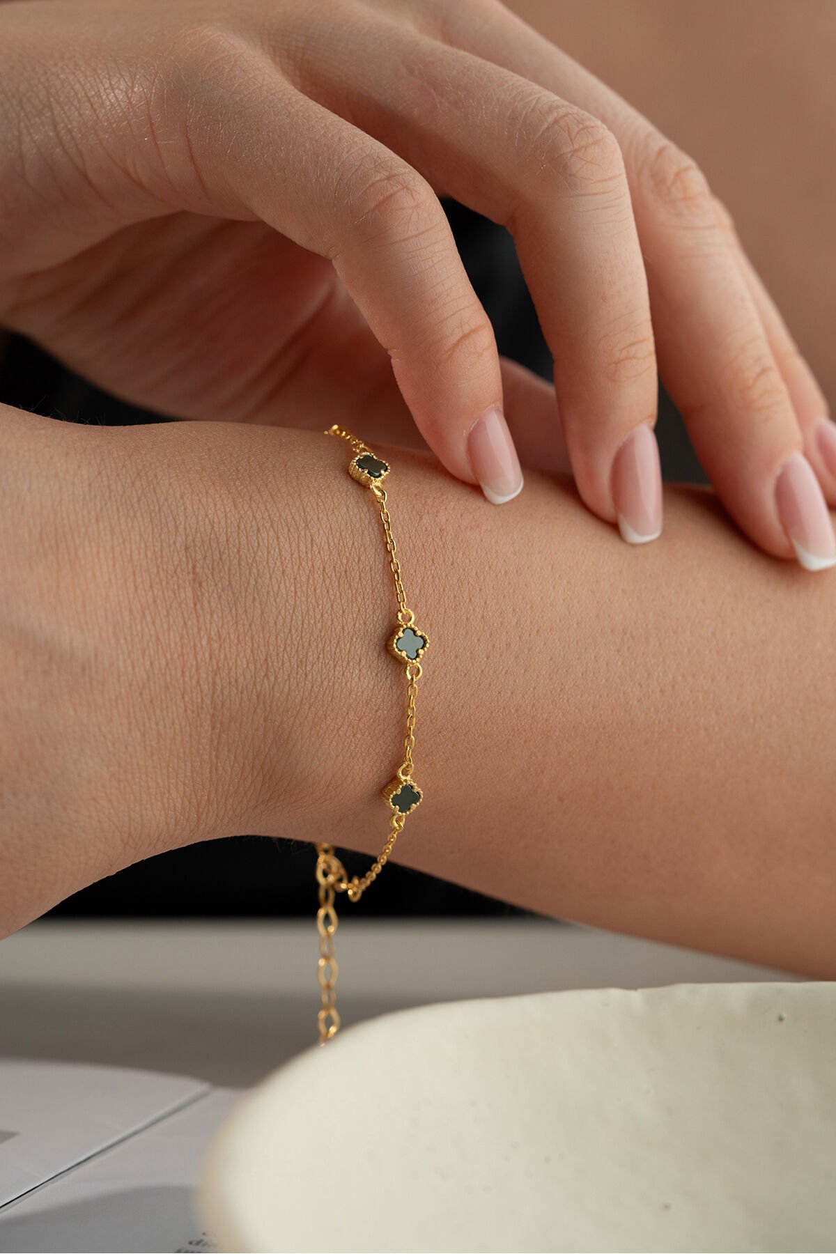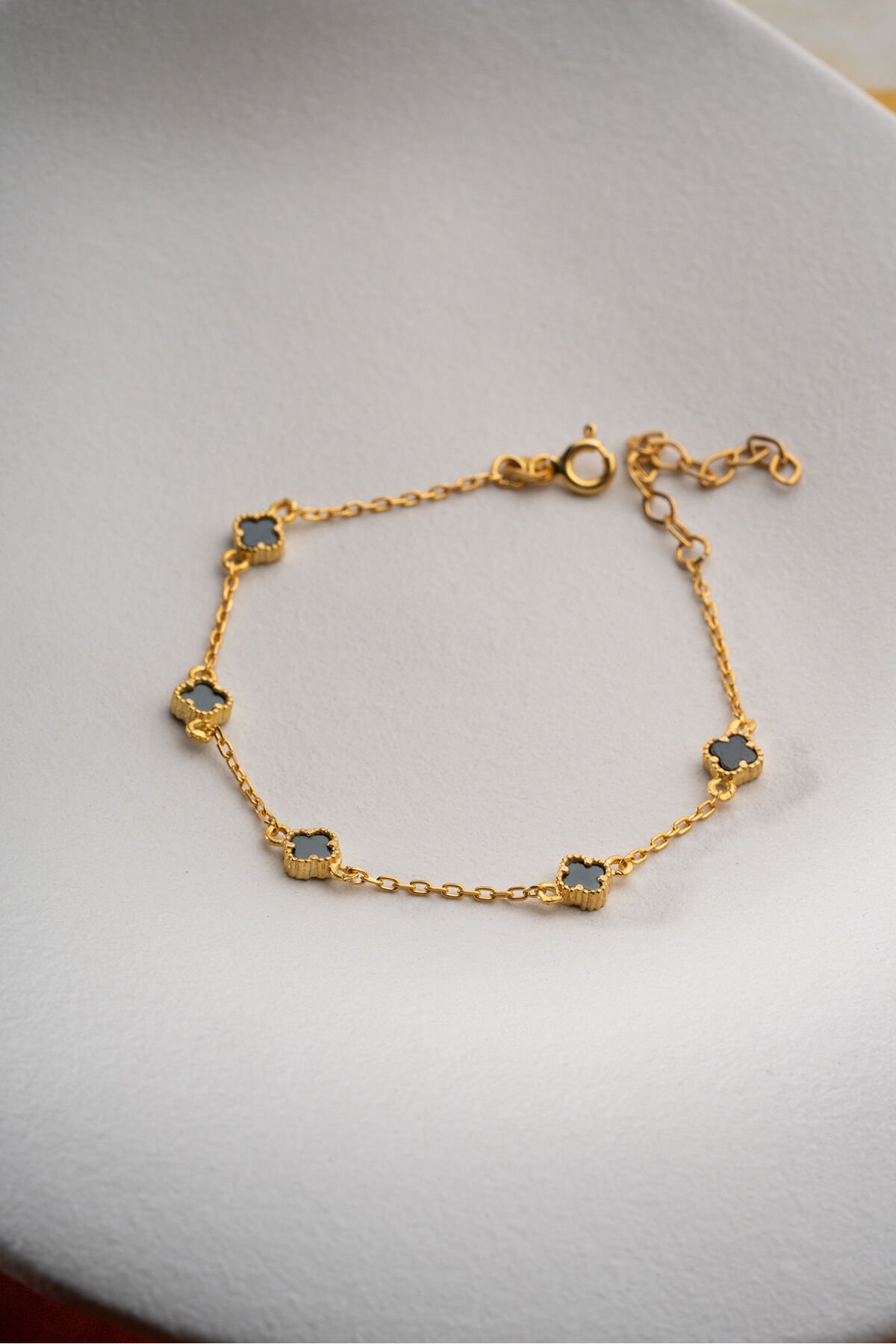 925 Ayar Gümüş Siyah Taşlı Yonca Bileklik