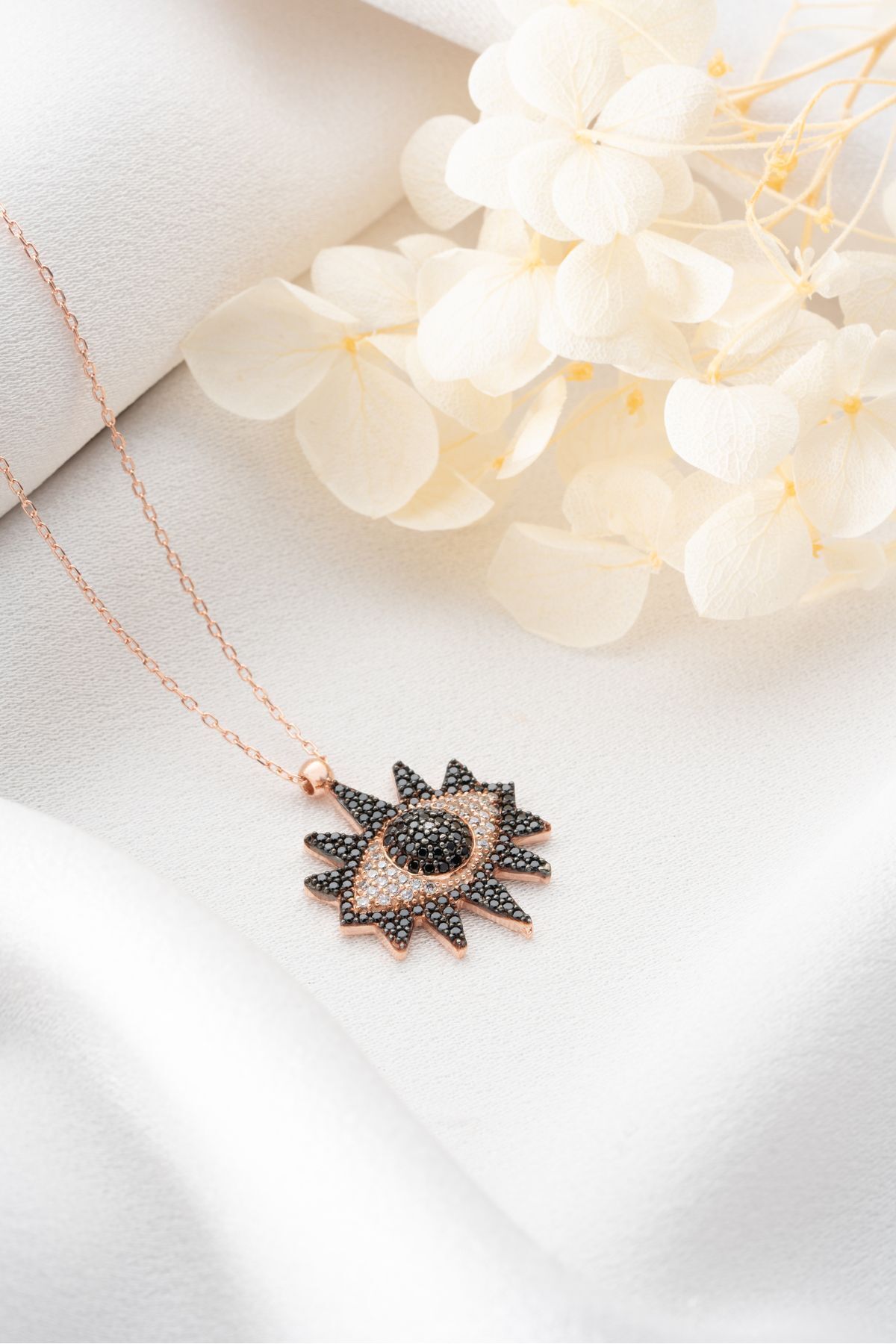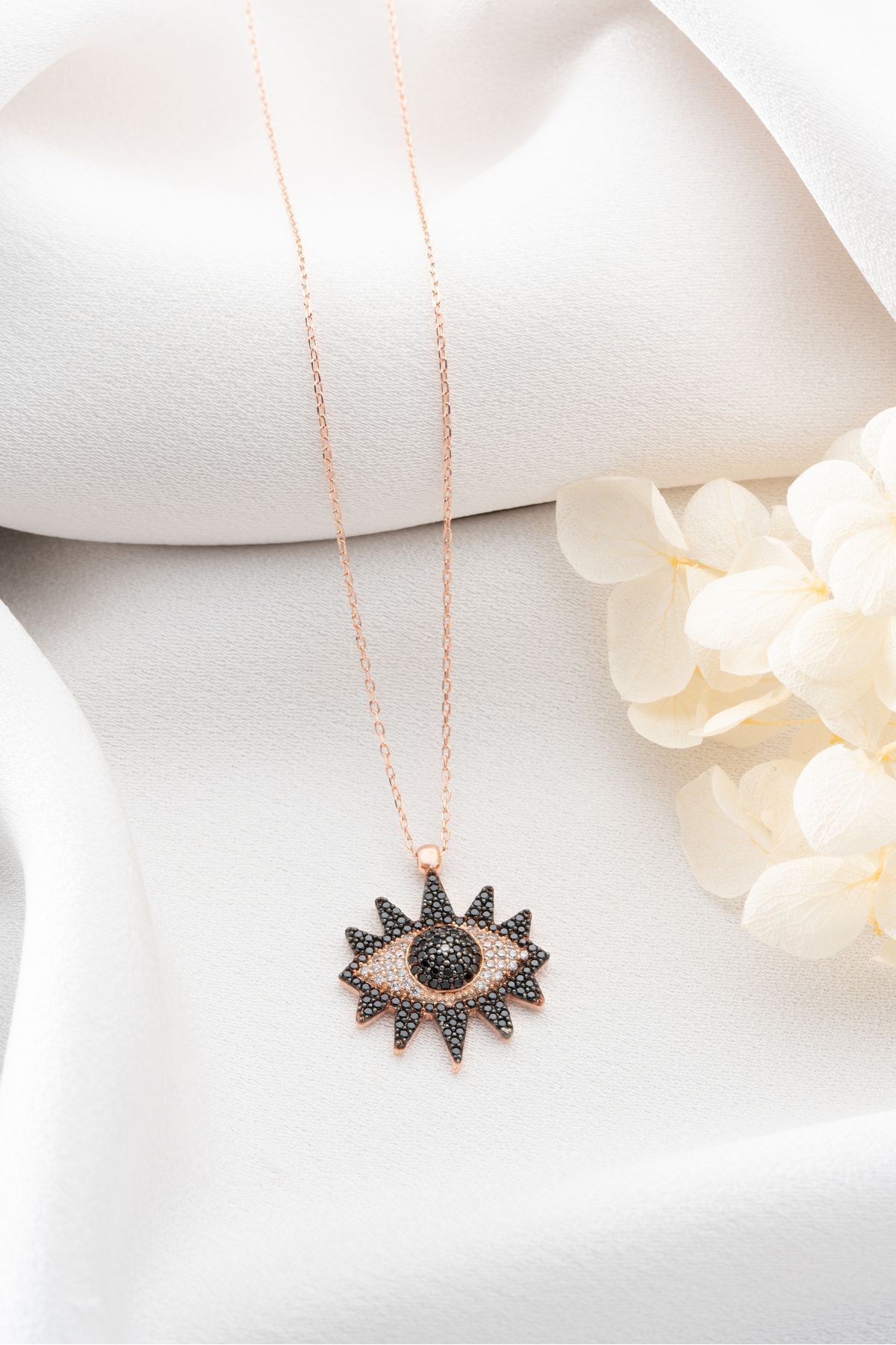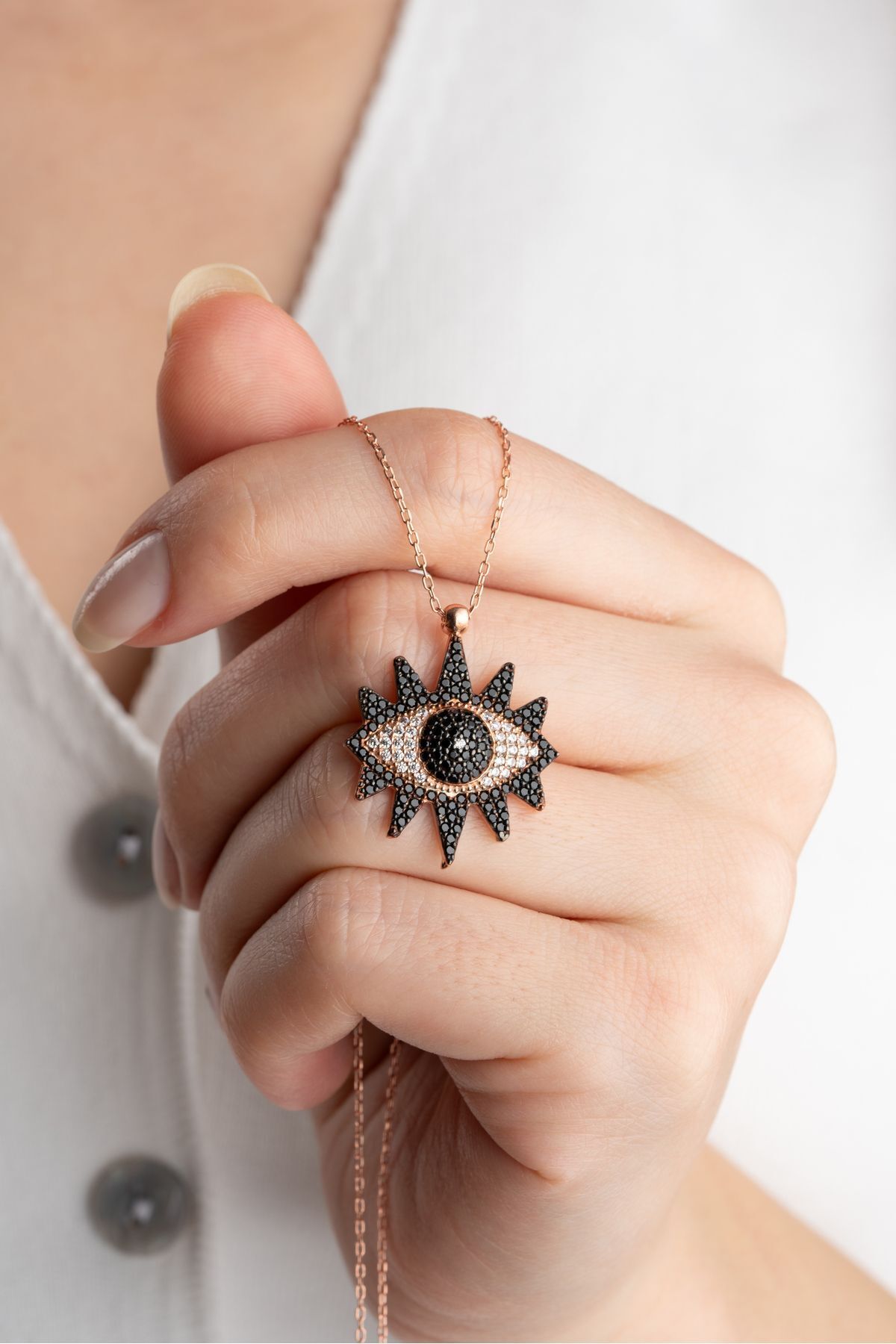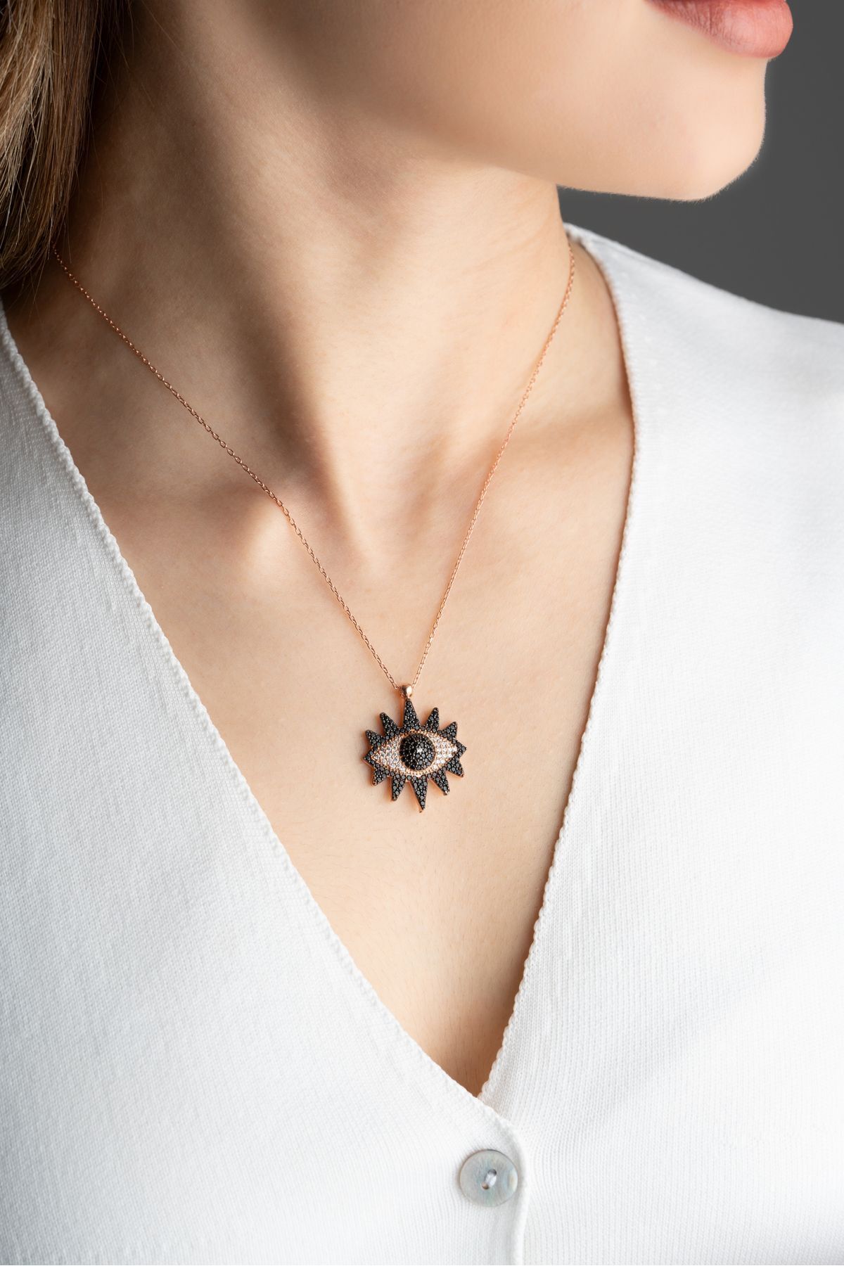 925 Ayar Gümüş Siyah Zirkon Taşlı Göz Kolye
