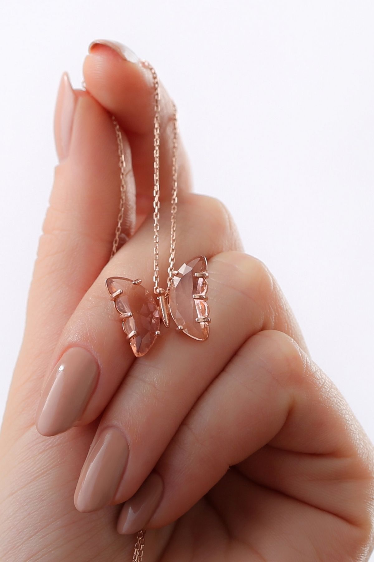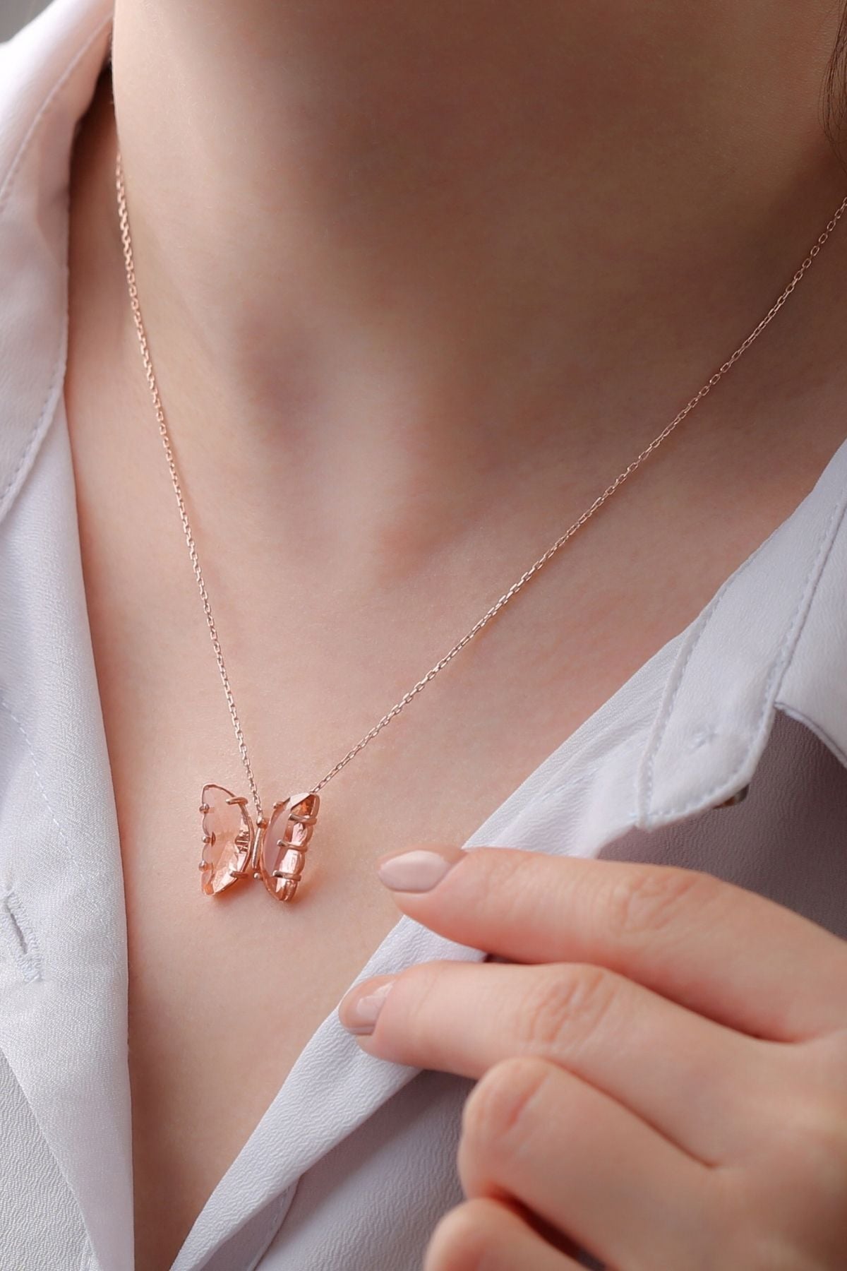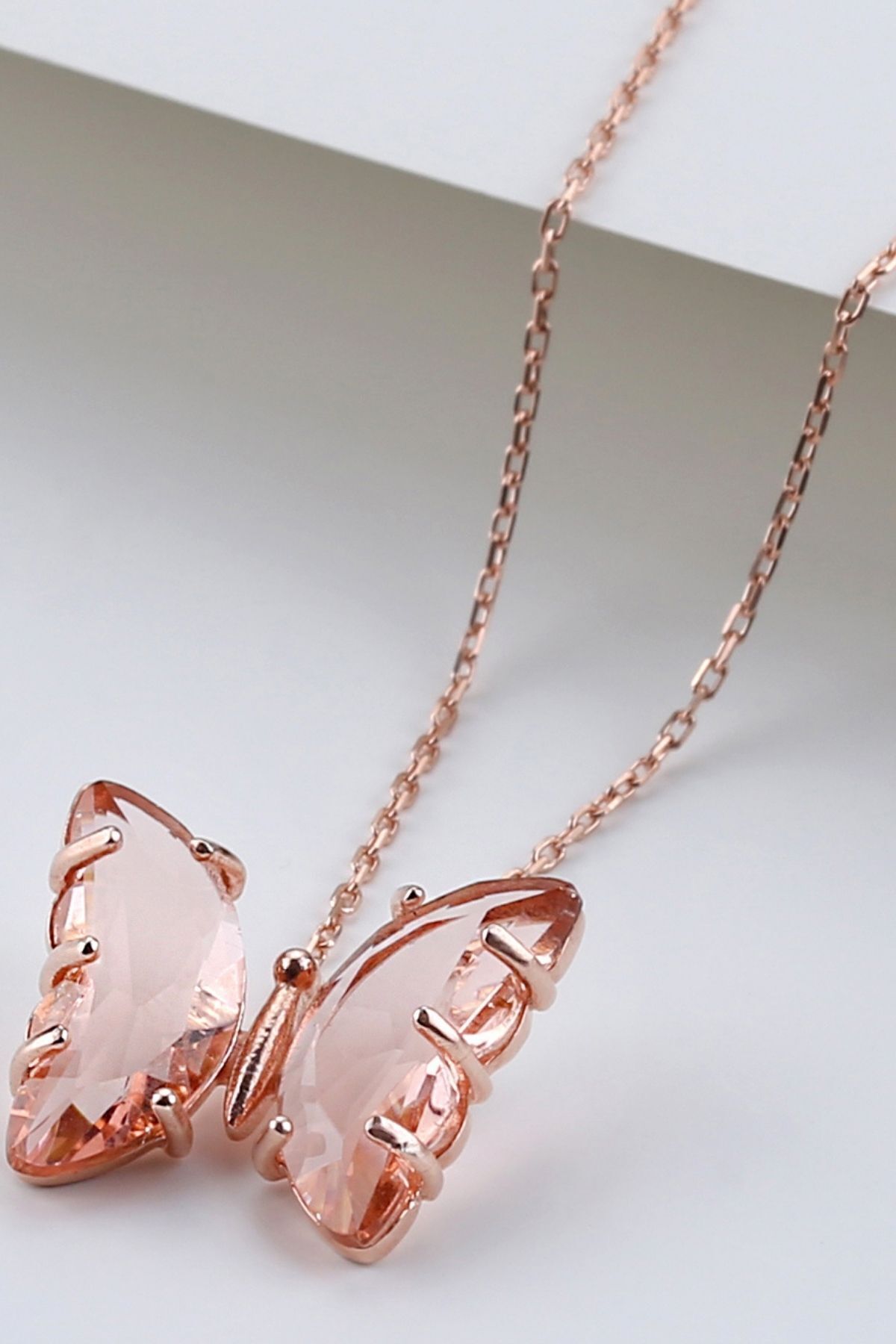 925 Ayar Gümüş Somon Cam Kelebek Kolye