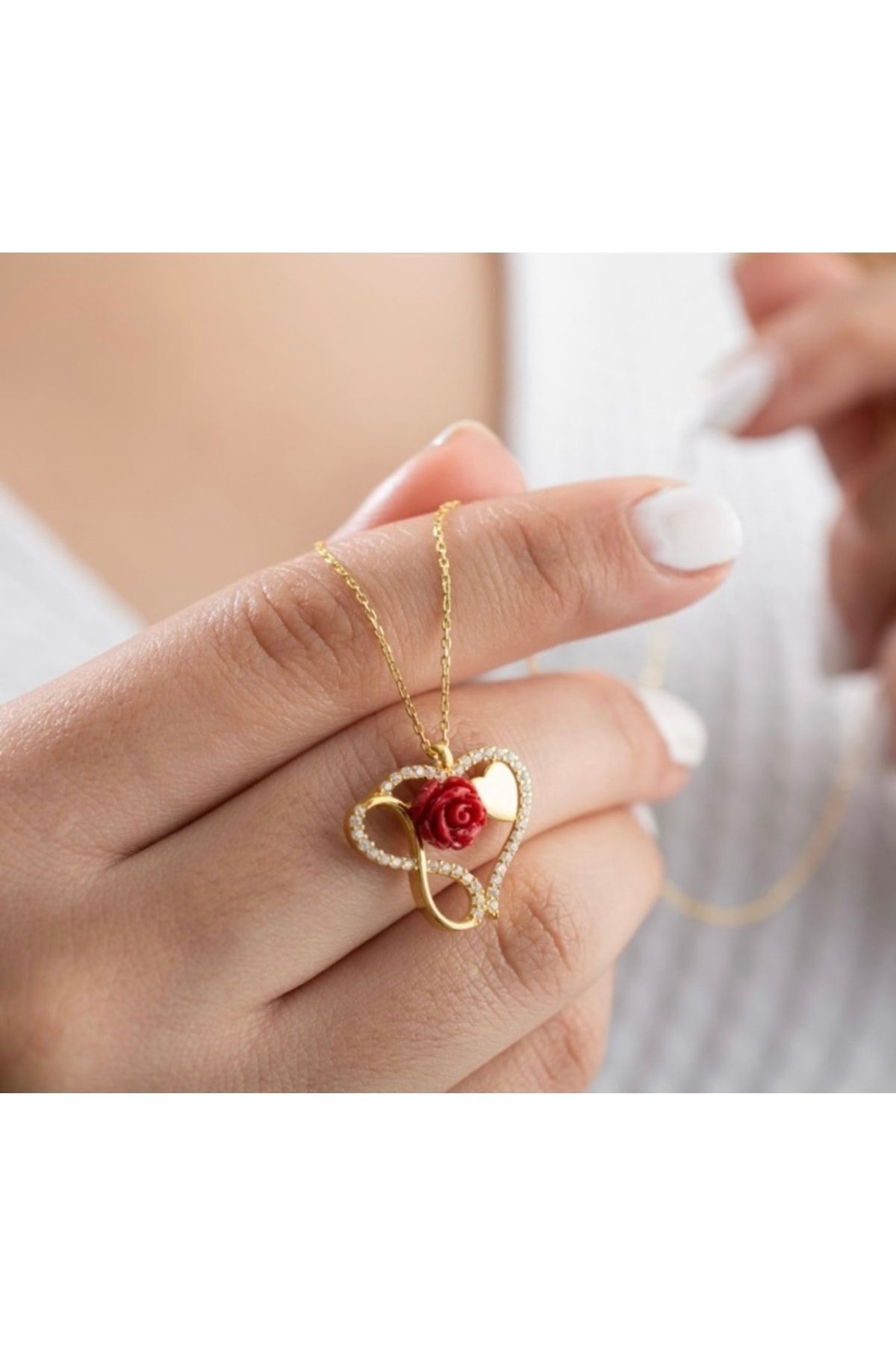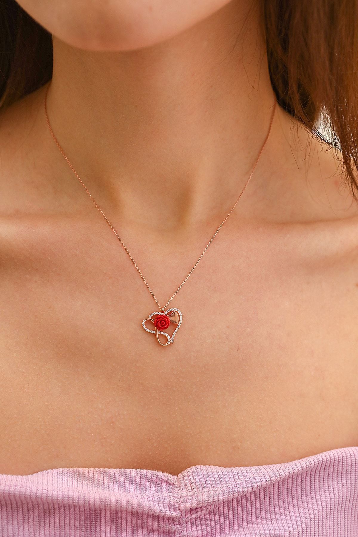 925 Ayar Gümüş Sonsuzlu Gül Kolye