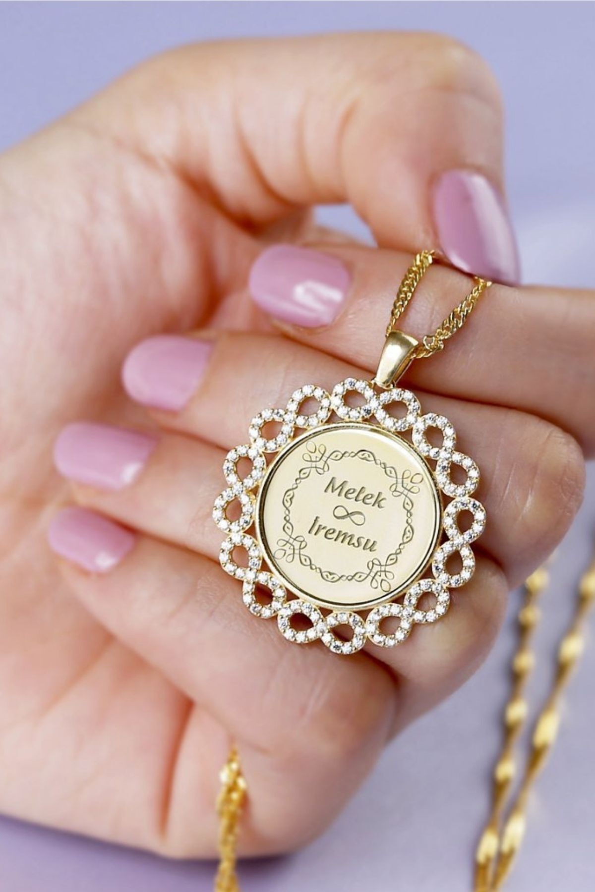 925 Ayar Gümüş Sonsuzluk Çerçeveli Isimli Plaka Kolye