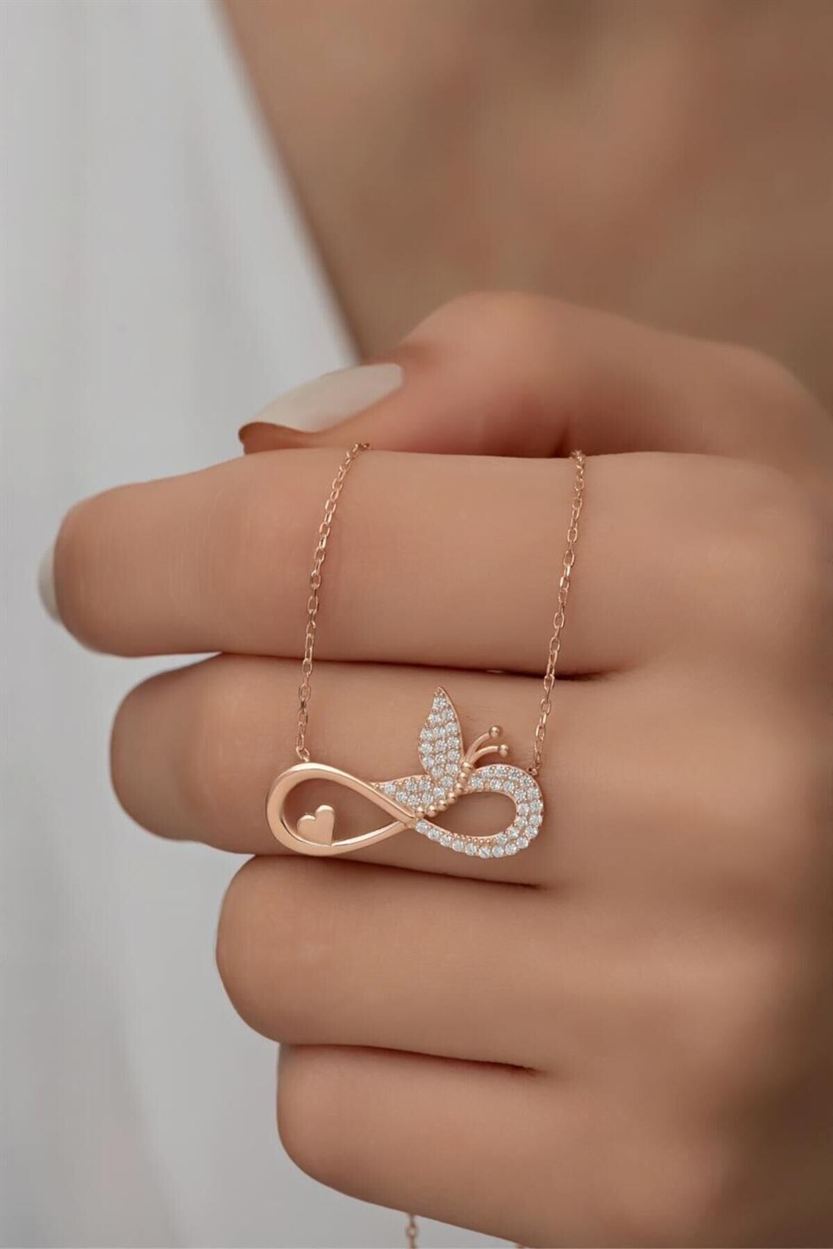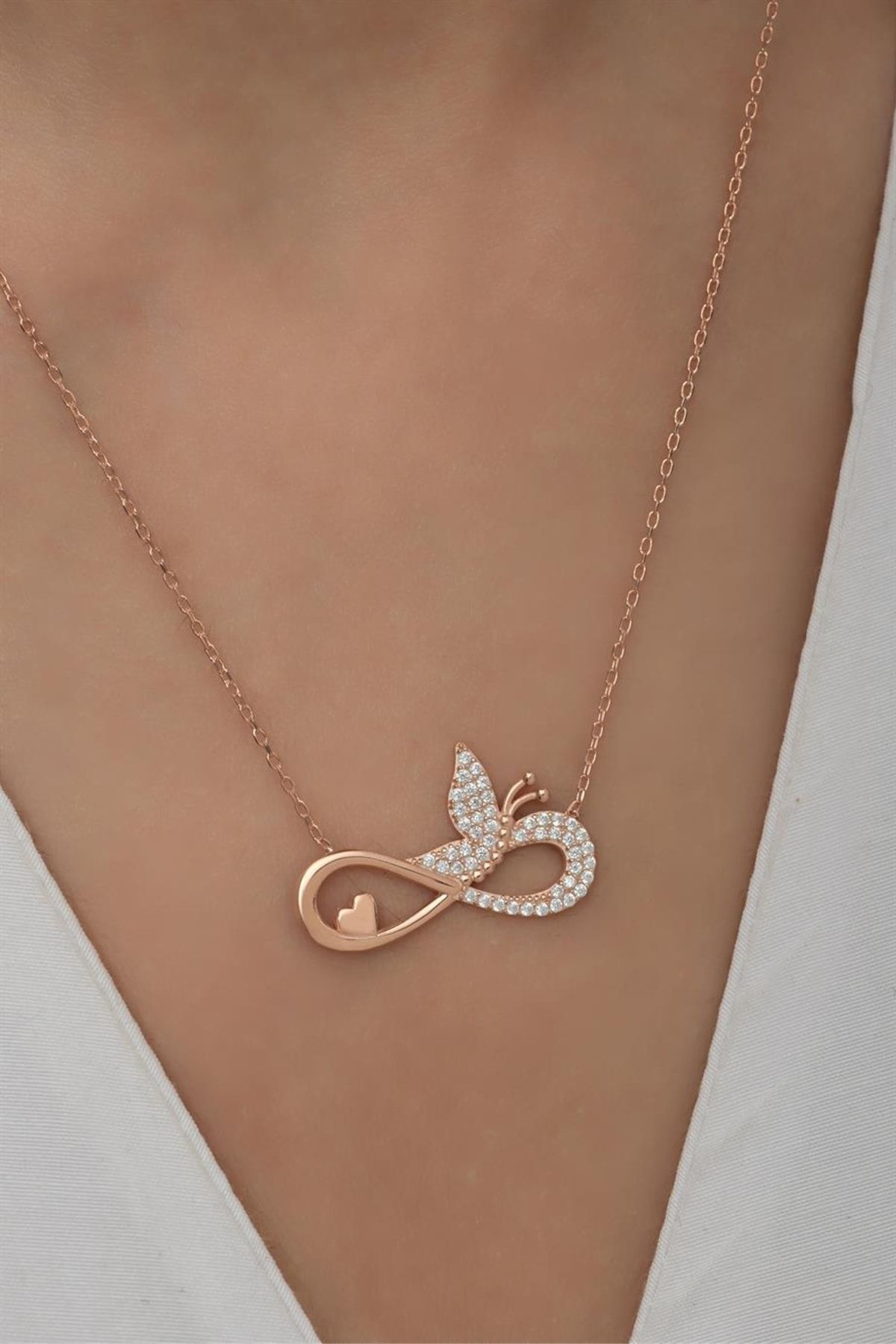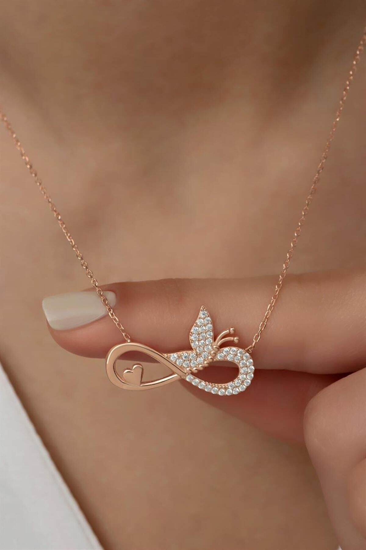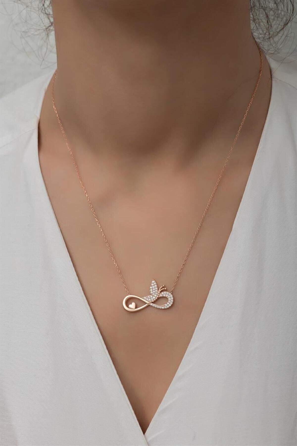 925 Ayar Gümüş Sonsuzluklu Kelebek Kolye