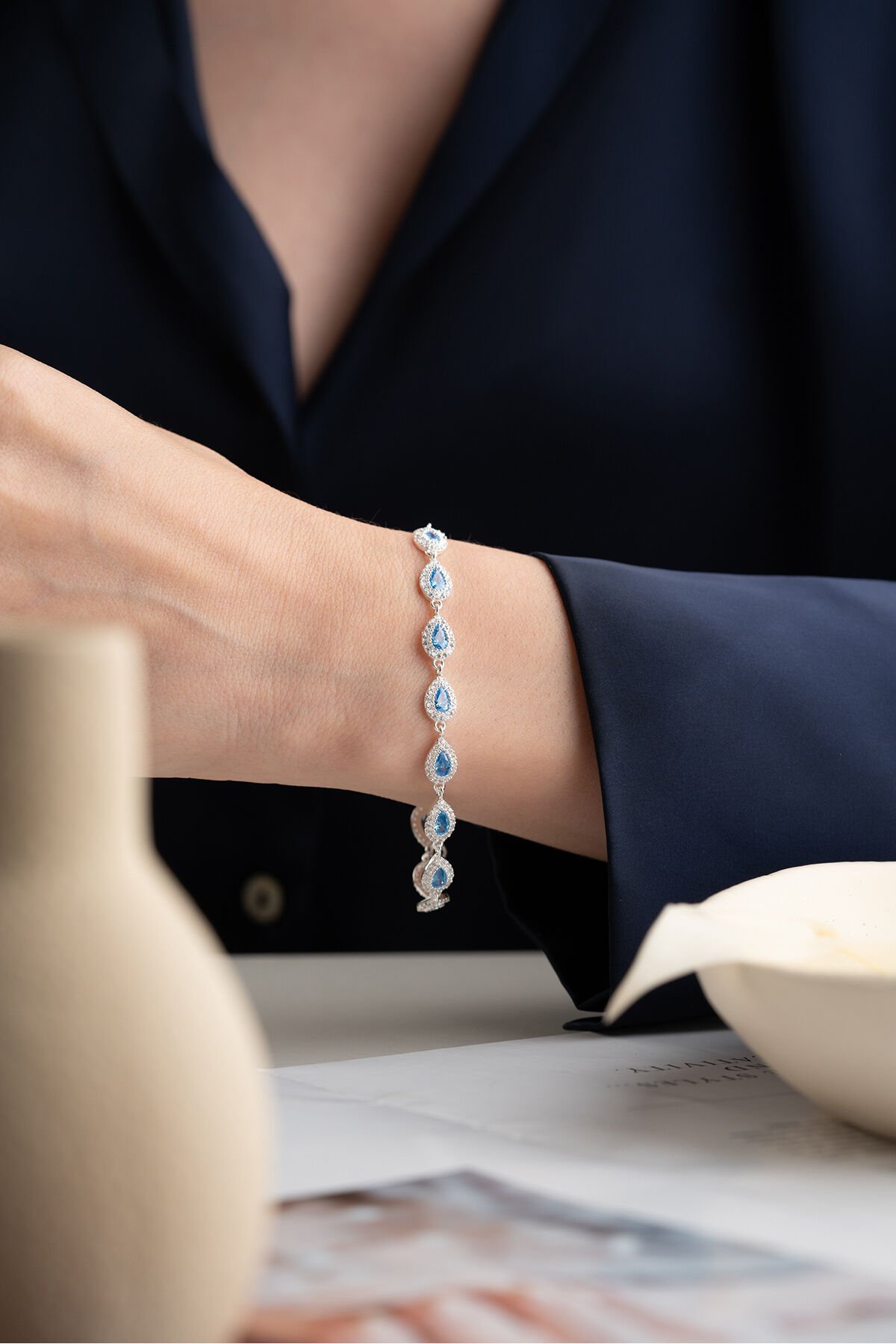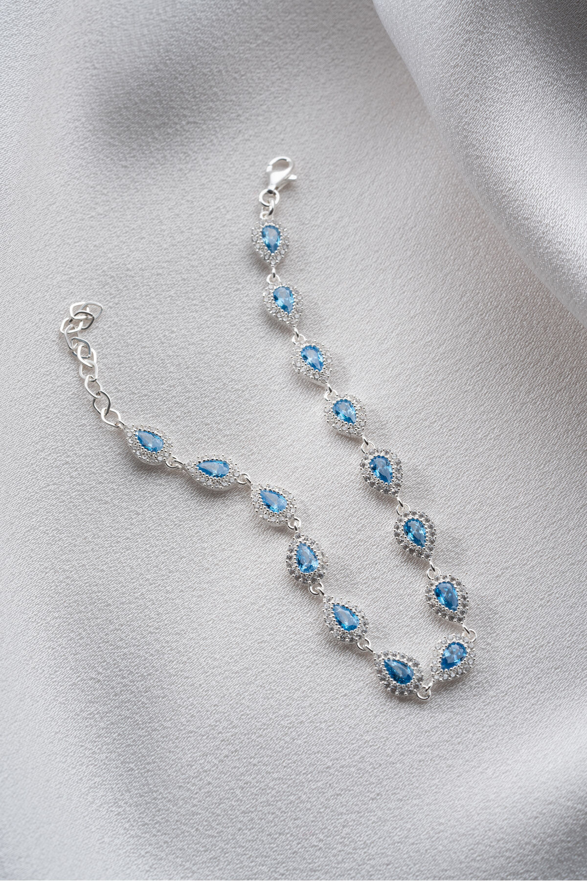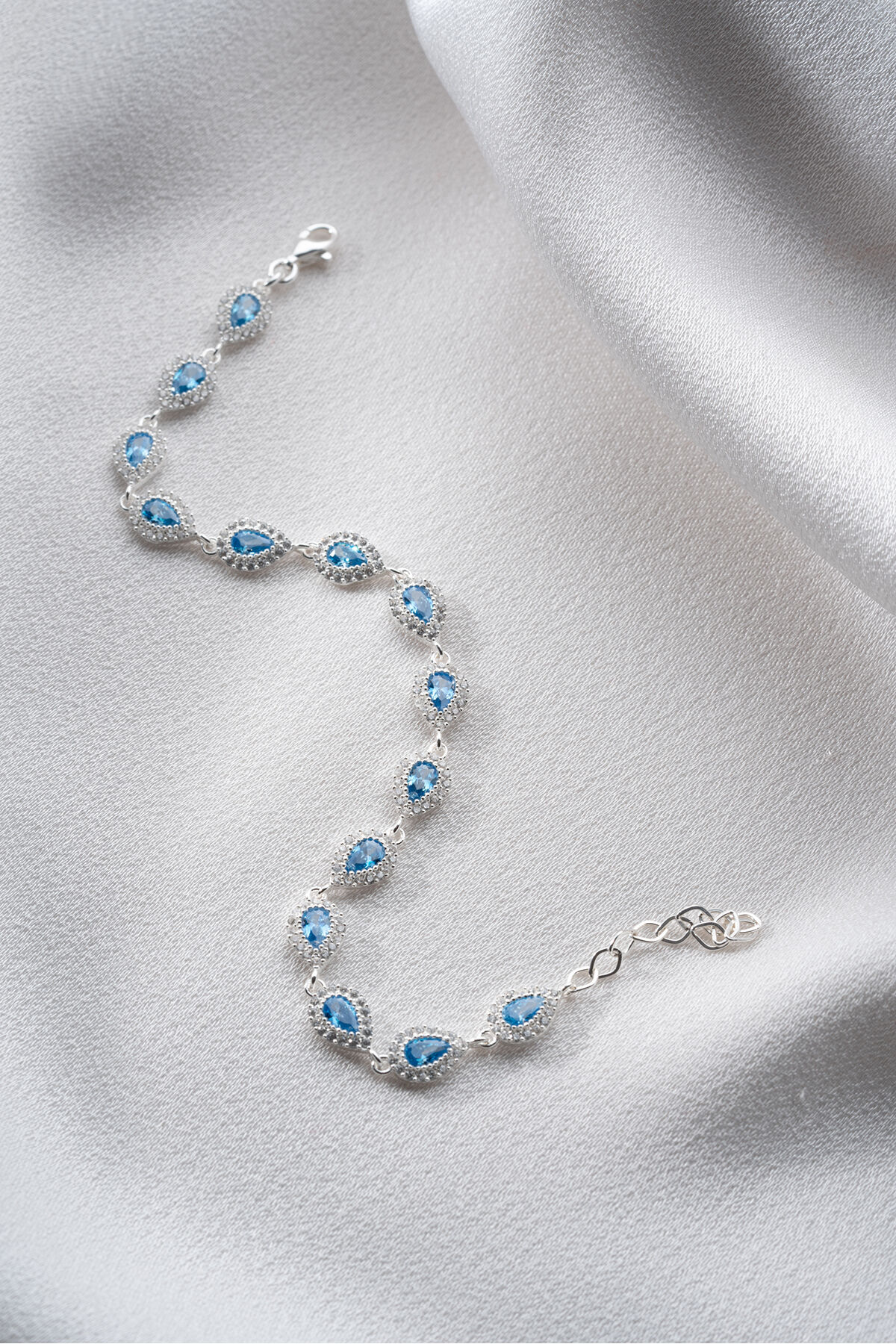 925 Ayar Gümüş Su Yolu Damla Aqua Taşlı Bileklik