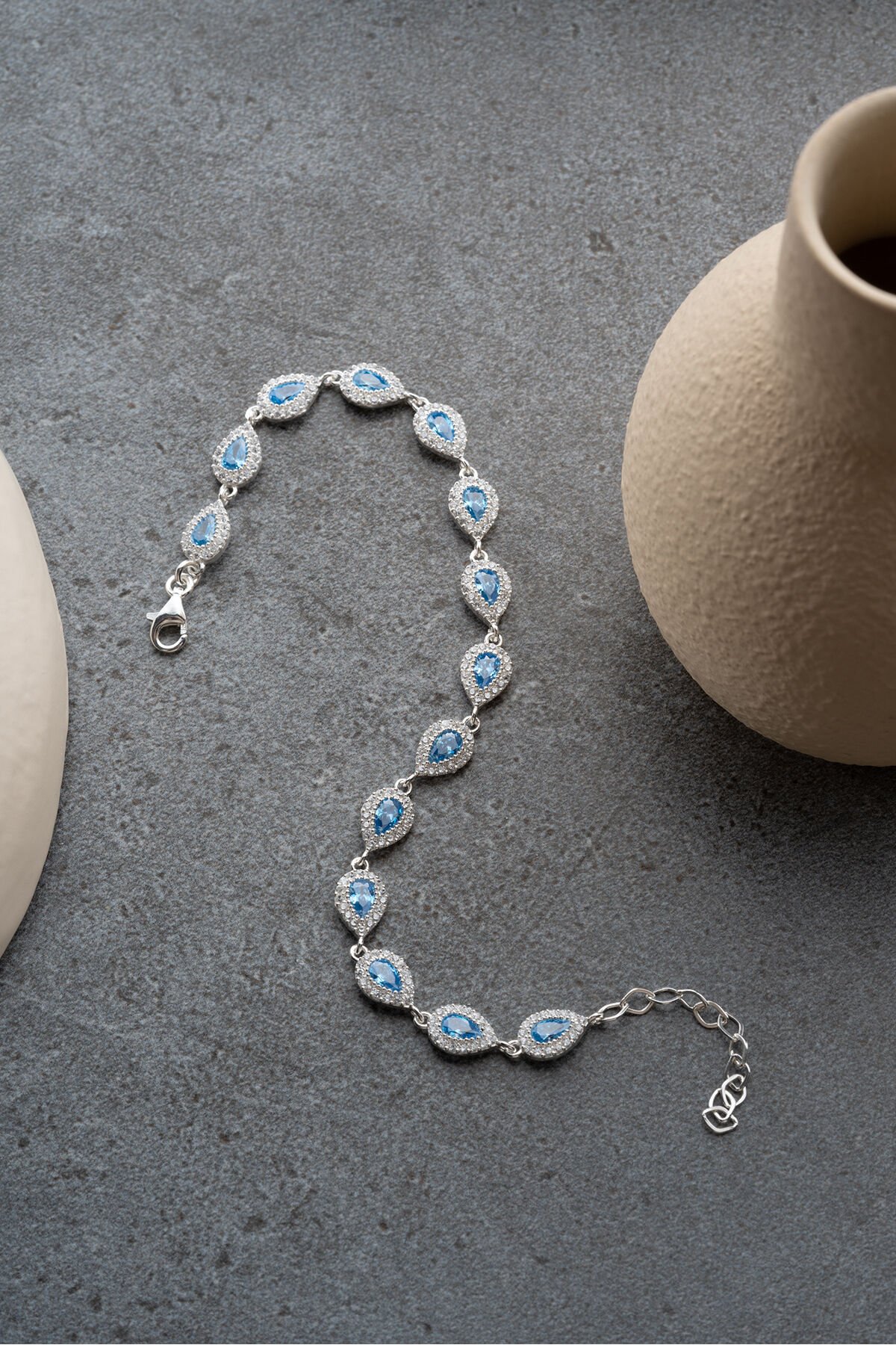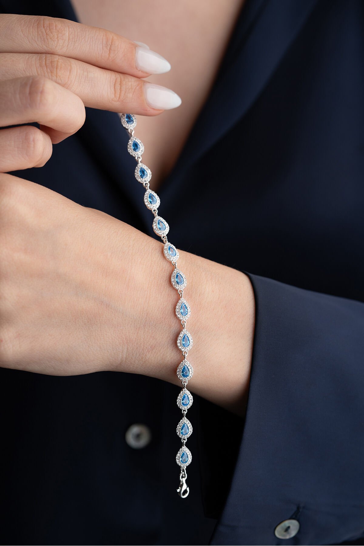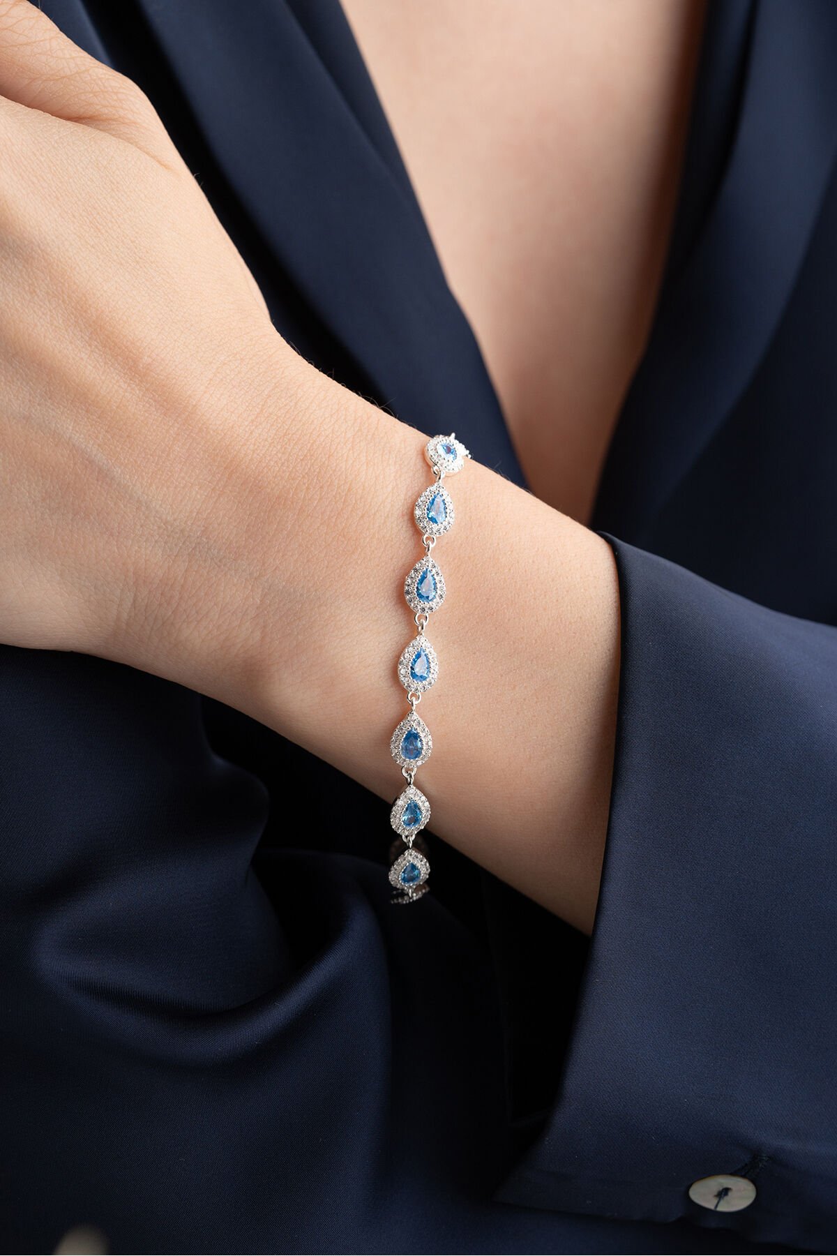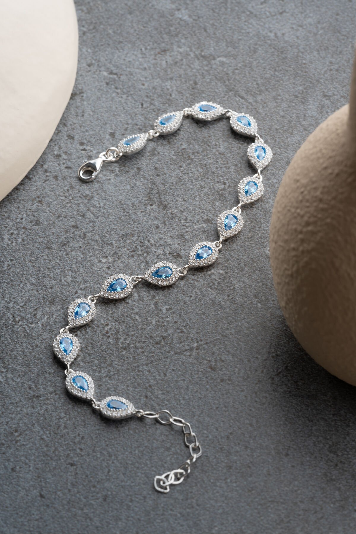 925 Ayar Gümüş Su Yolu Damla Aqua Taşlı Bileklik