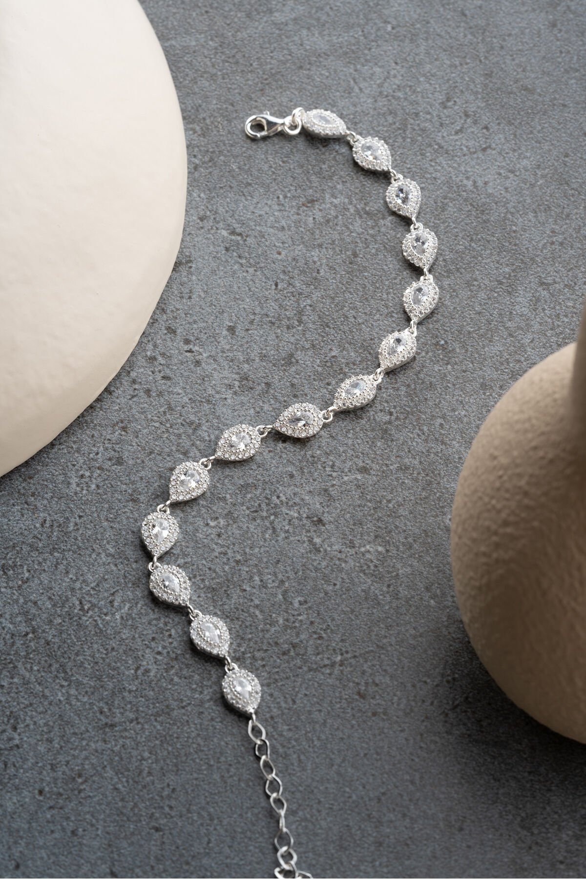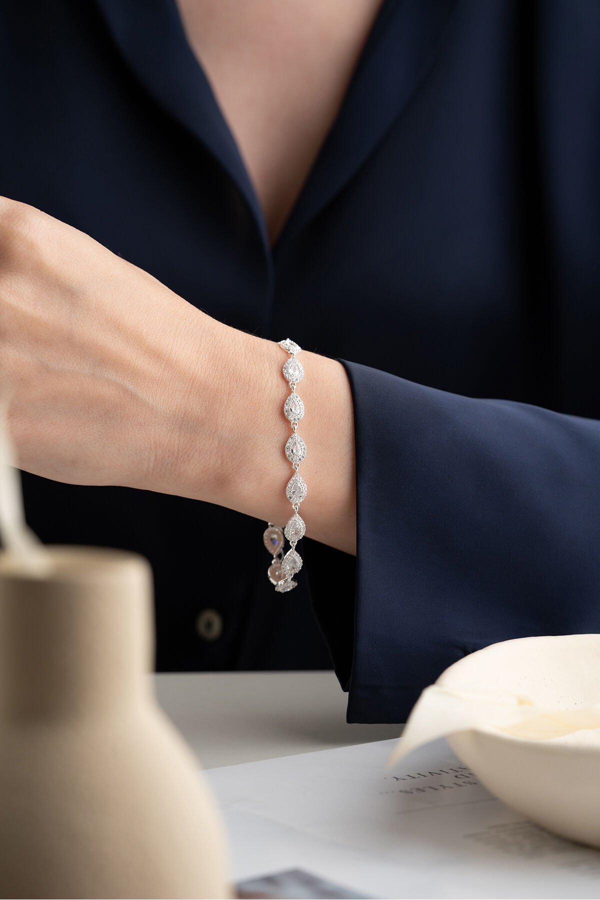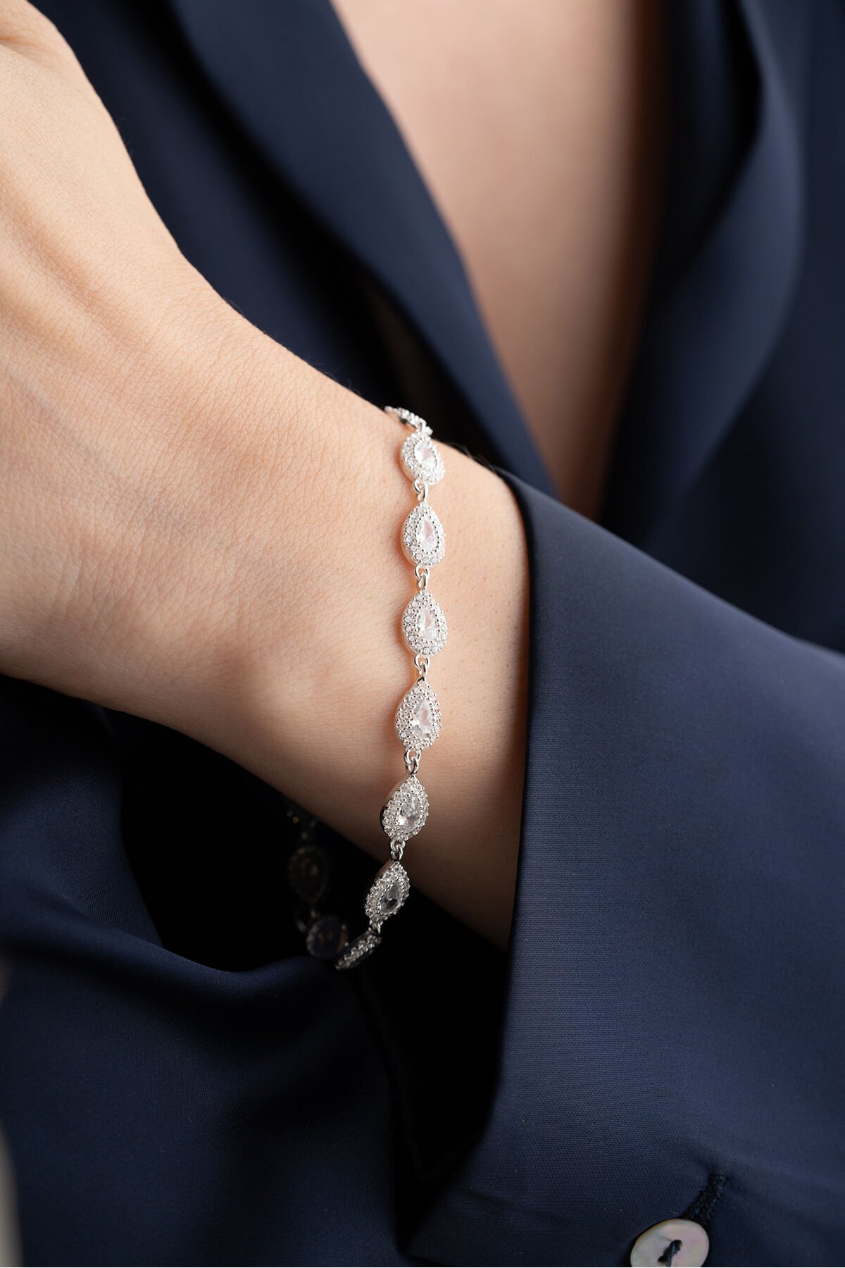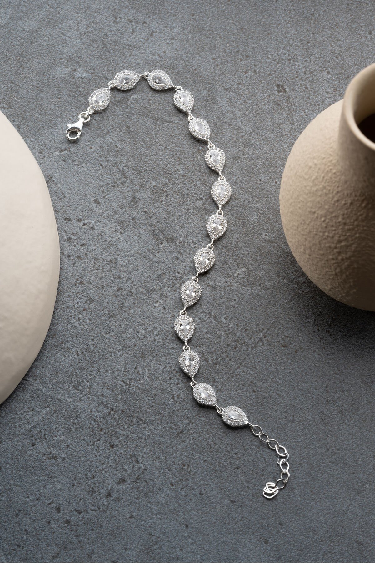 925 Ayar Gümüş Su Yolu Damla Beyaz Taşlı Bileklik