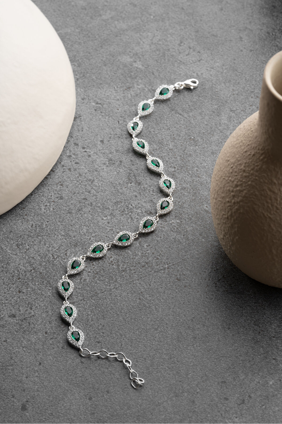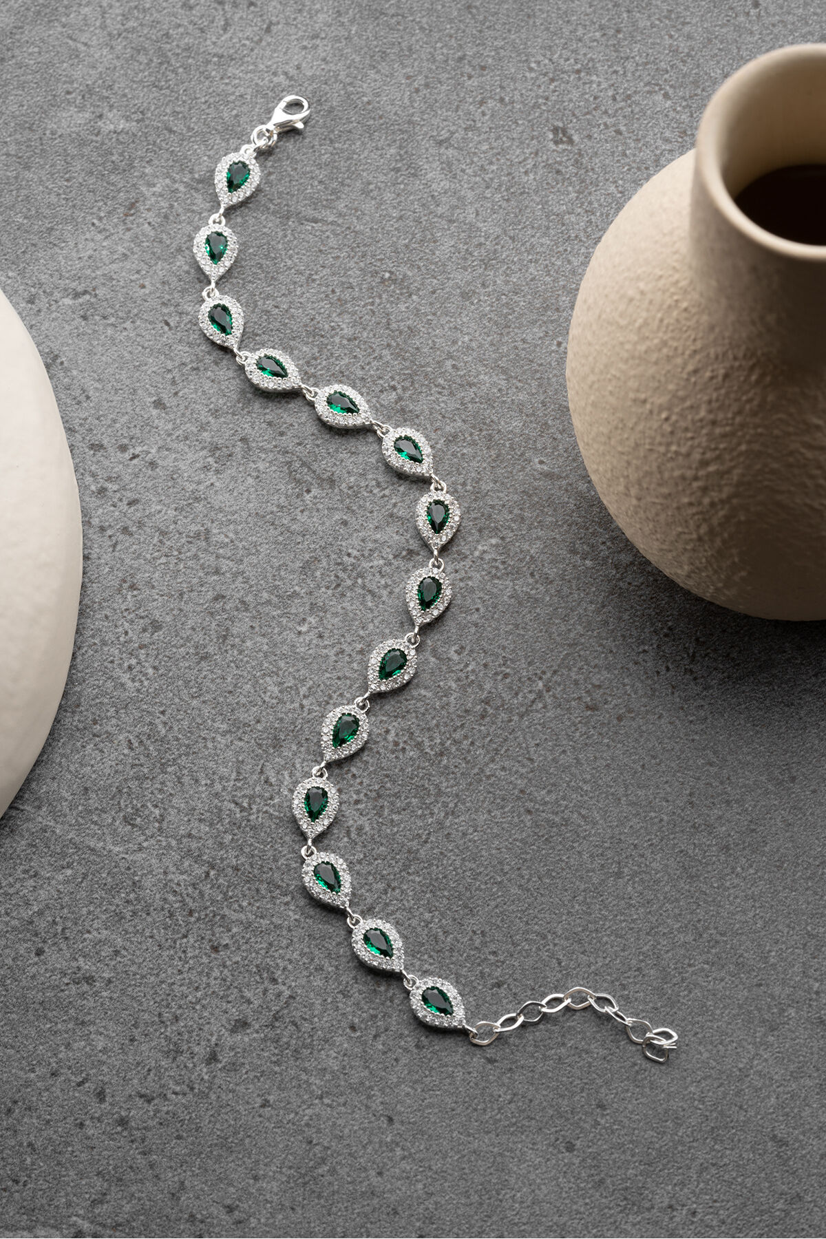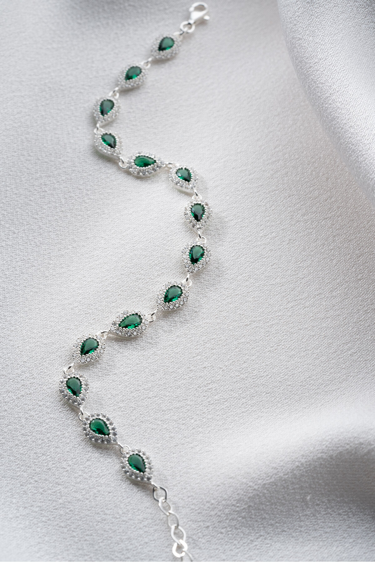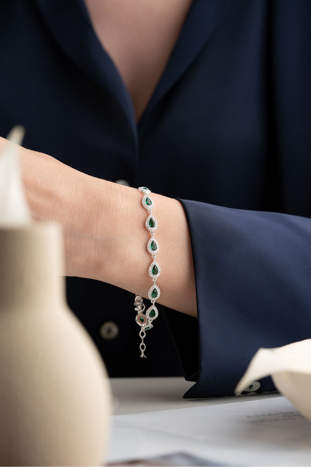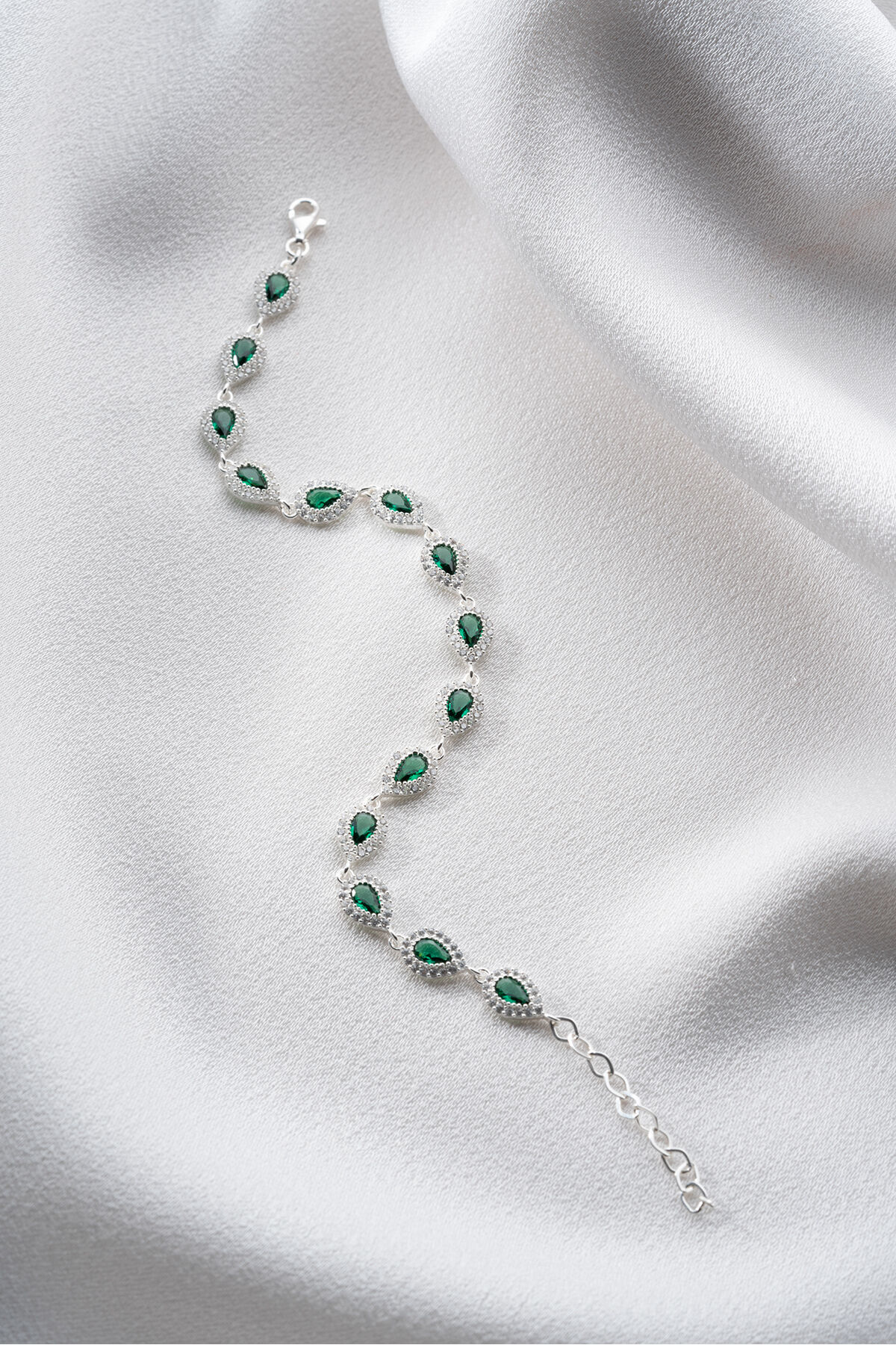 925 Ayar Gümüş Su Yolu Damla Zümrüt Taşlı Bileklik