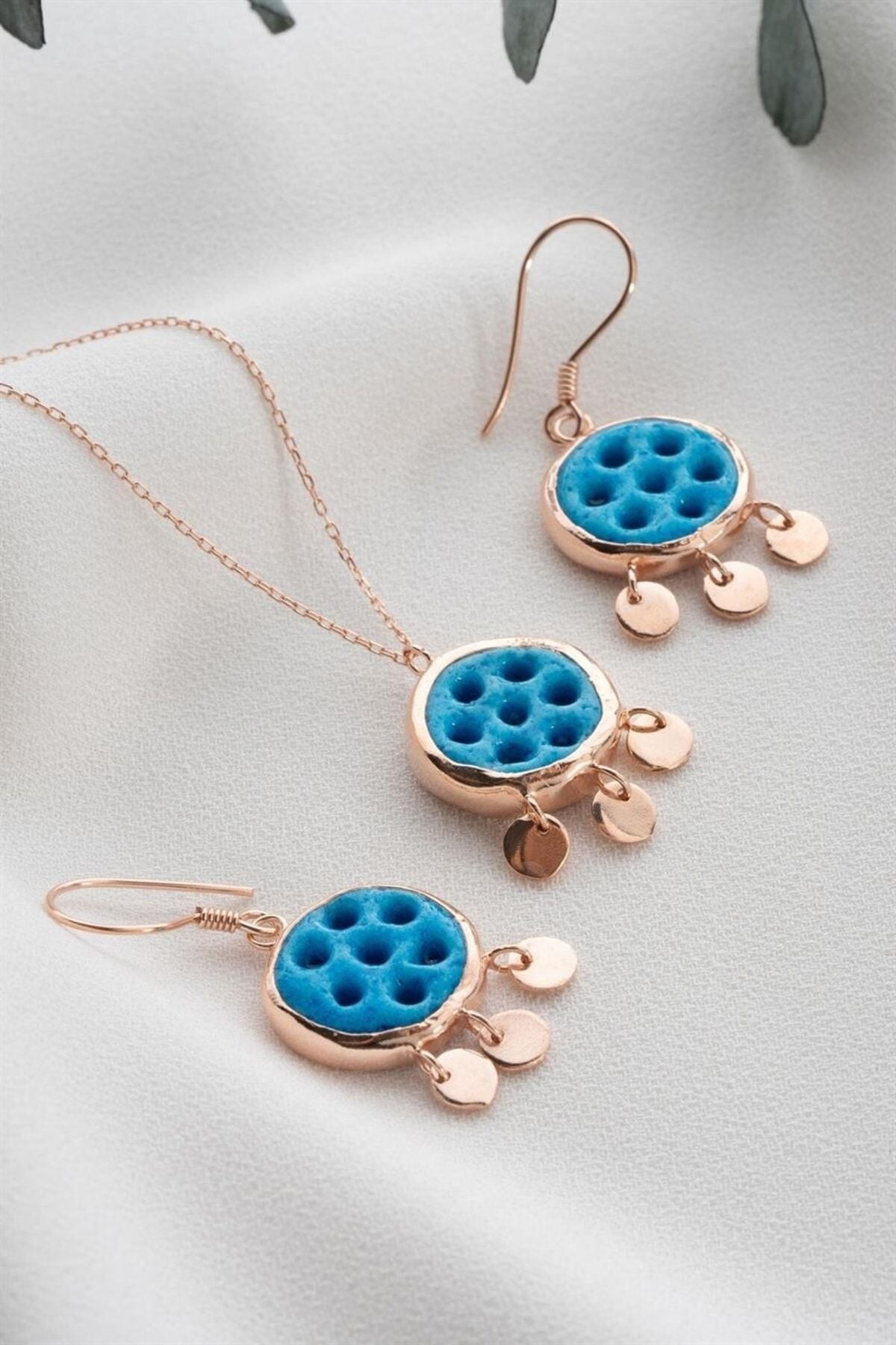 925 Ayar Gümüş Süryani Gözü Kolye Küpe Seti