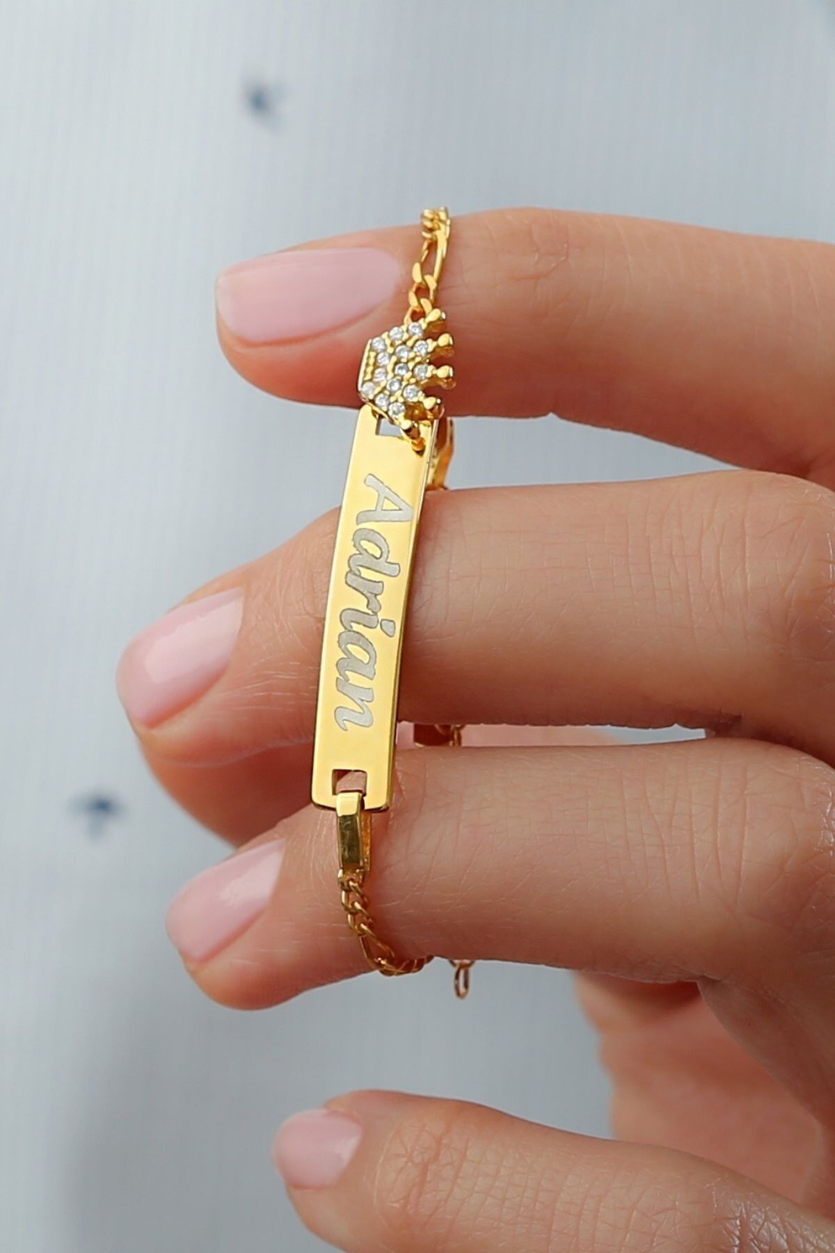 925 Ayar Gümüş Taçlı Isimli Çocuk Bileklik