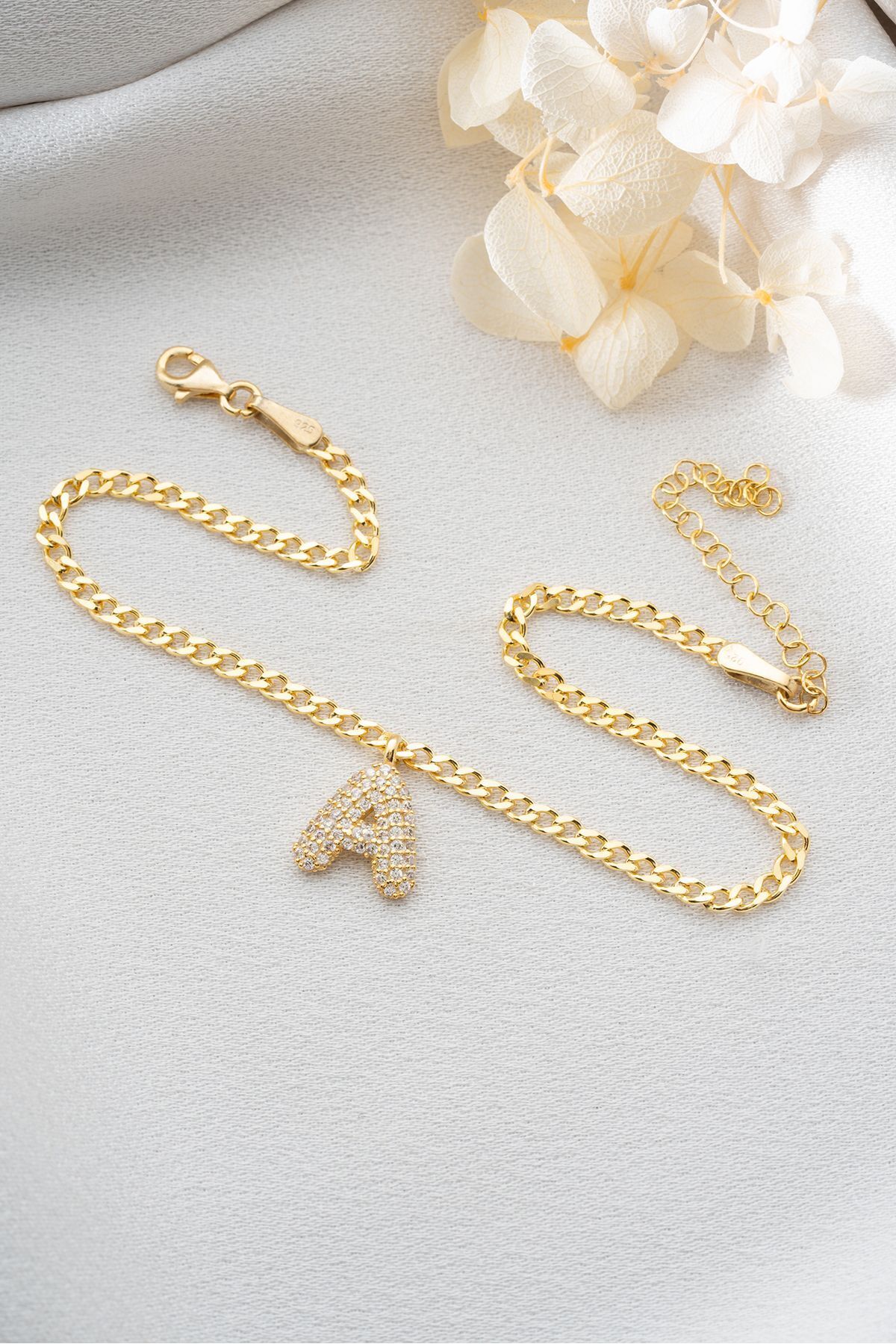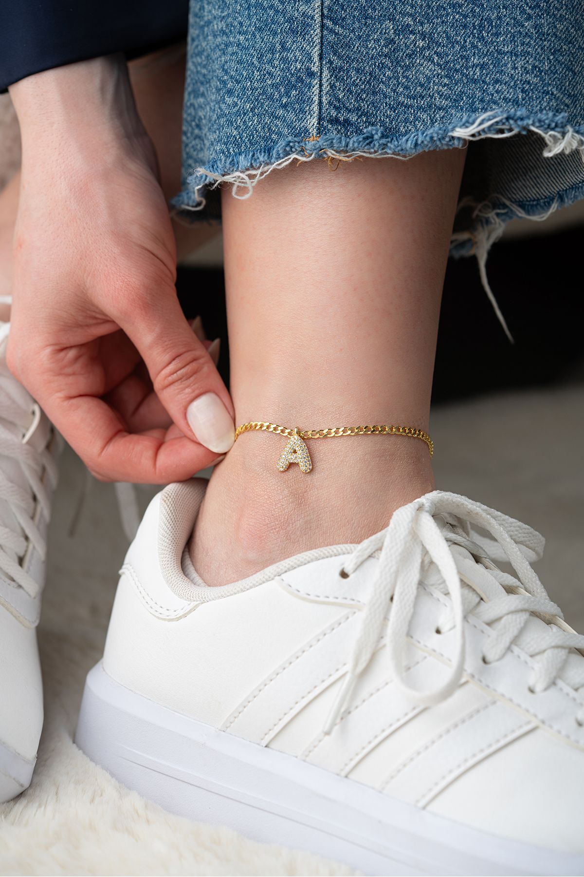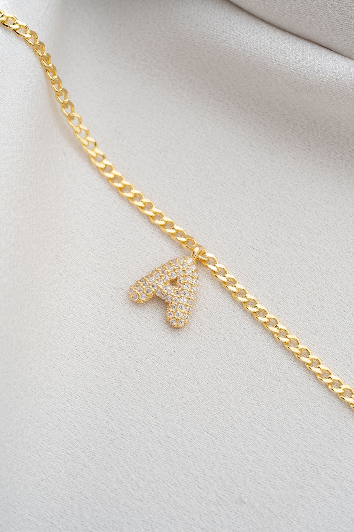 925 Ayar Gümüş Taşlı Balon Harf Halhal
