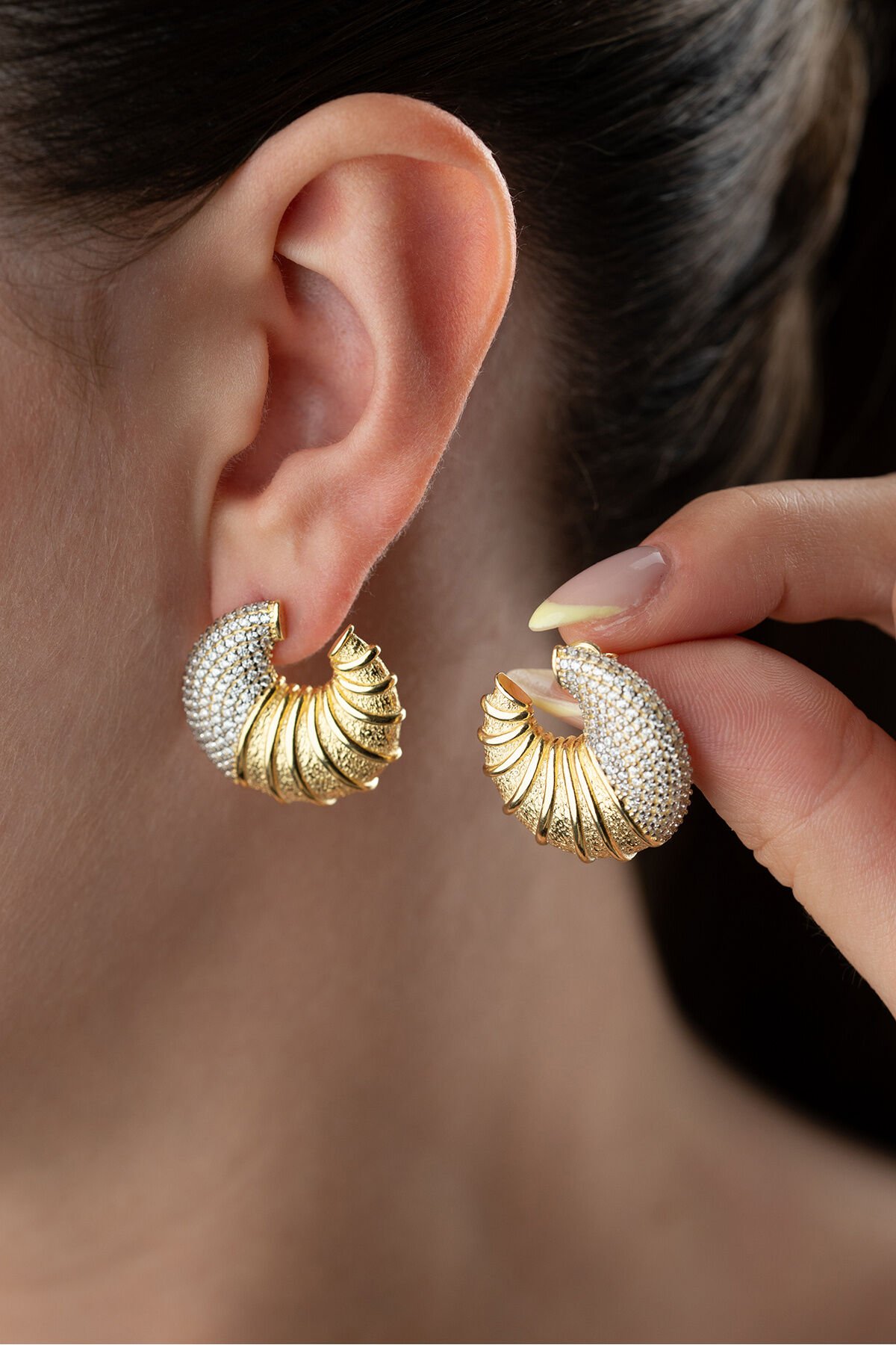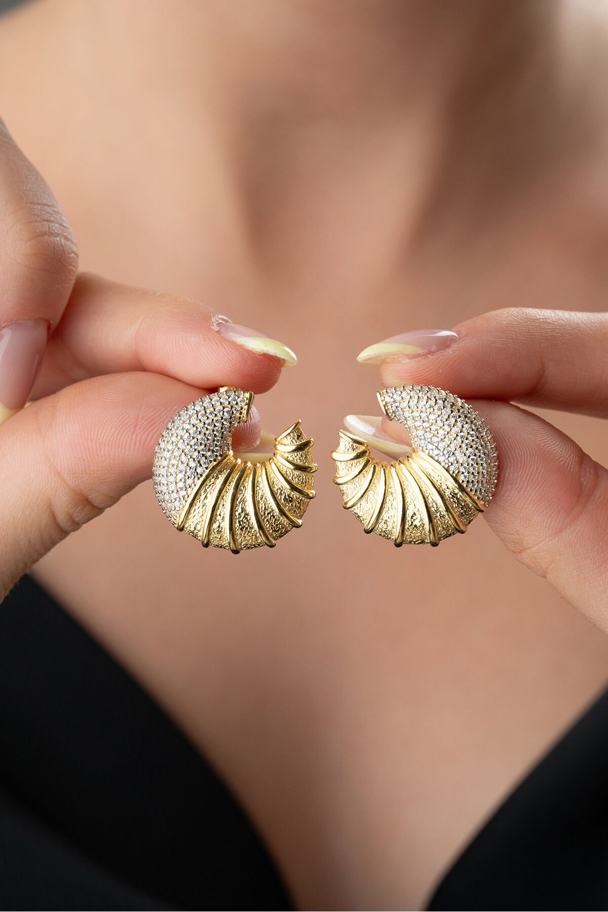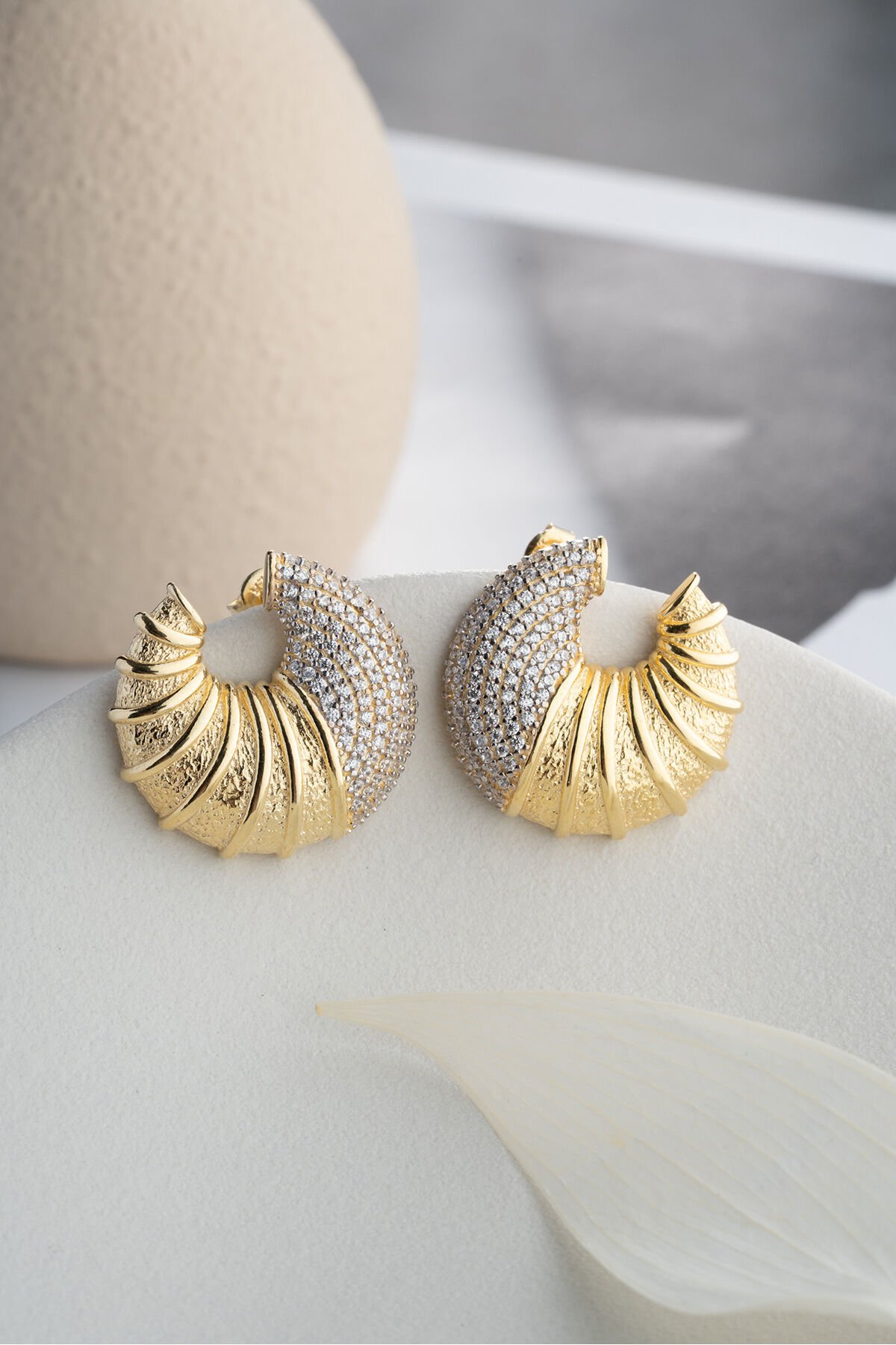 925 Ayar Gümüş Taşlı Deniz Kabuğu Küpe