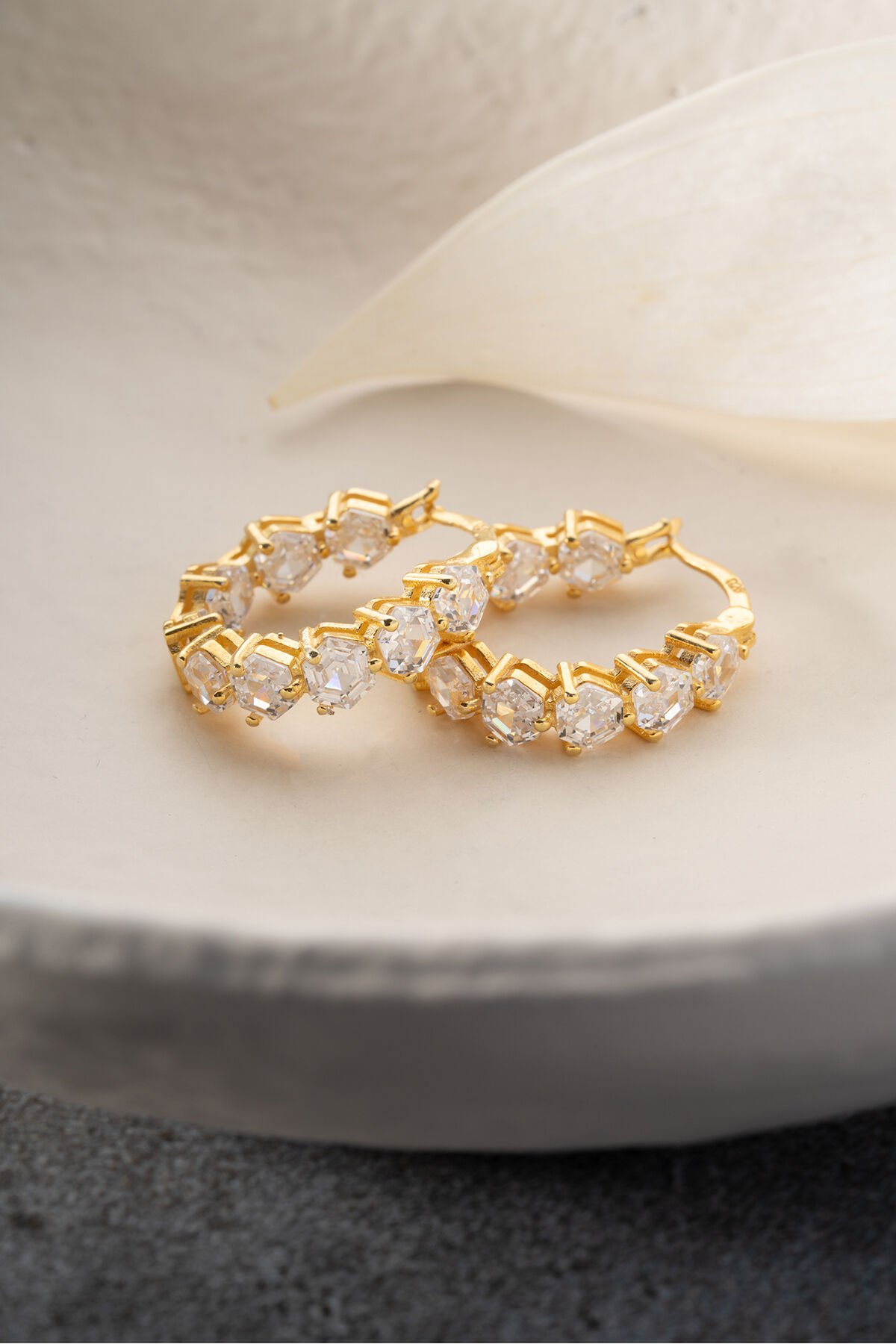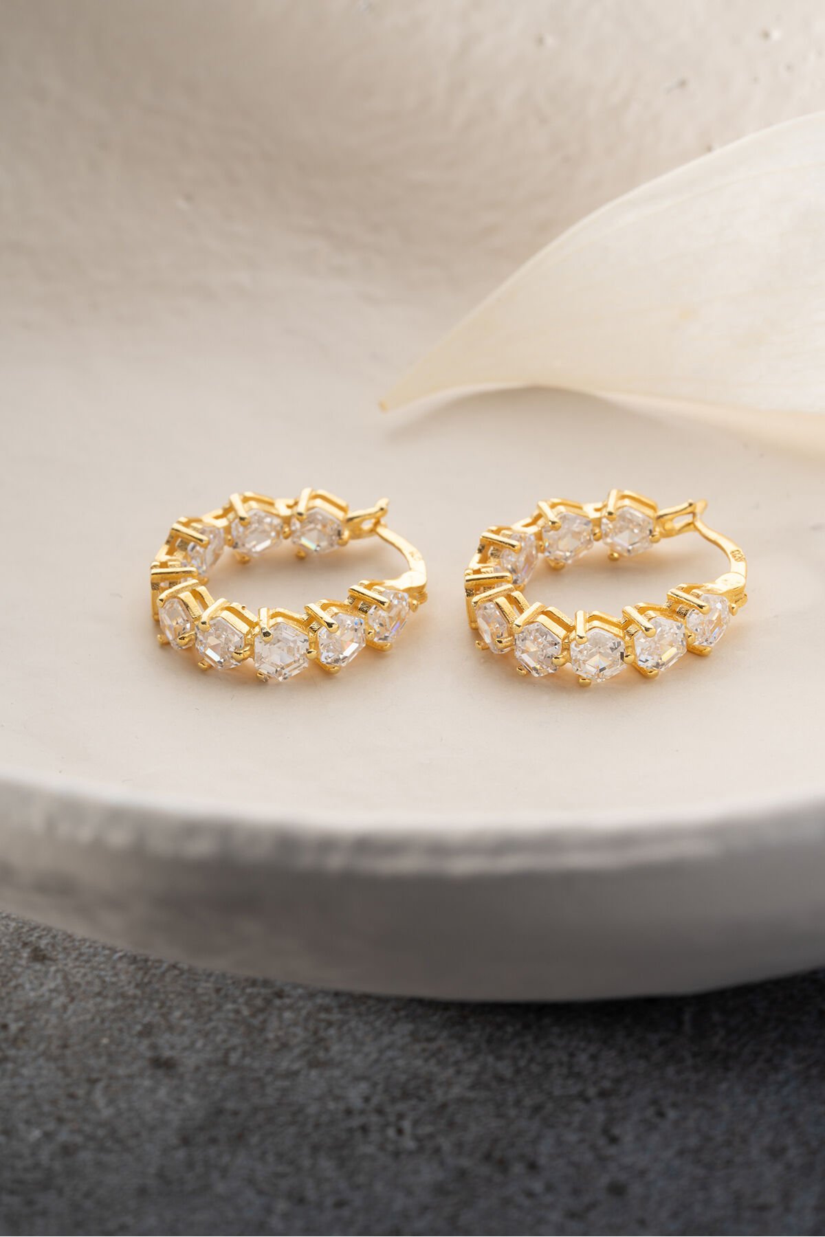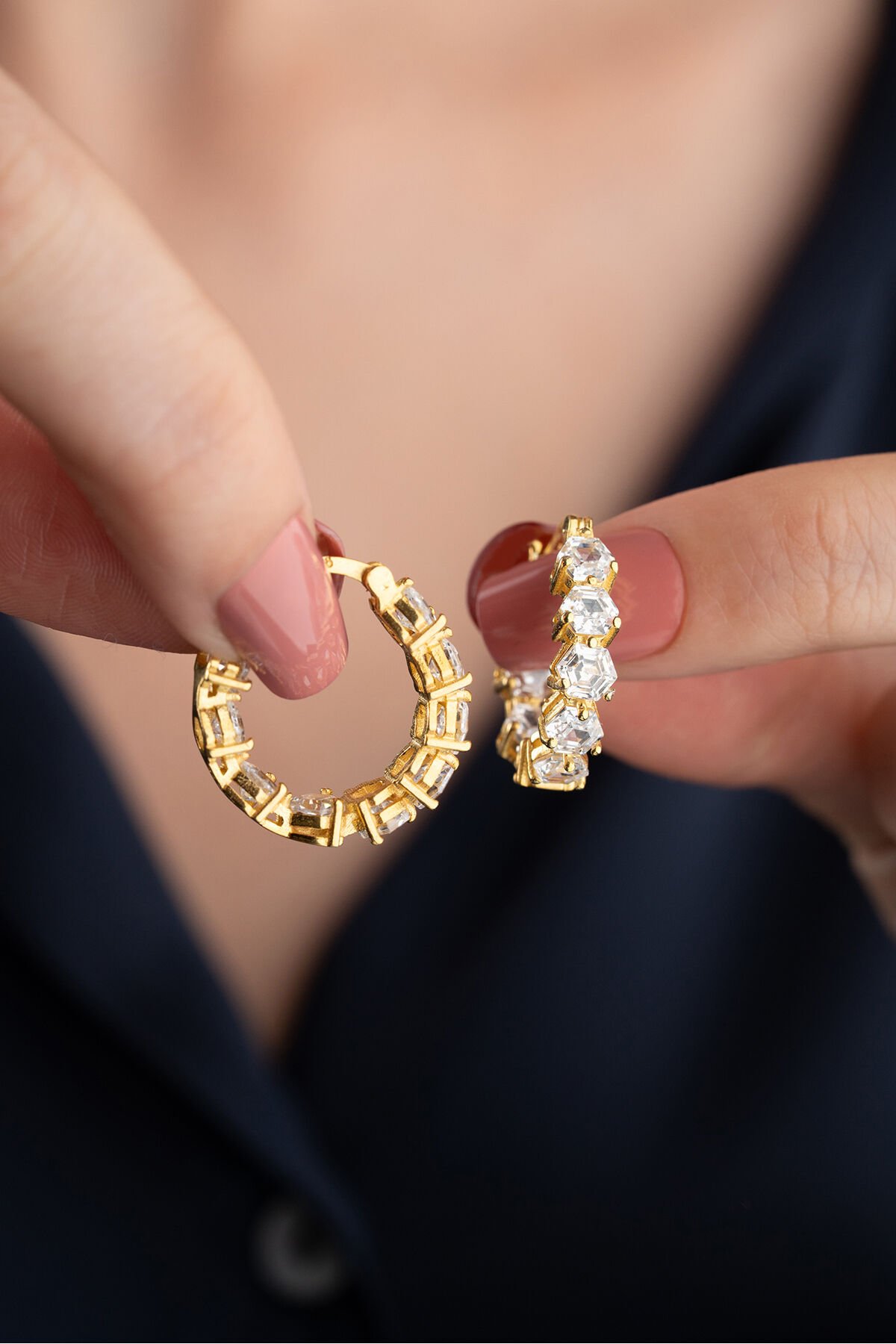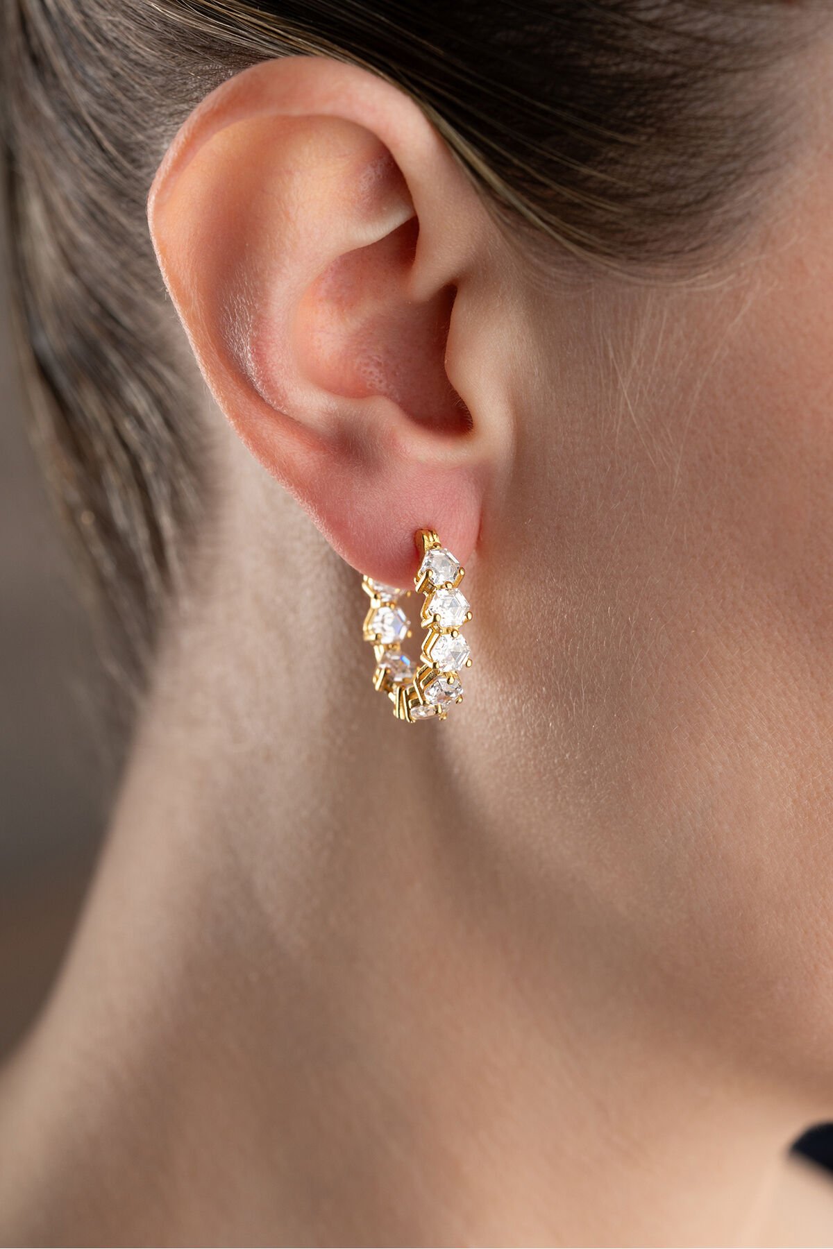 925 Ayar Gümüş Taşlı Halka Kalp Taşlı Küpe