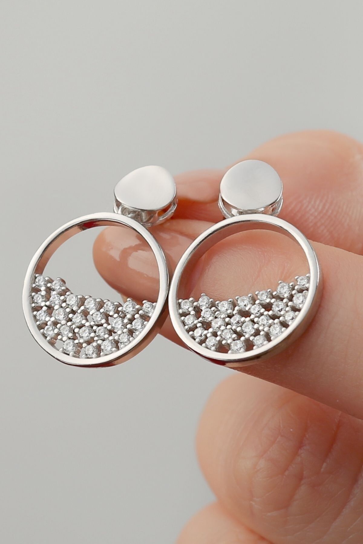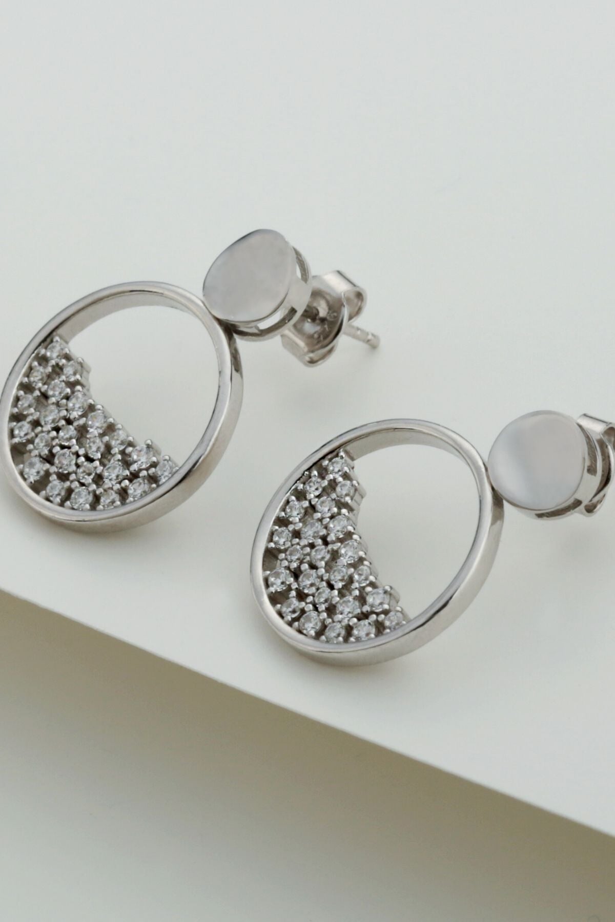 925 Ayar Gümüş Taşlı Halka Küpe (rodyum)