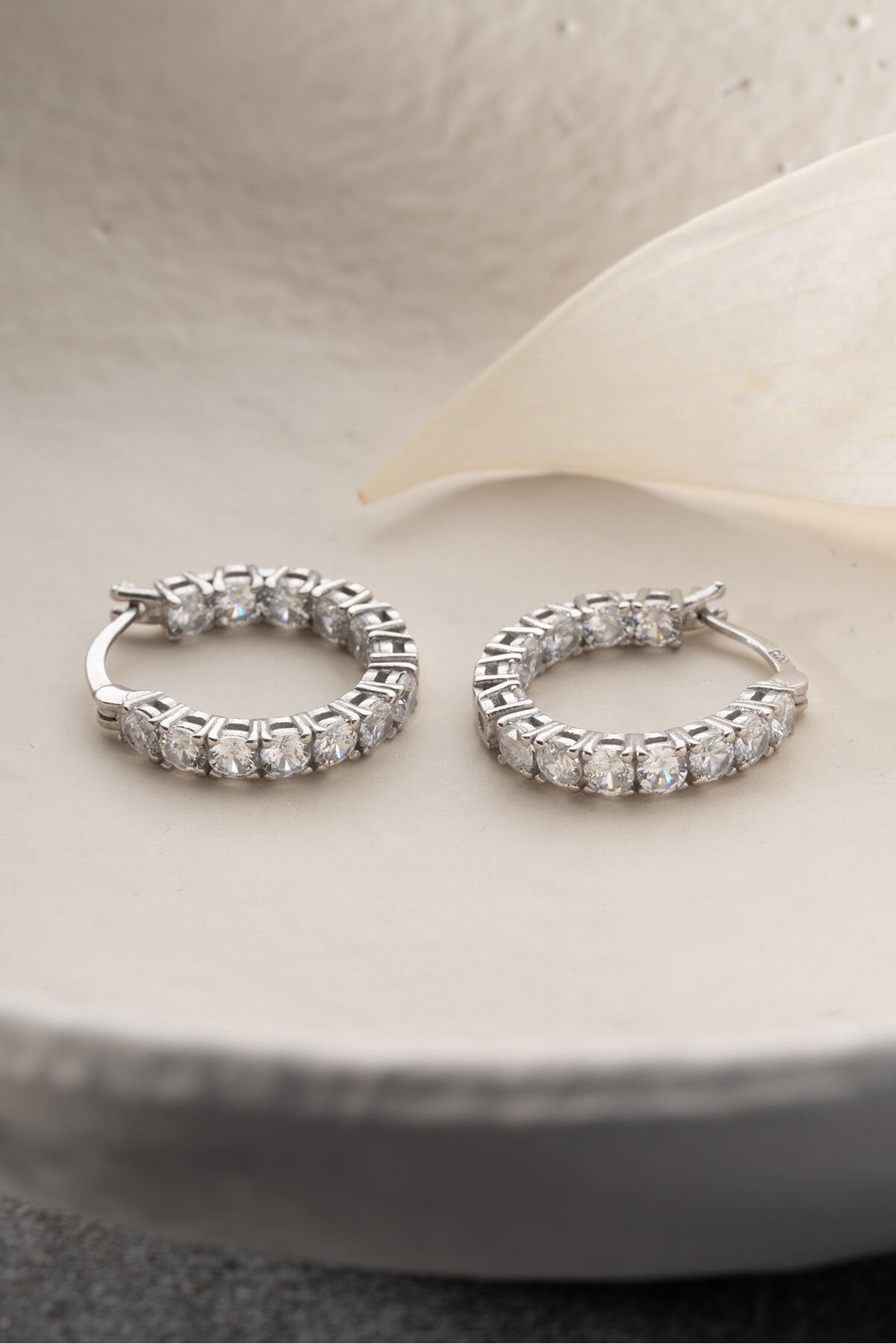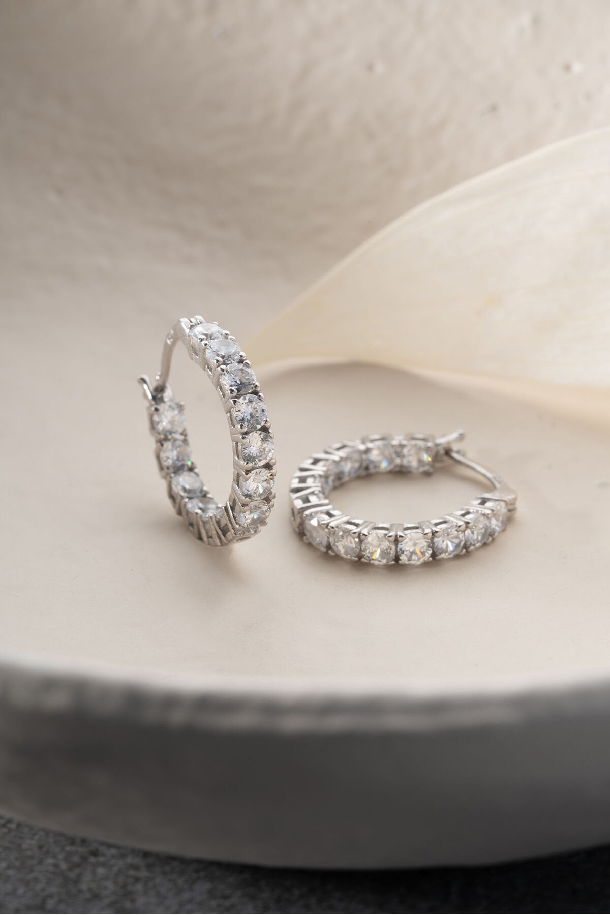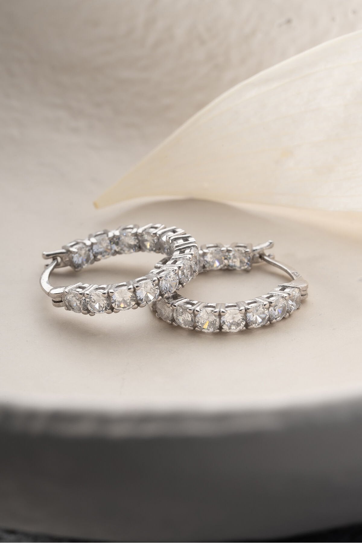 925 Ayar Gümüş Taşlı Halka Tamtur Küpe