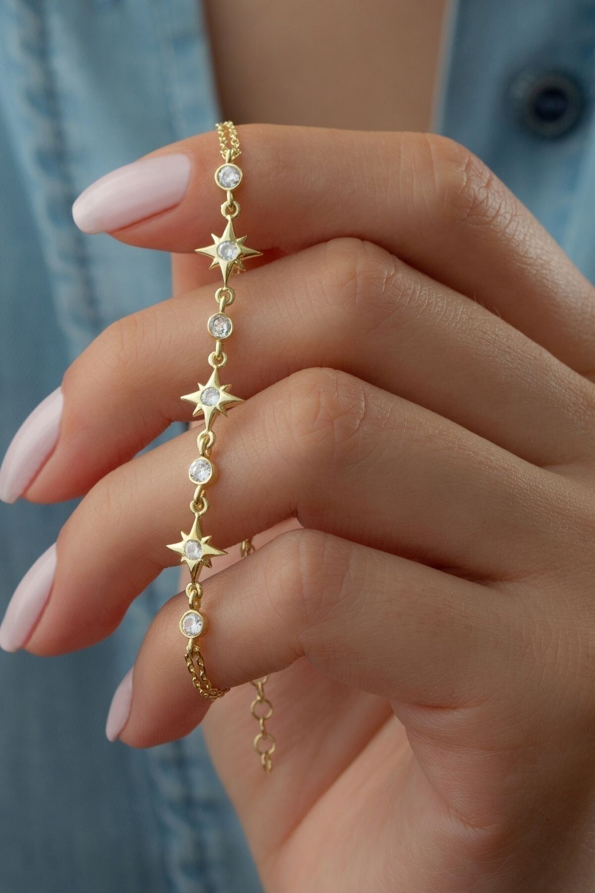 925 Ayar Gümüş Taşlı Kutupyıldızı Bileklik