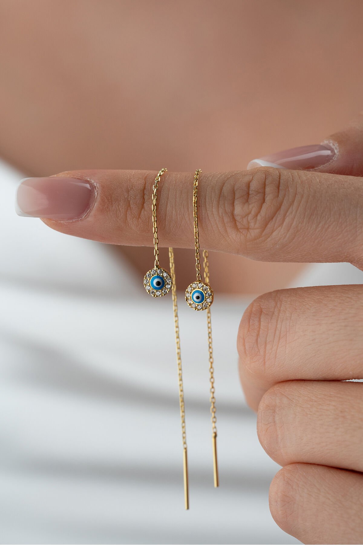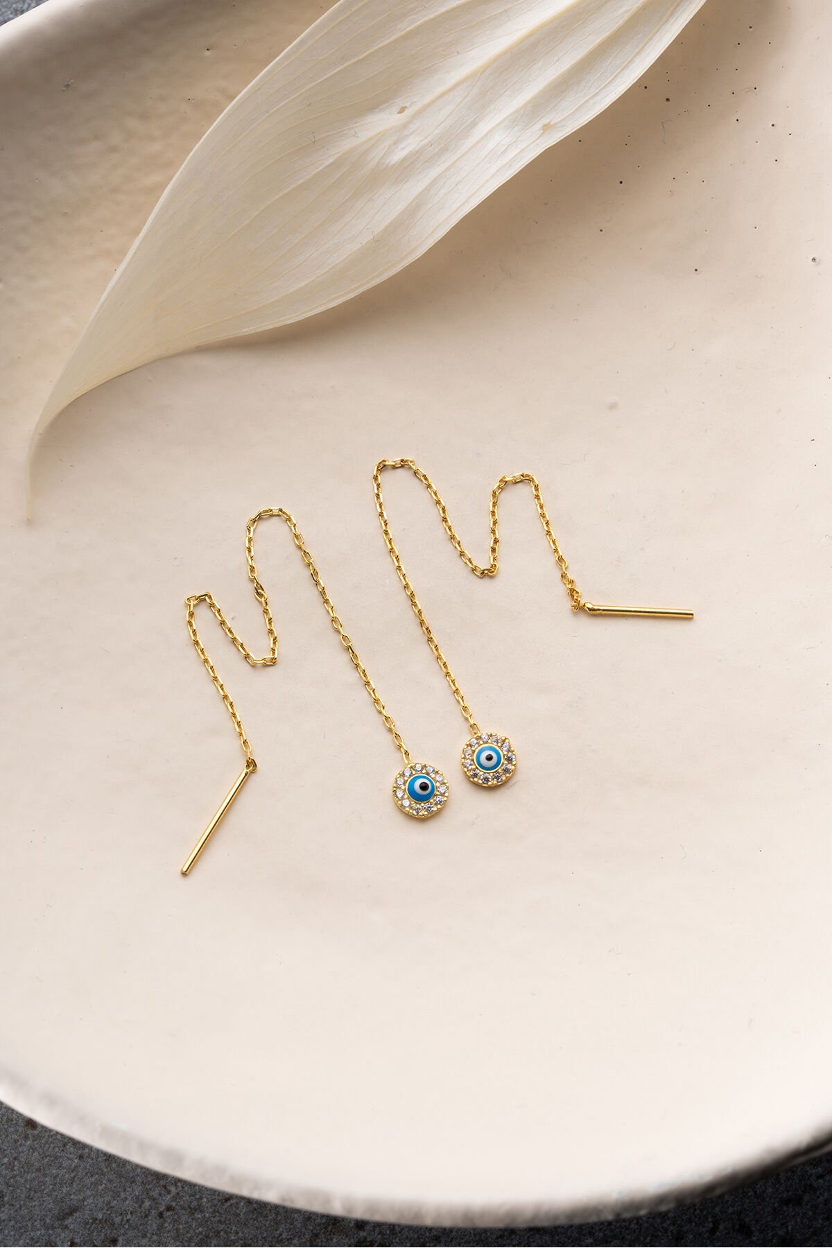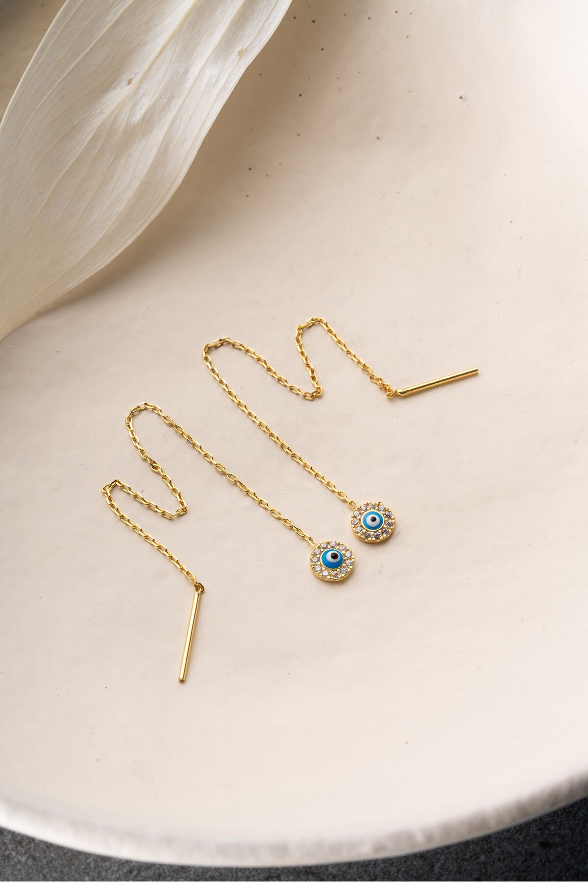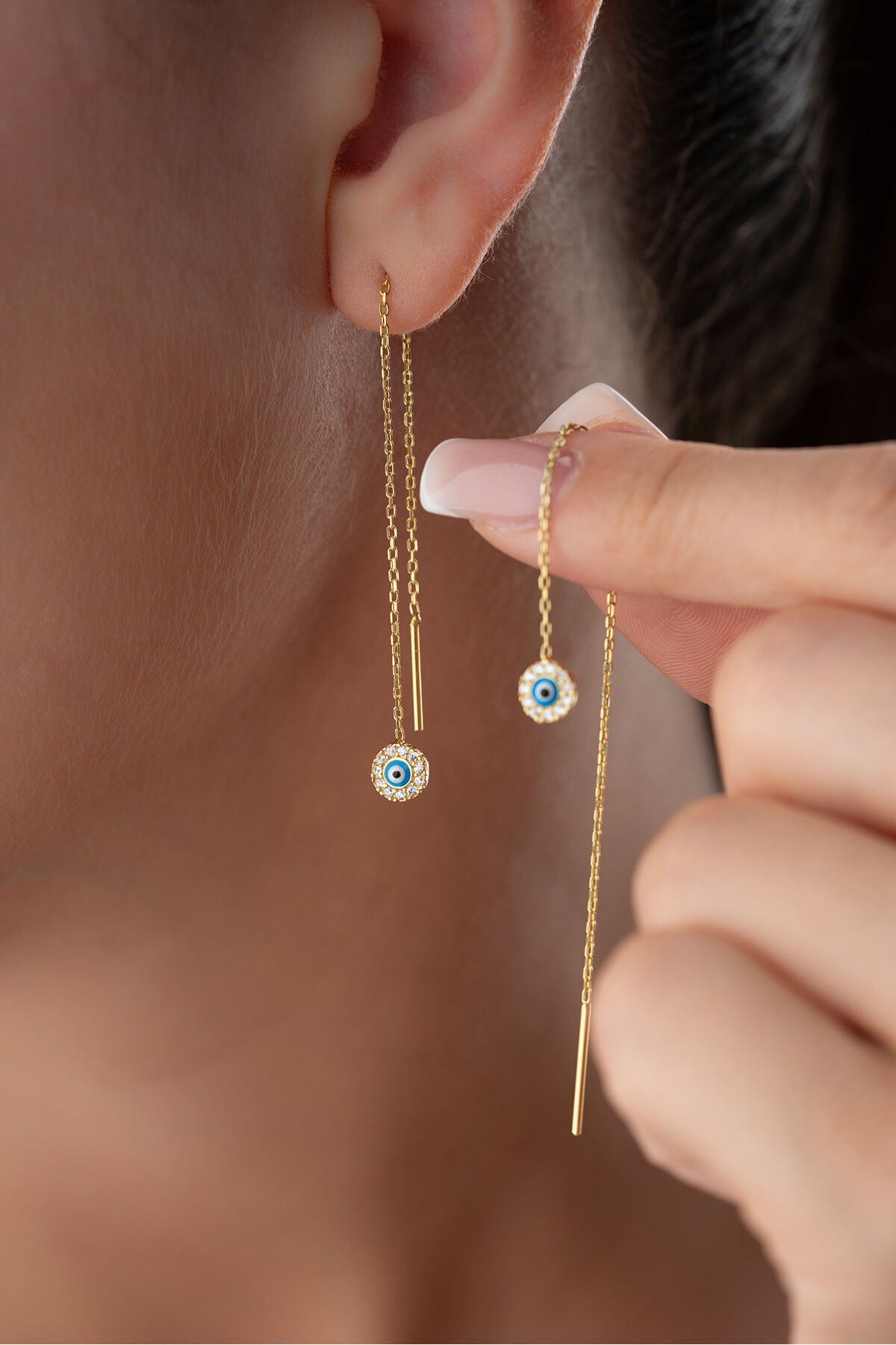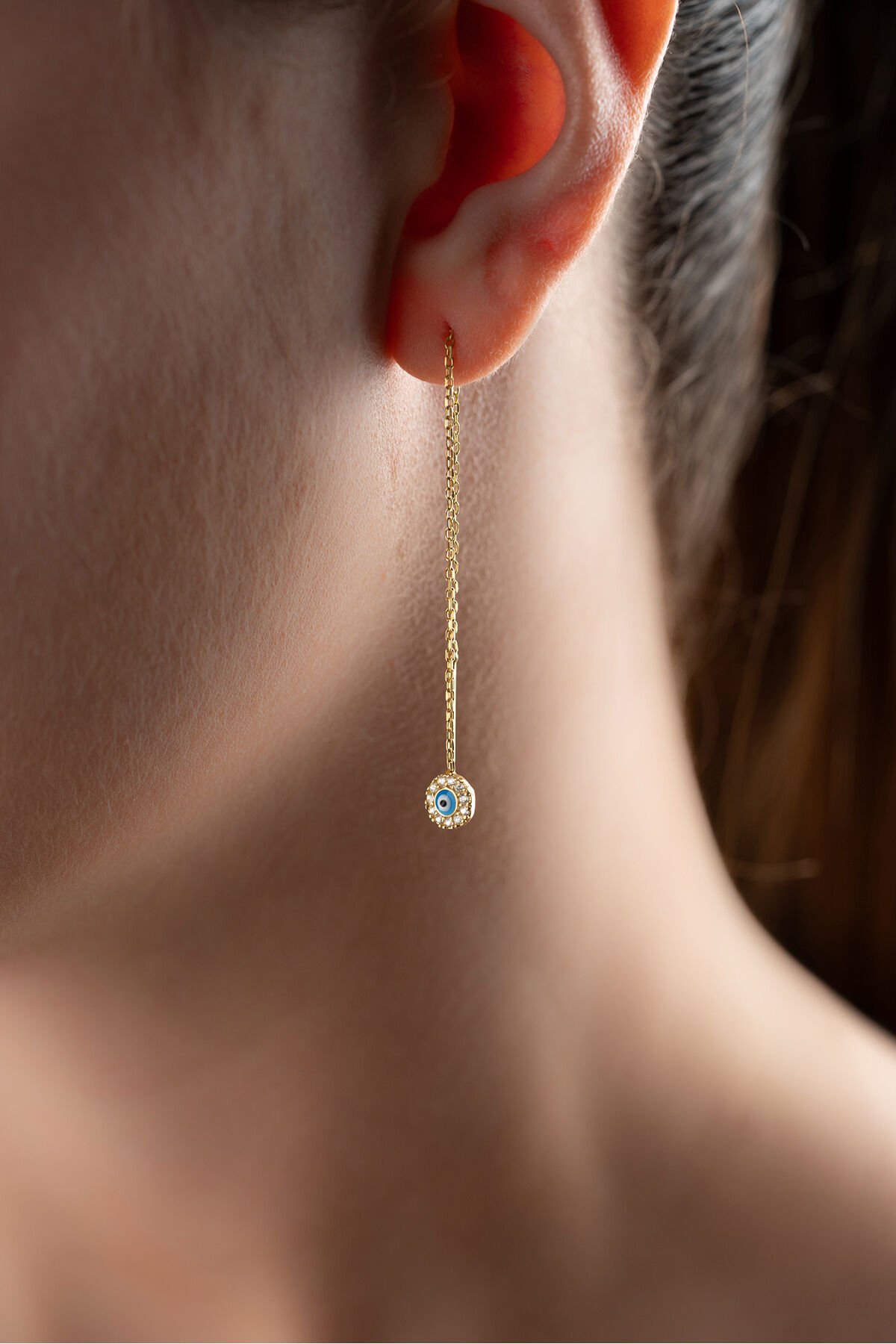 925 Ayar Gümüş Taşlı Nazar Zincir Küpe