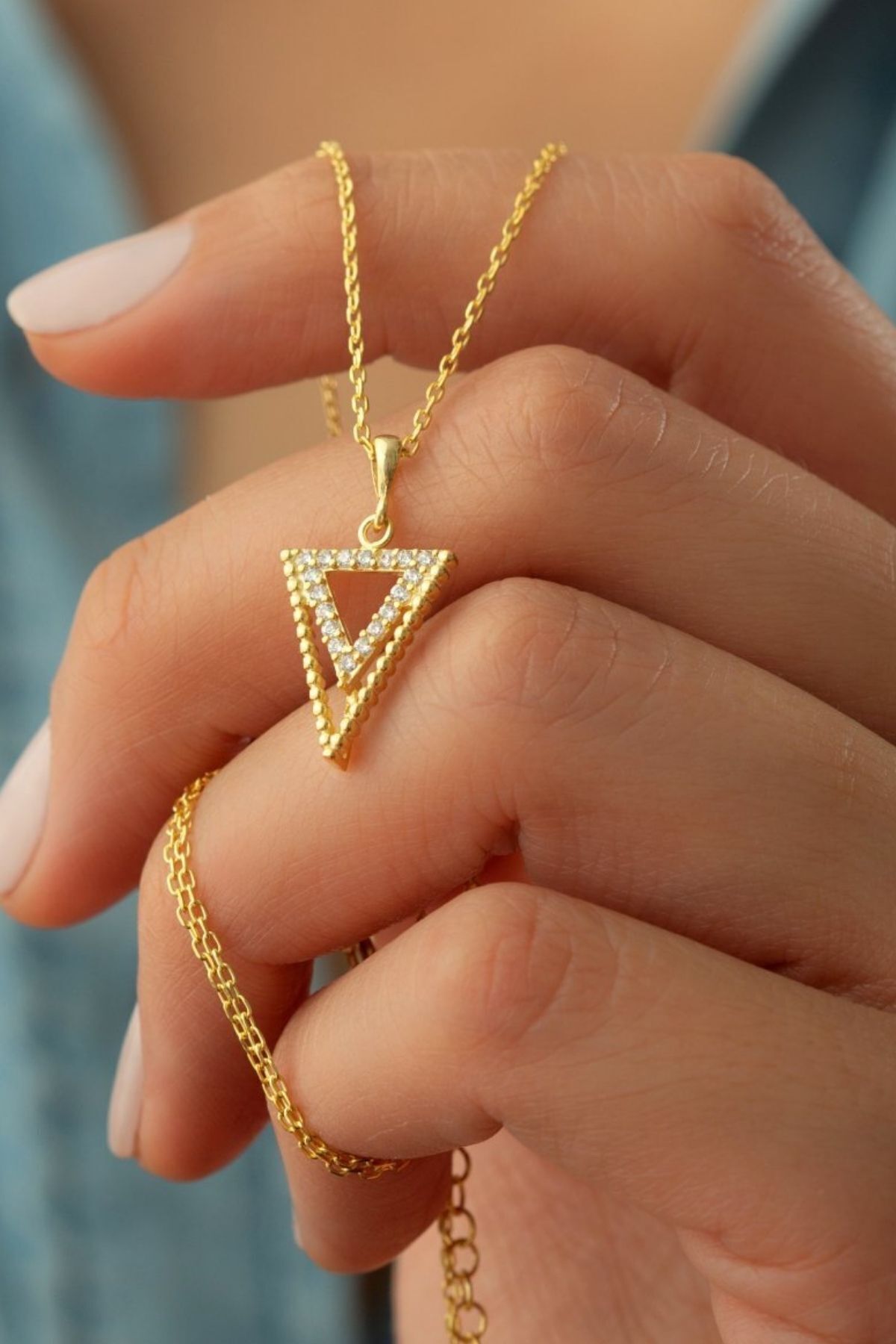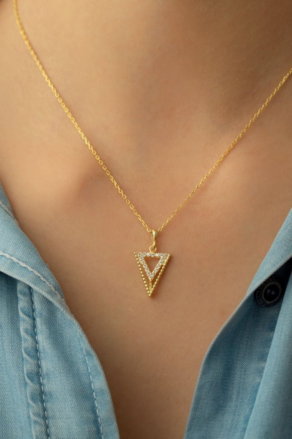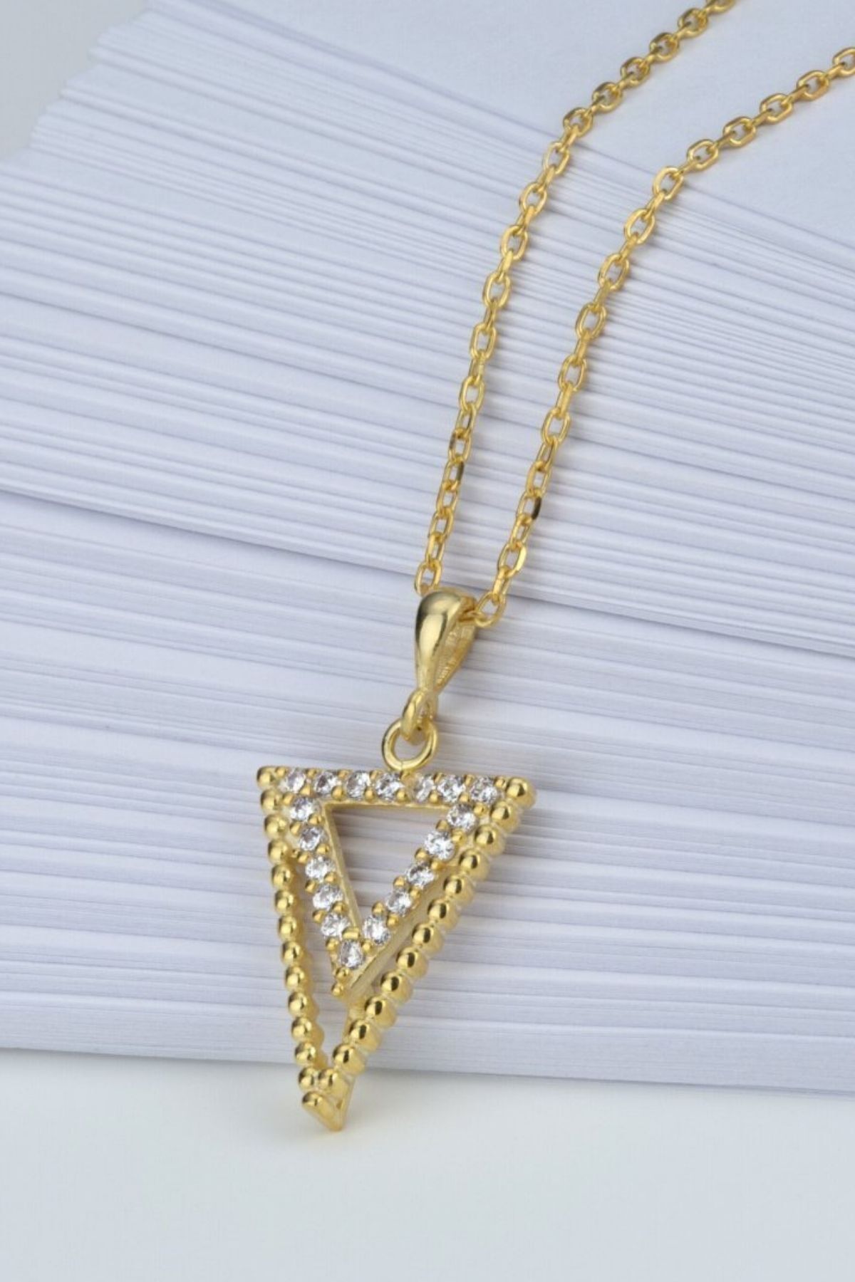 925 Ayar Gümüş Taşlı Üçgen Kolye