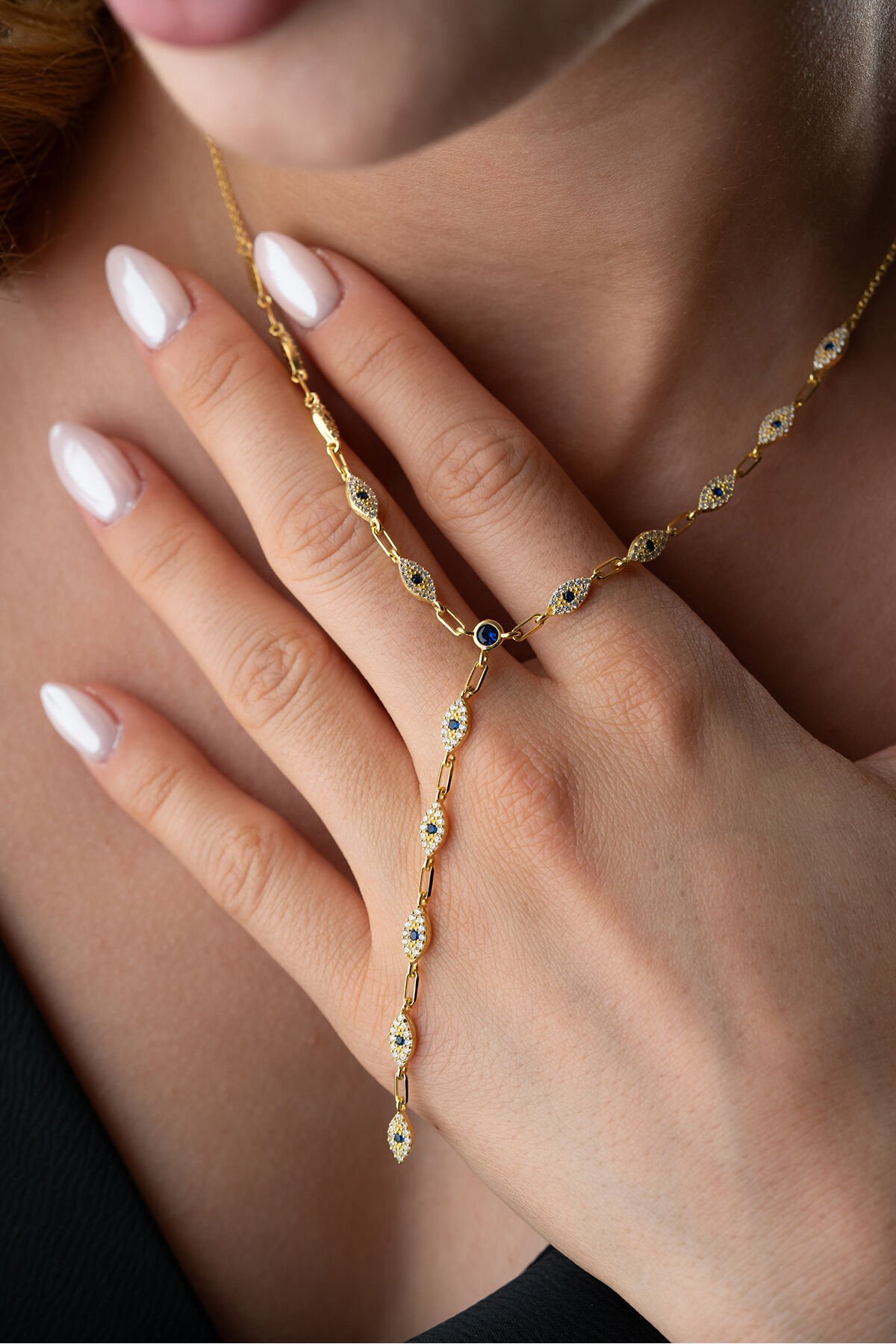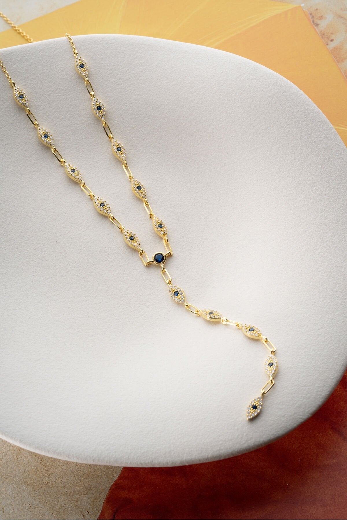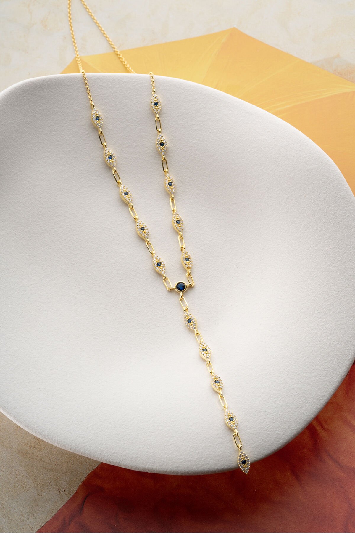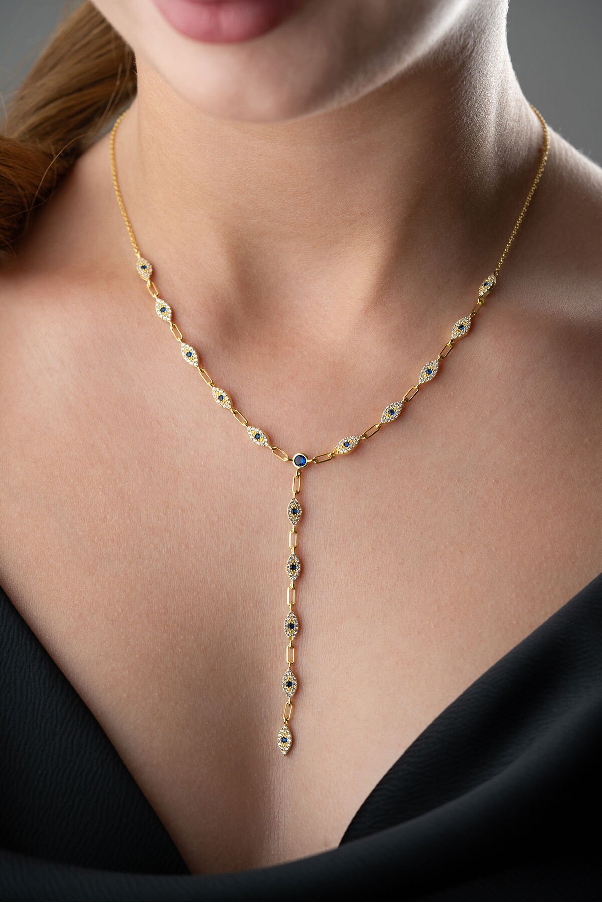 925 Ayar Gümüş Taşlı Y Zincir Göz Kolye