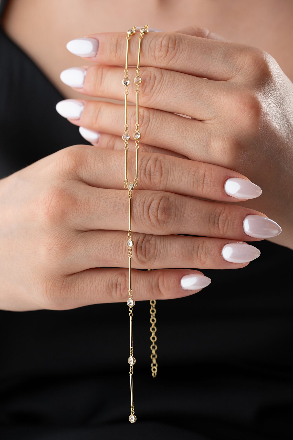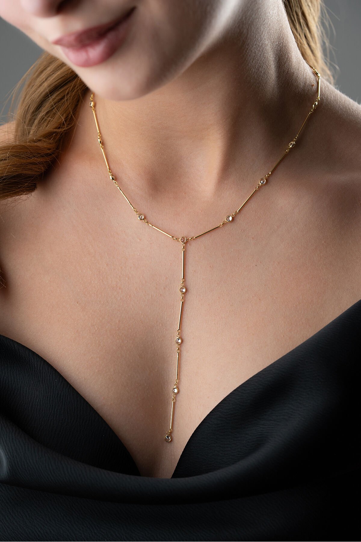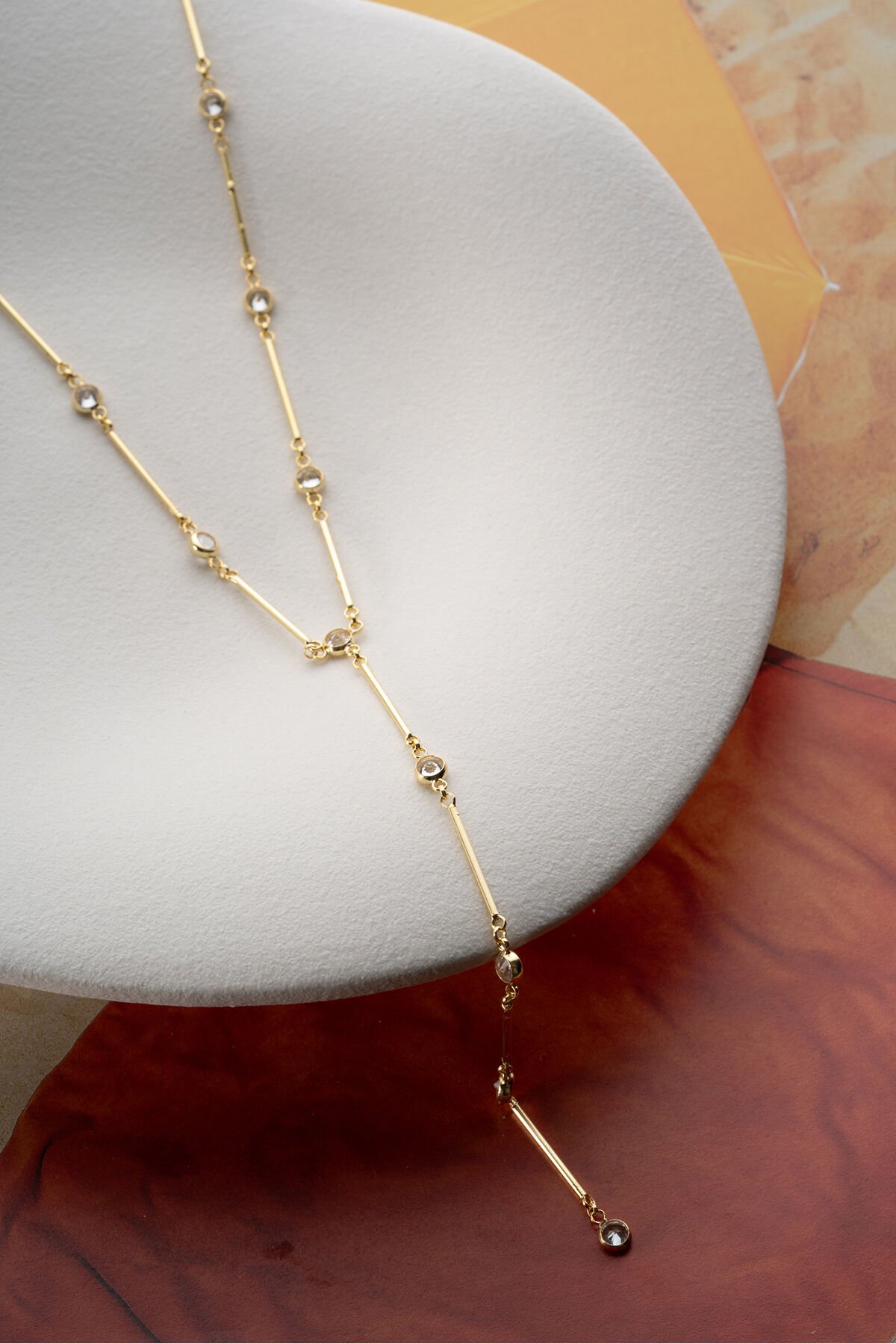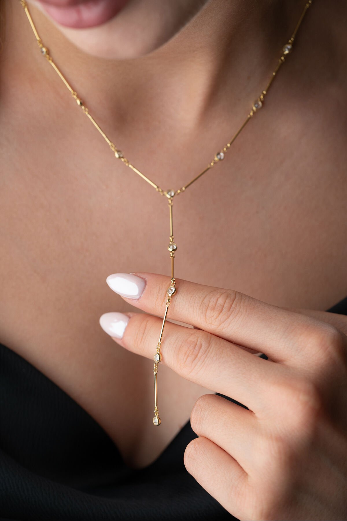 925 Ayar Gümüş Taşlı Y Zincir Kolye