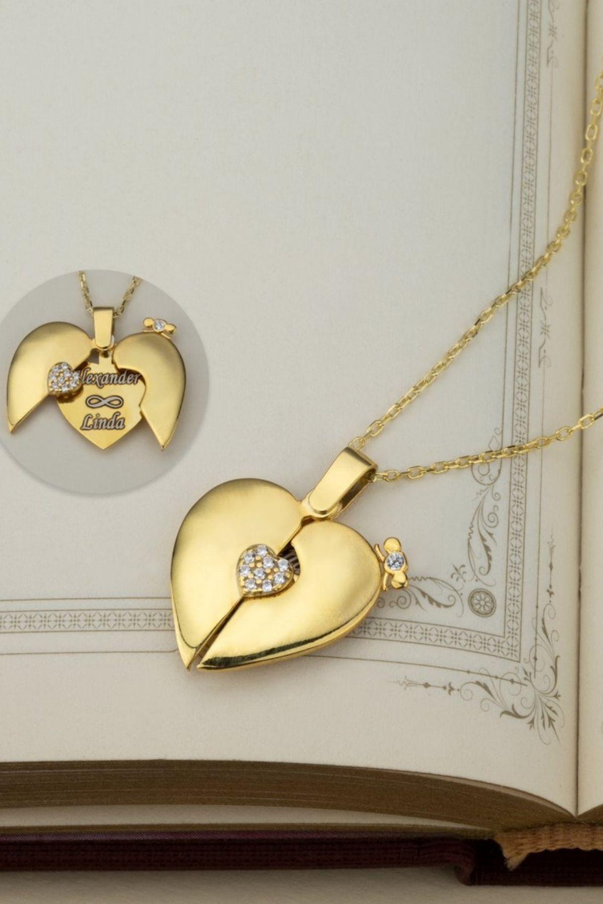 925 Ayar Gümüş Tek Taşlı Açılan Kalp Kolye