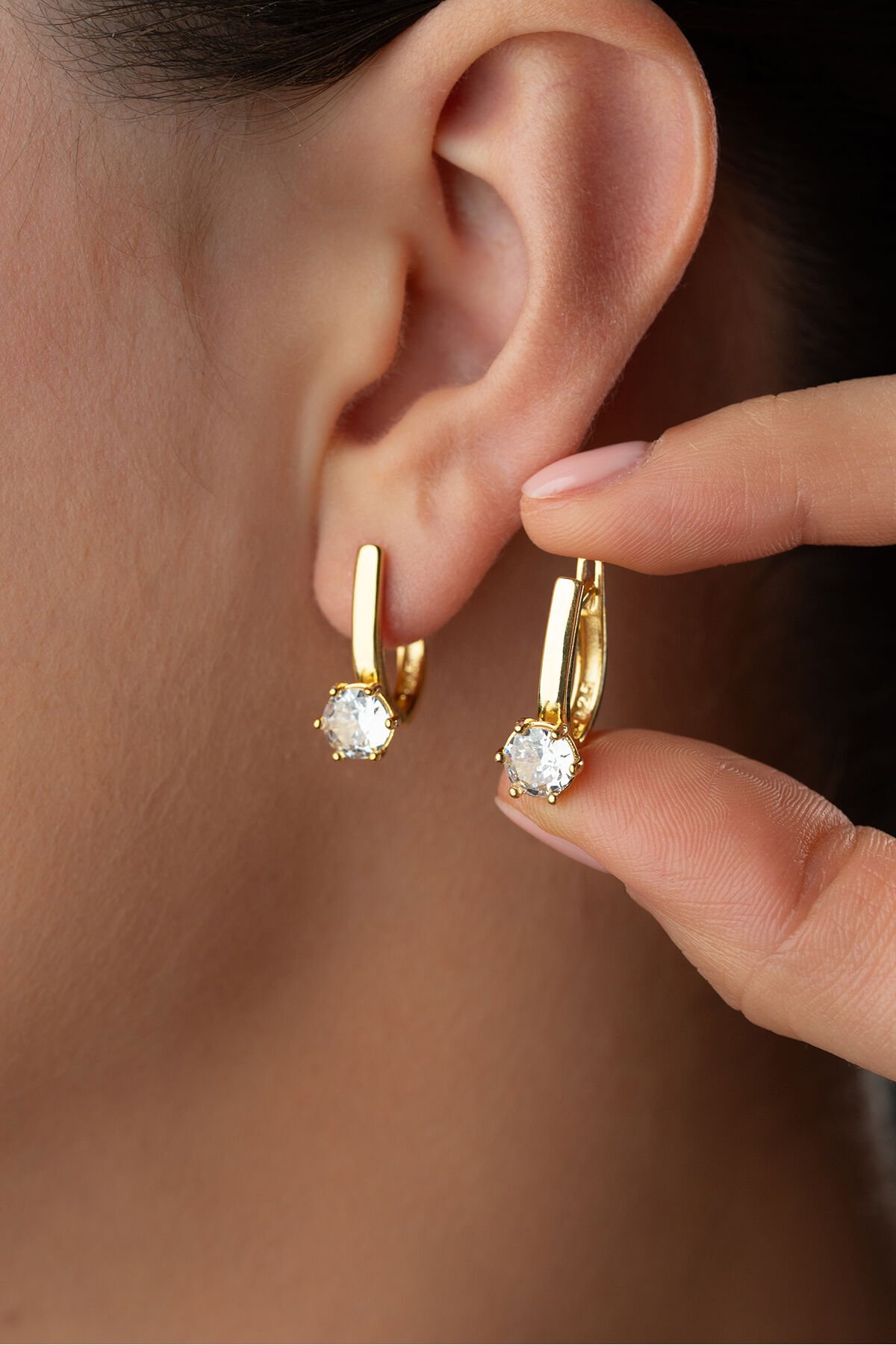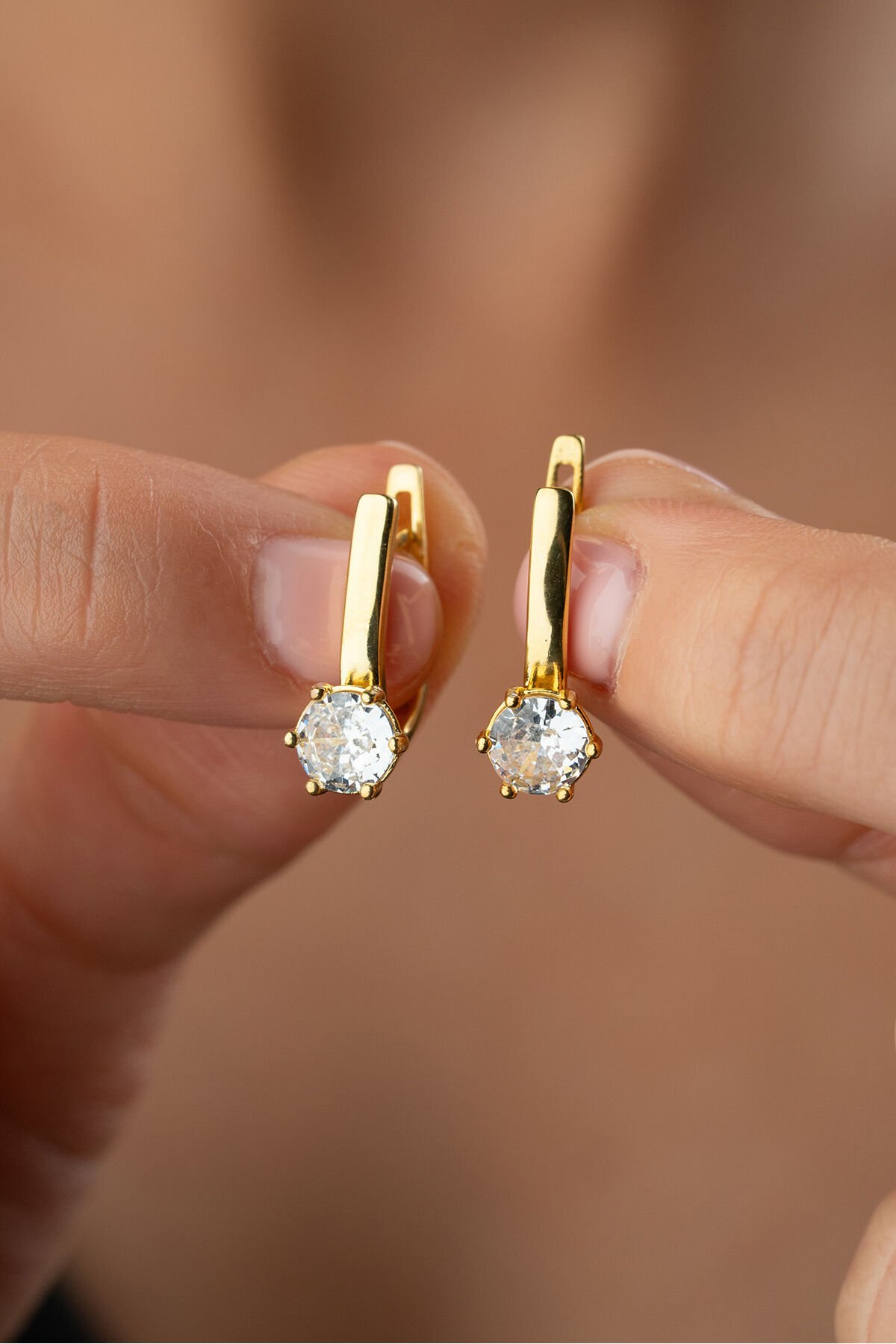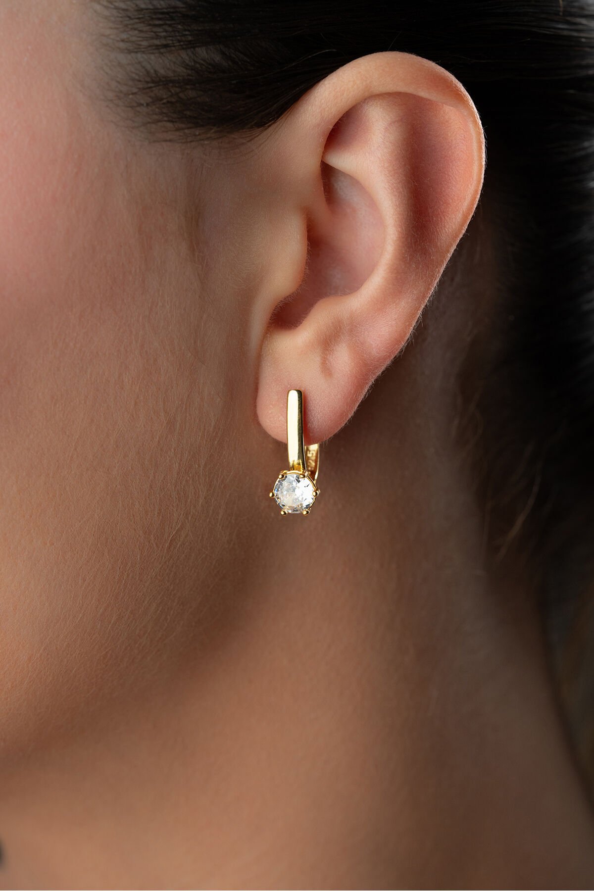 925 Ayar Gümüş Tektaş Aktın Kaplama Küpe