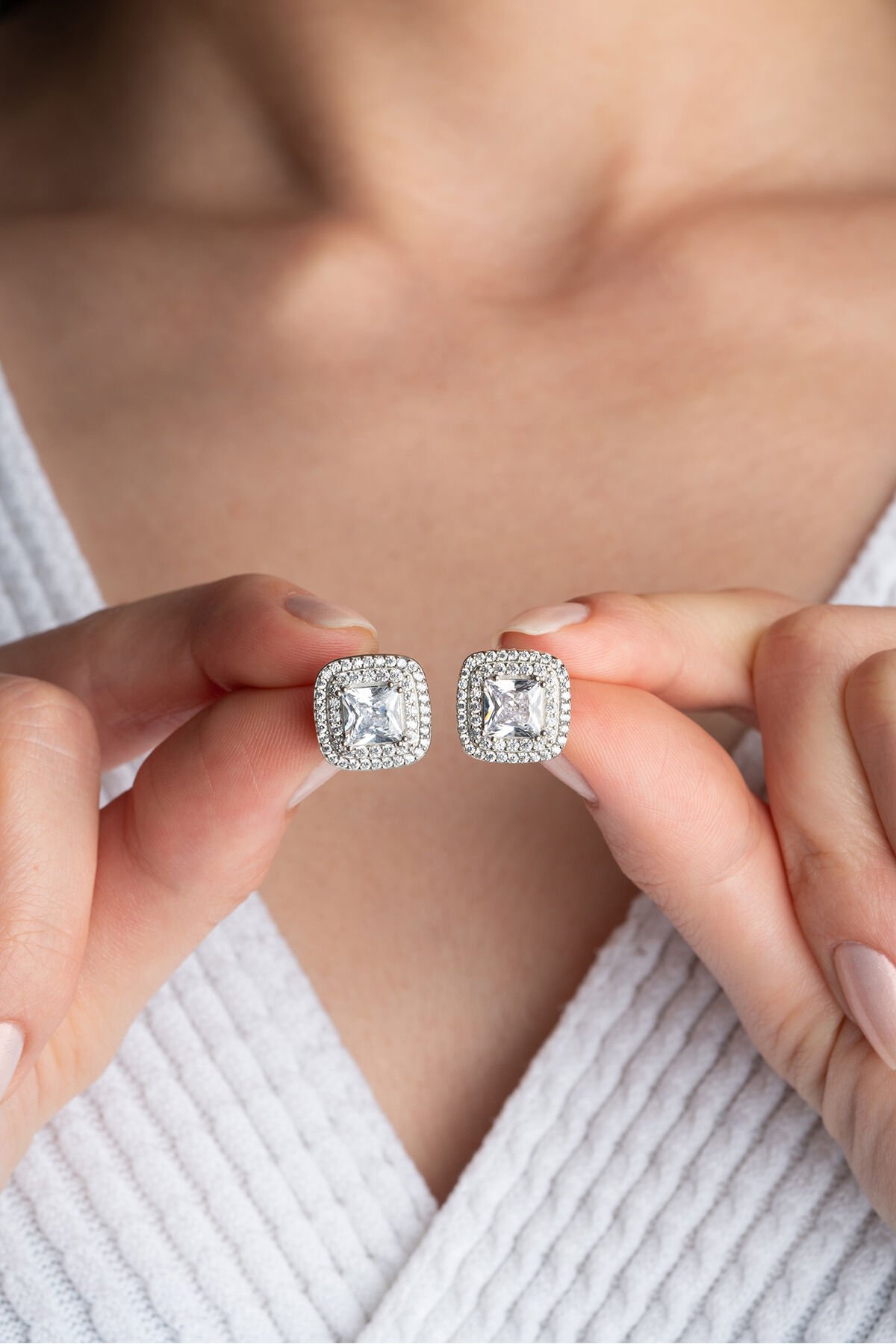925 Ayar Gümüş Tektaş Çivili Küpe