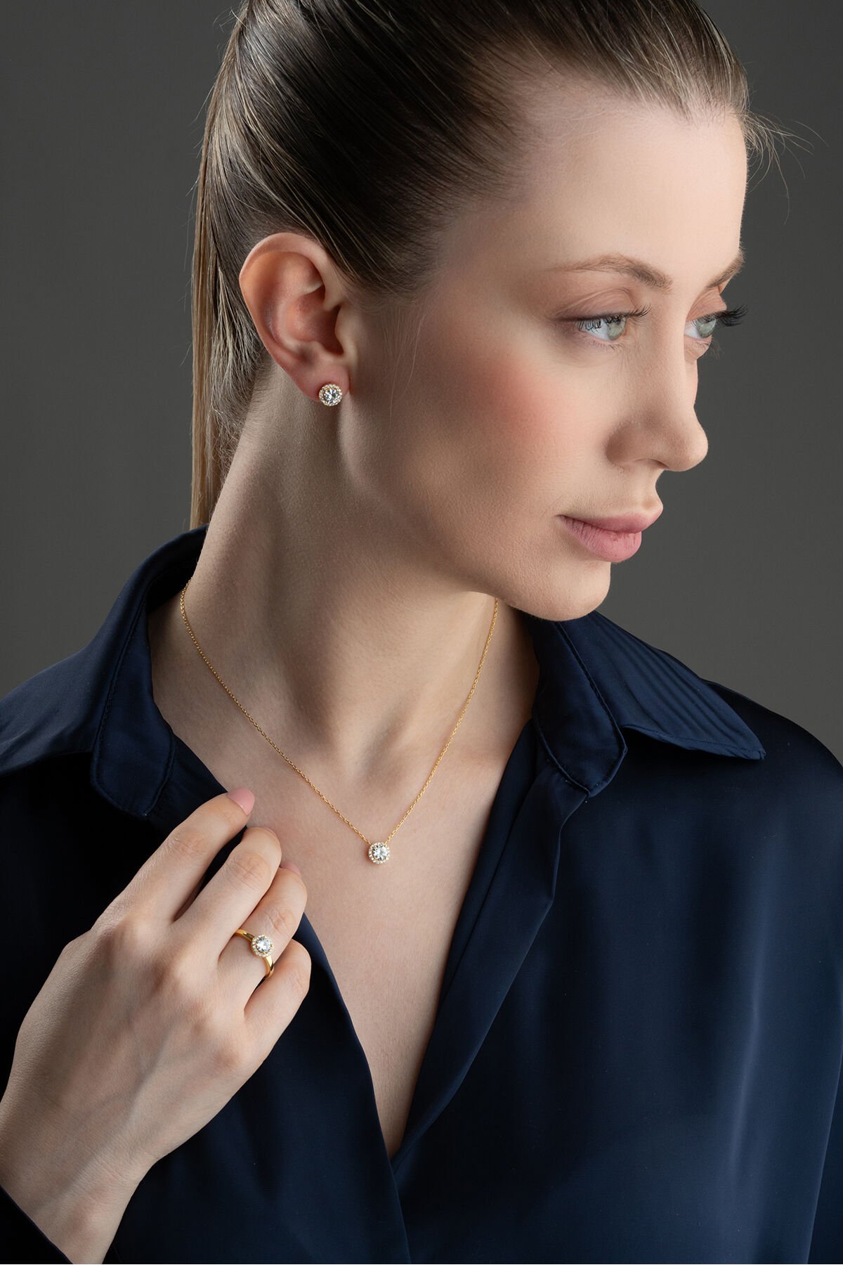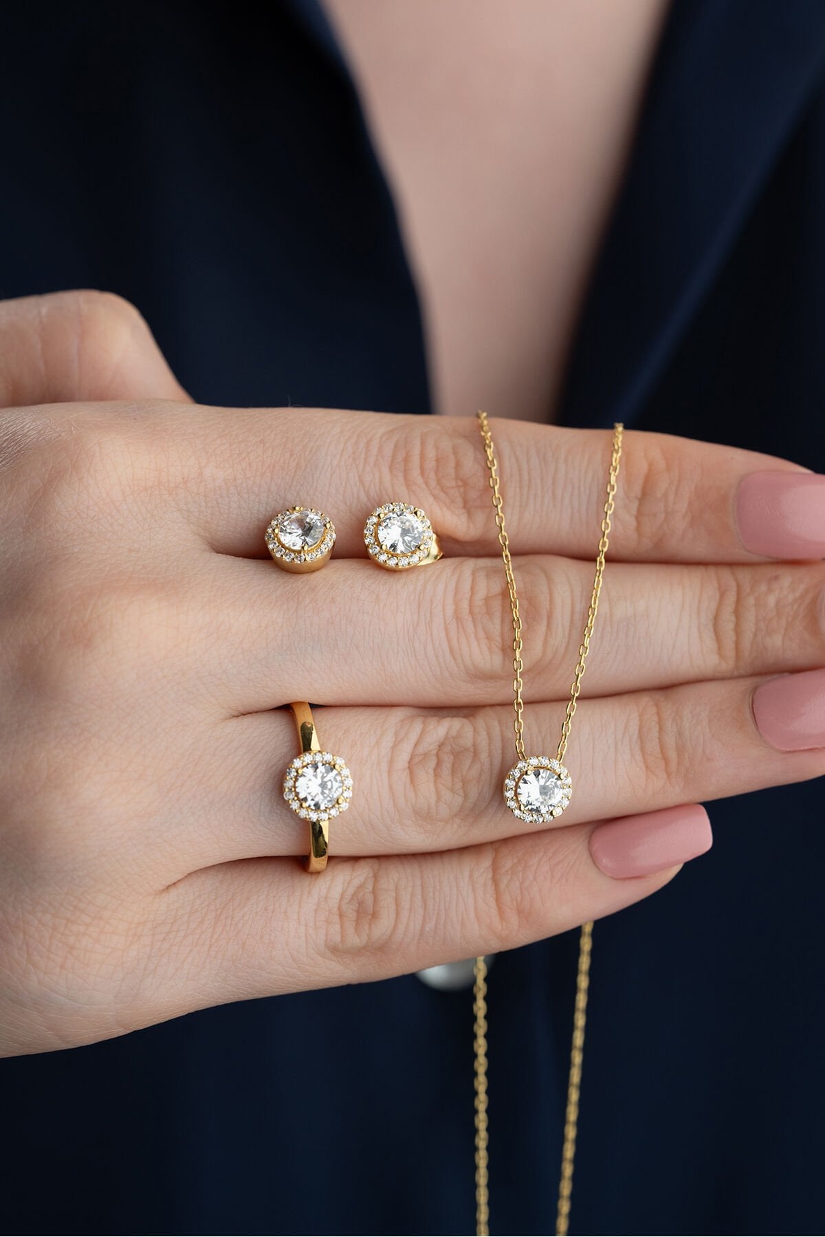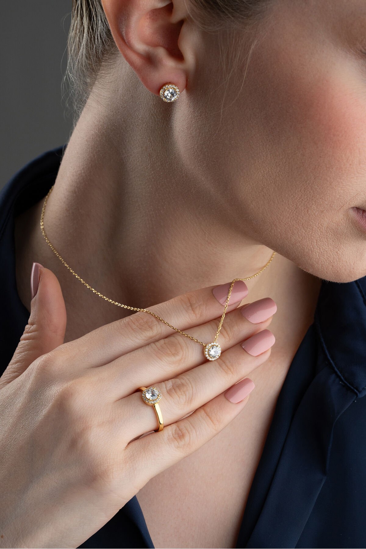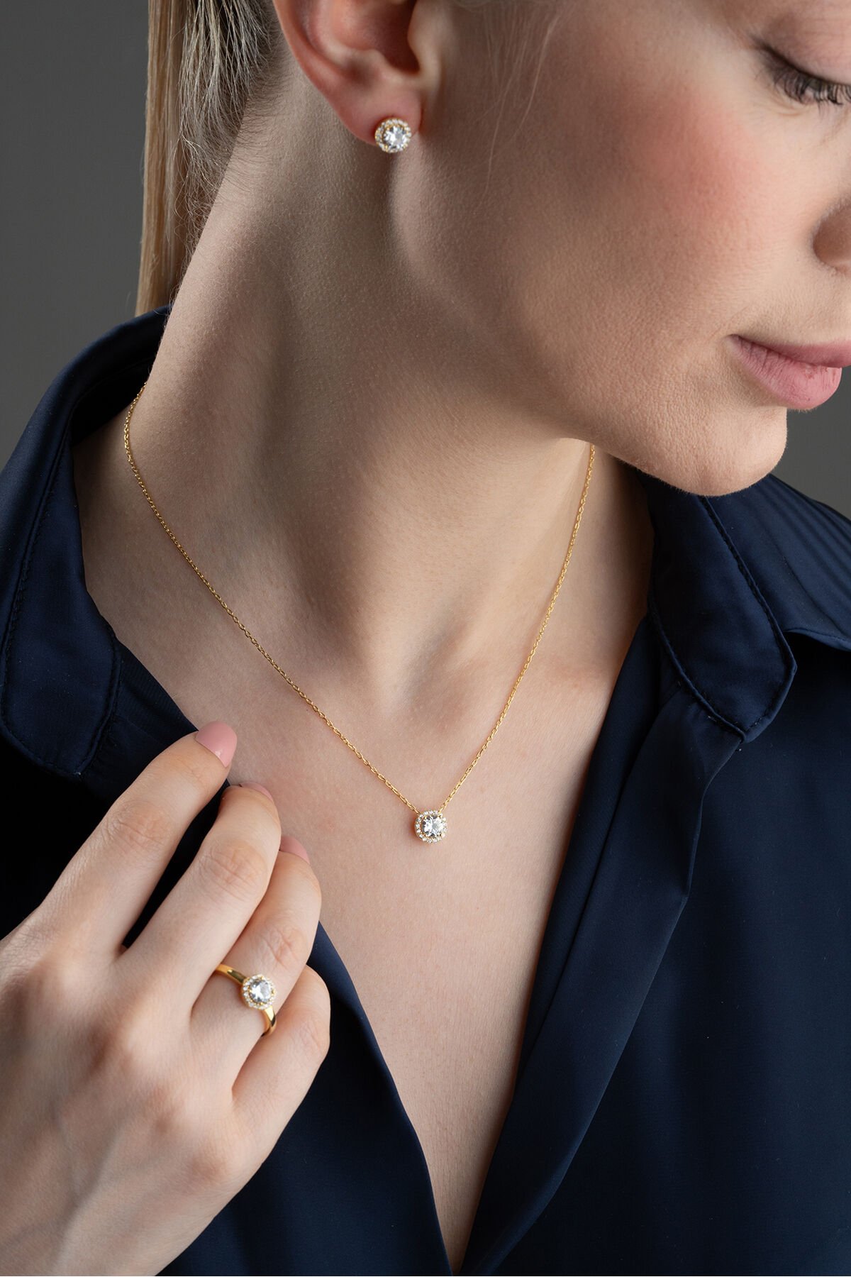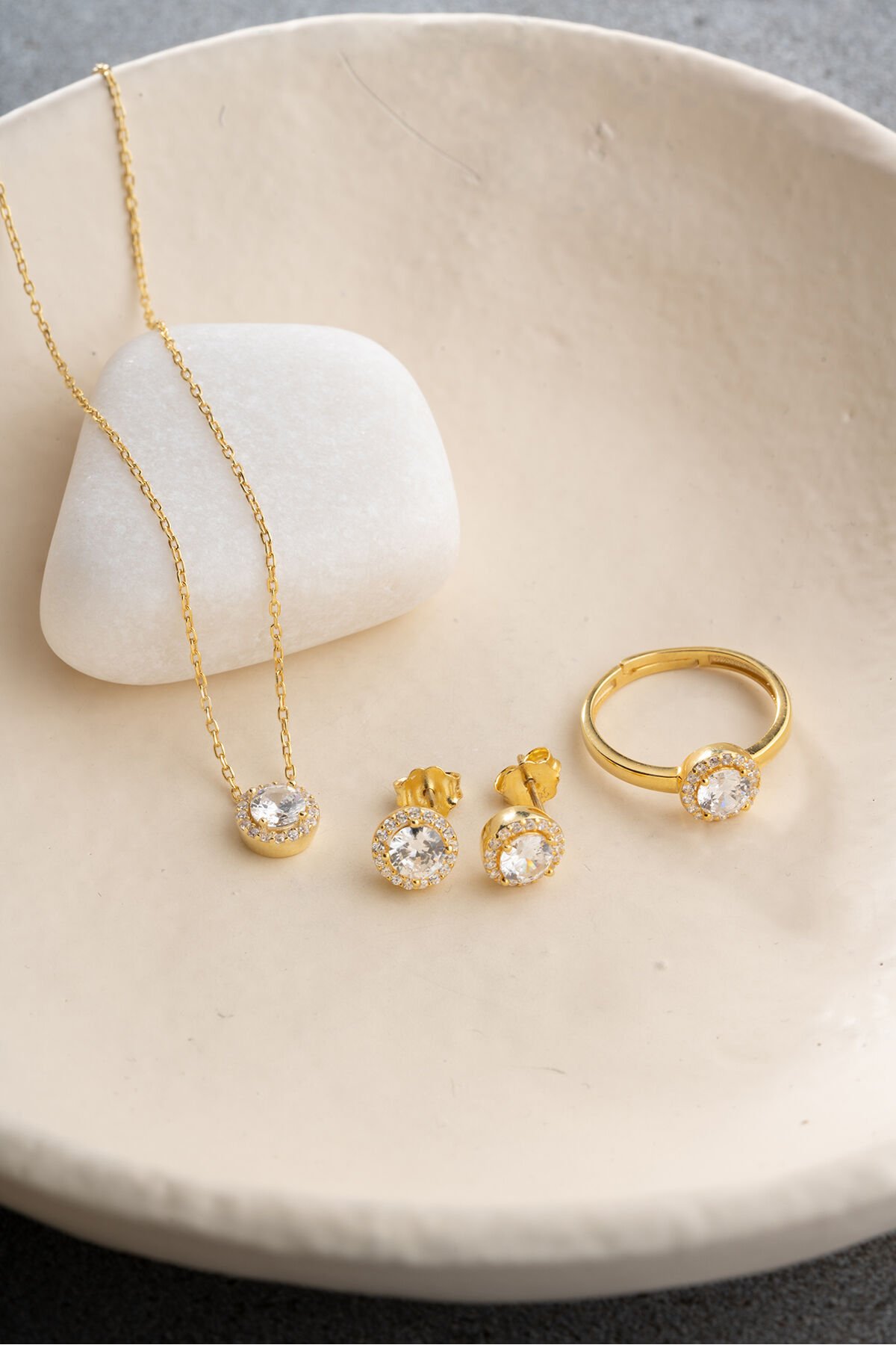 925 Ayar Gümüş Tektaş Model Takı Seti