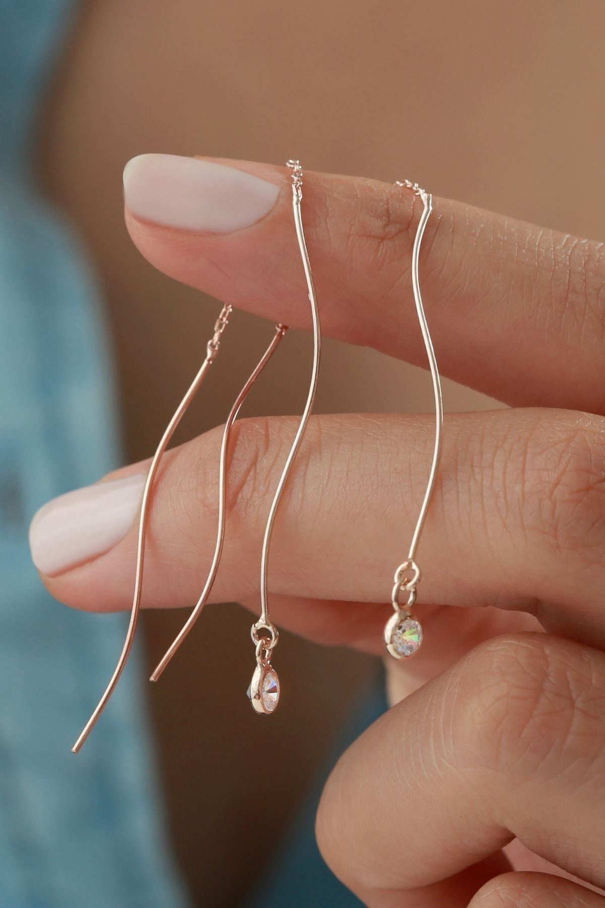 925 Ayar Gümüş Tektaşlı Askı Küpe