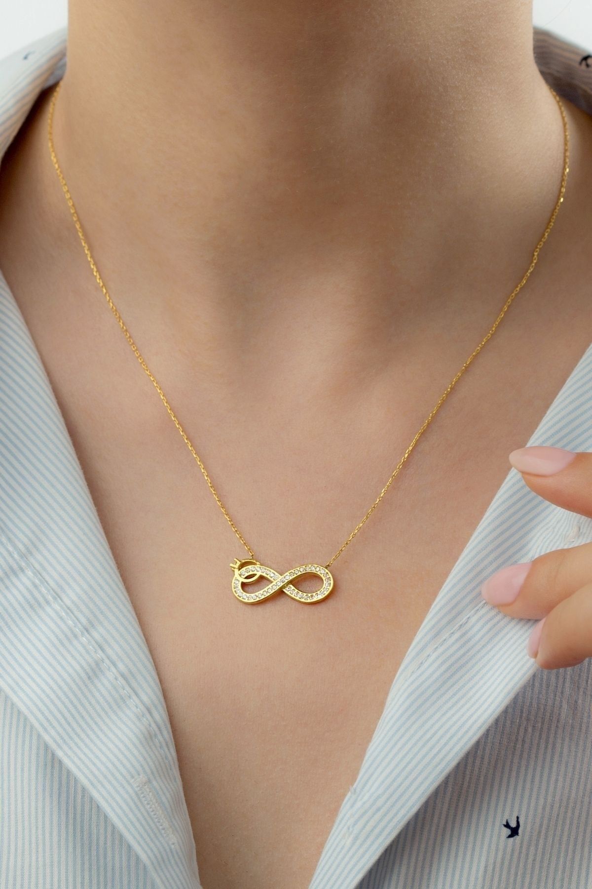 925 Ayar Gümüş Tektaşlı Sonsuzluk Kolye