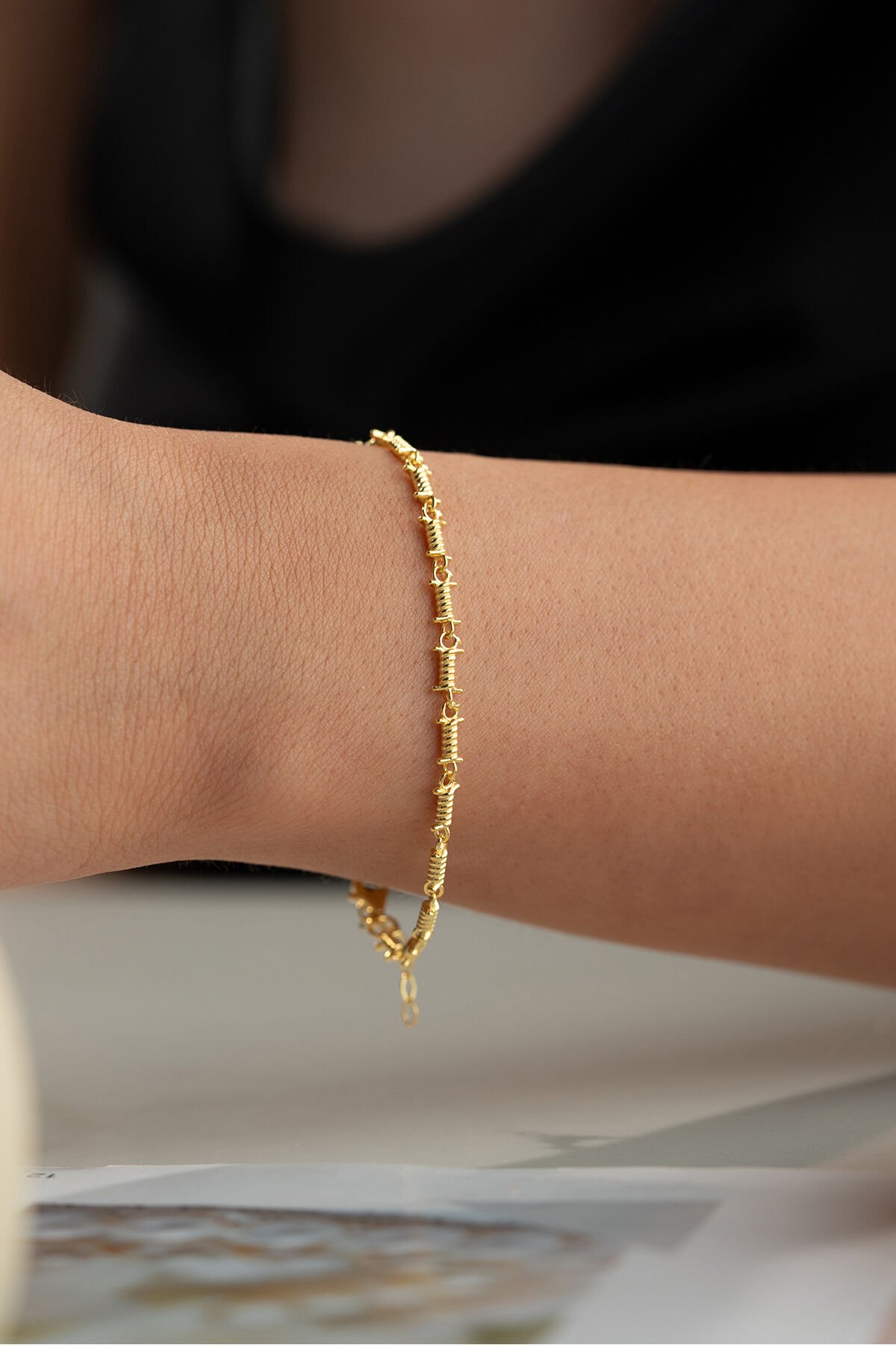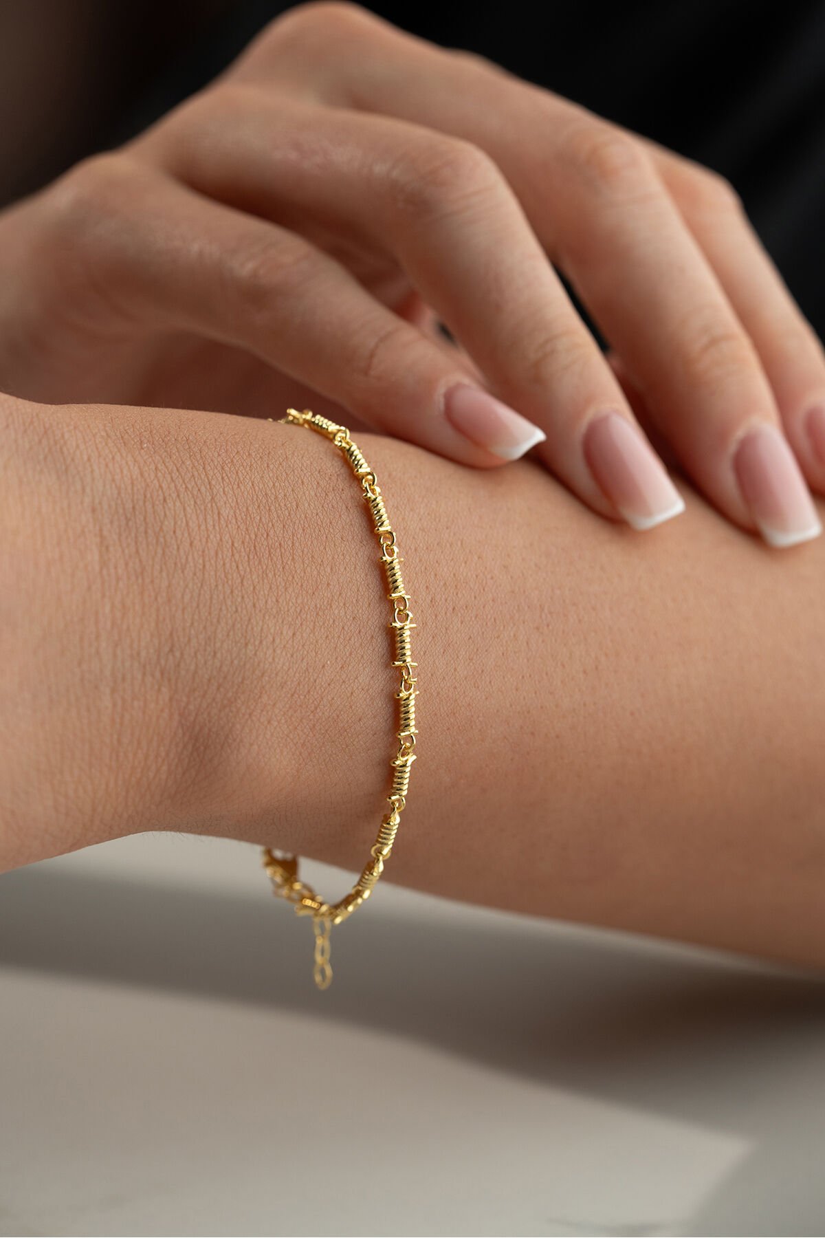 925 Ayar Gümüş bileklik ; Zarif ve ince tasarımı ile her kombine uyum sağlayan bu kolye, günlük kullanım için idealdir.; - Malzeme: 925 ayar gümüş - Boy: 42 cm (idealdir ve rahat bir kullanım sunar) - Özellikler: Hafif ve zarif yapısı ile boynunuza doğal bir ışıltı katar.; 925 Ayar Gümüş Bilekliğimiz Sade ama şık tasarımı ile bileğinize ince bir dokunuş katın.; Günlük ve özel günlerde rahatça kullanabilirsiniz.; - Malzeme: 925 ayar gümüş - Boy: Ayarlanabilir (17 cm - 20 cm arası) - Özellikler: Dayanıklı yapısı ile uzun ömürlü kullanım sağlar, hafif ve rahattır.; Tabii, işte kısa ve anlaşılır bir şekilde 925 ayar gümüş takıların saklama ve kullanma koşulları: 925 Ayar Gümüş Takıların Saklama Koşulları: - Kuru ve serin yerde saklayın: Gümüş takılar nemden uzak tutulmalıdır.; Nem, gümüşün kararmasına neden olabilir.; - Kapalı kutuda muhafaza edin: Takılarınızı hava almayan mücevher kutusunda veya kumaş keselerde saklayarak oksitlenmeyi önleyebilirsiniz.; - Diğer takılarla temas ettirmeyin: Çizilmeleri önlemek için gümüş takılarınızı diğer takılardan ayrı tutun.; 925 Ayar Gümüş Takıların Kullanma Koşulları: - Su ve kimyasallardan uzak tutun: Gümüş takılarınızı parfüm, krem, saç spreyi gibi kimyasallarla temas ettirmeyin ve suya maruz bırakmayın.; - Düzenli temizleyin: Yumuşak bir bezle düzenli olarak temizleyerek parlaklığını koruyun.; - Uyurken ve spor yaparken çıkartın: Takılarınızı zarar görmemesi için uyurken, spor yaparken veya yoğun fiziksel aktivitelerde çıkarın.; Bu basit kurallar, gümüş takılarınızın uzun ömürlü ve parlak kalmasını sağlayacaktır.;;
