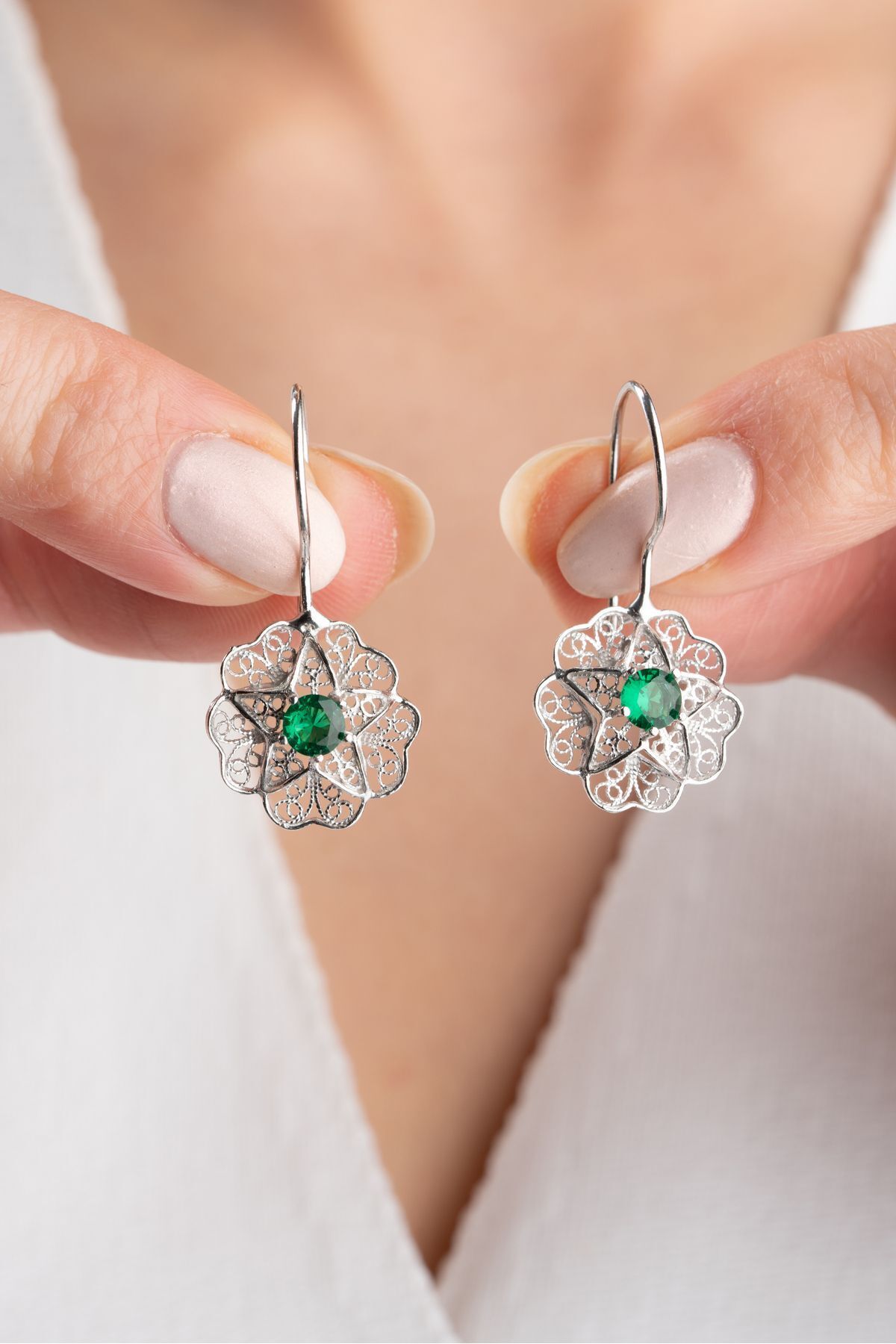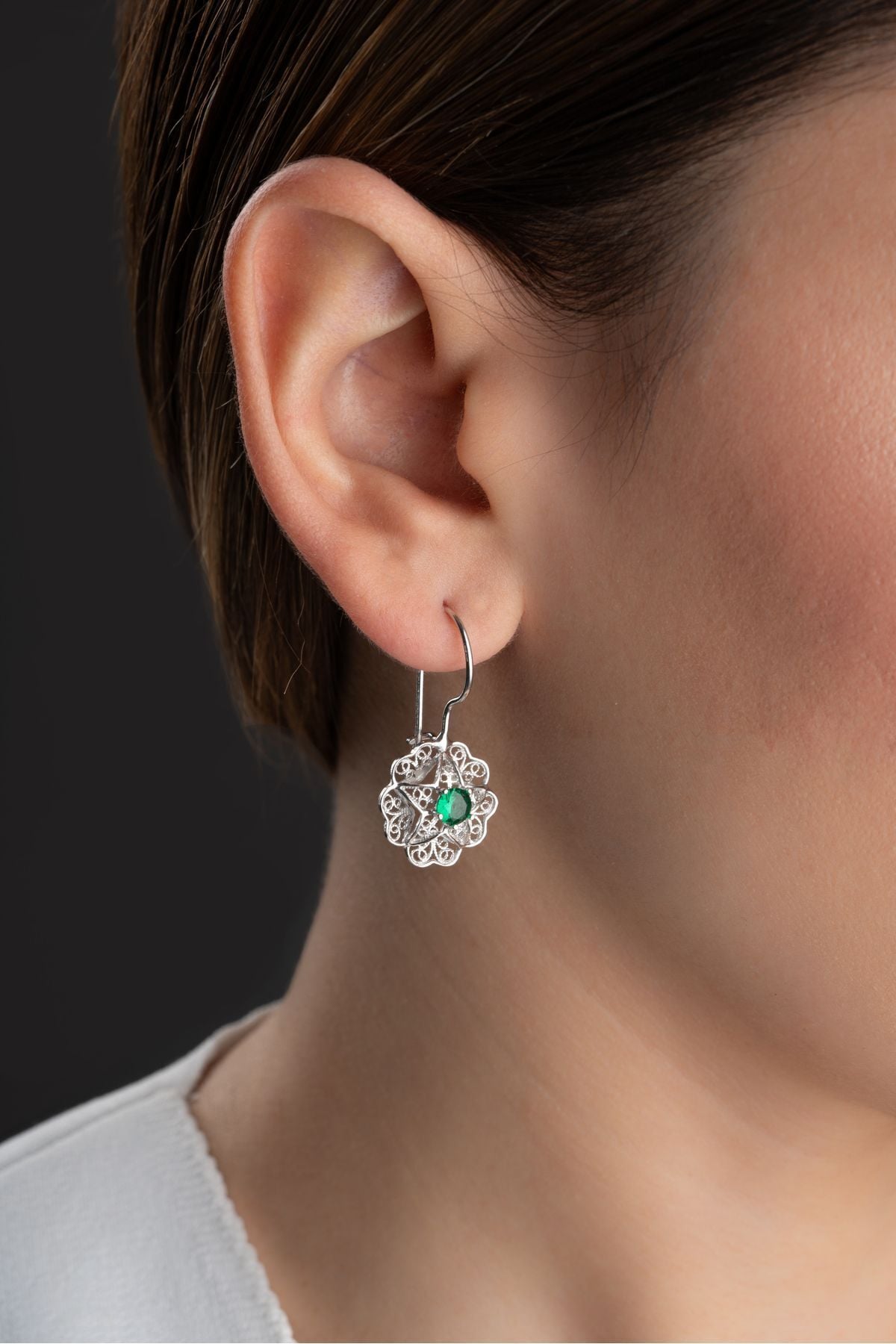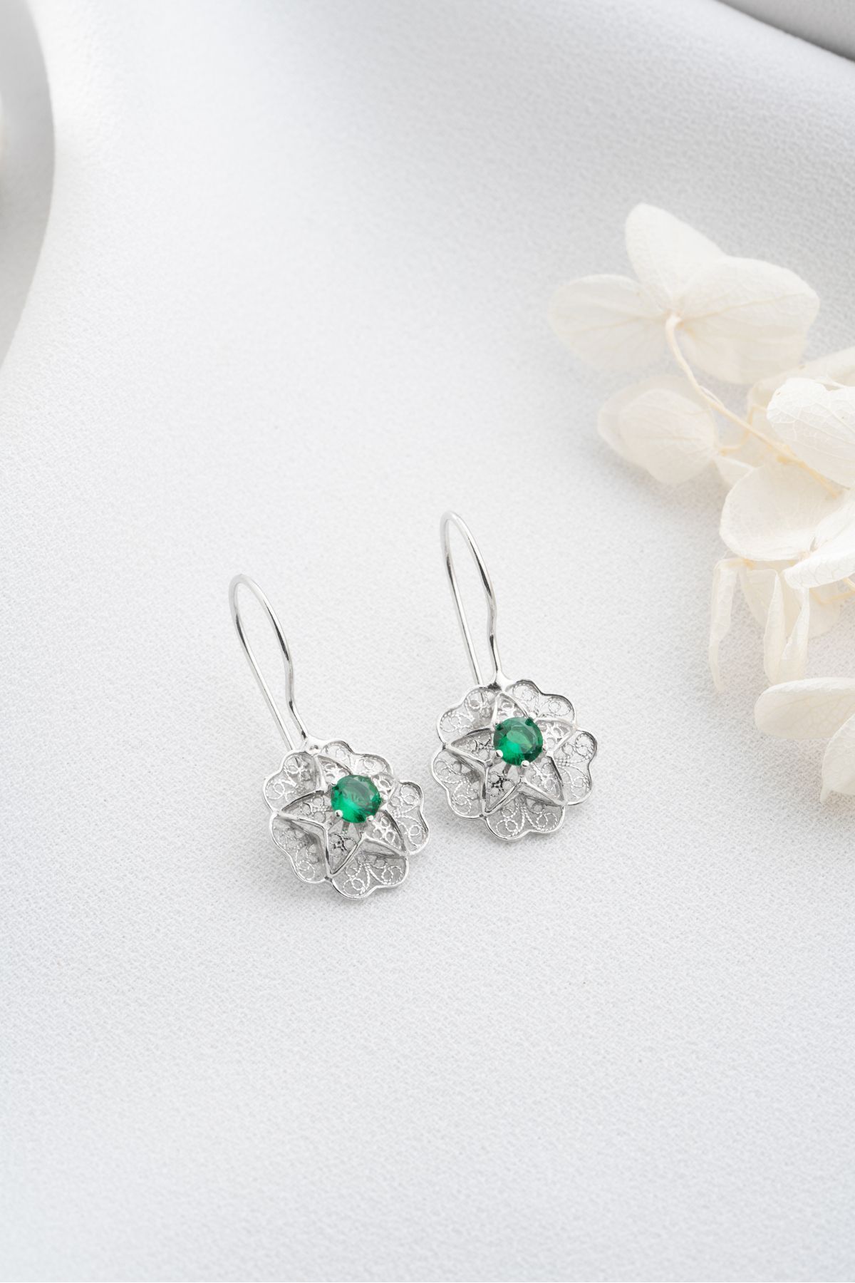 925 Ayar Gümüş Telkari İşlemeli Sallantılı Küpe
