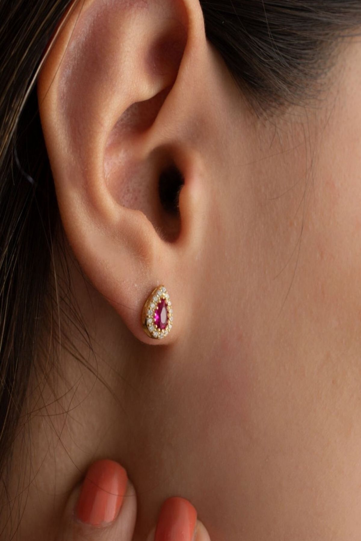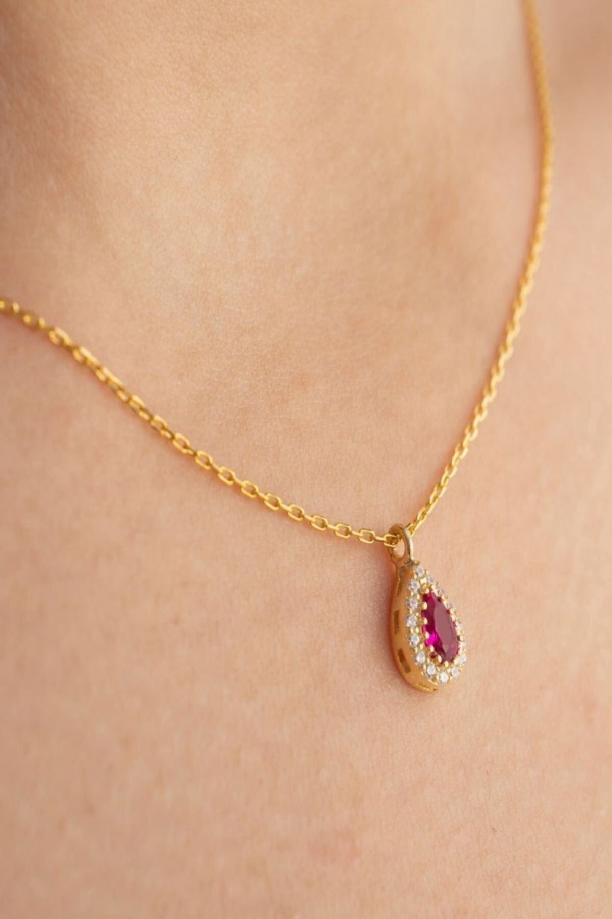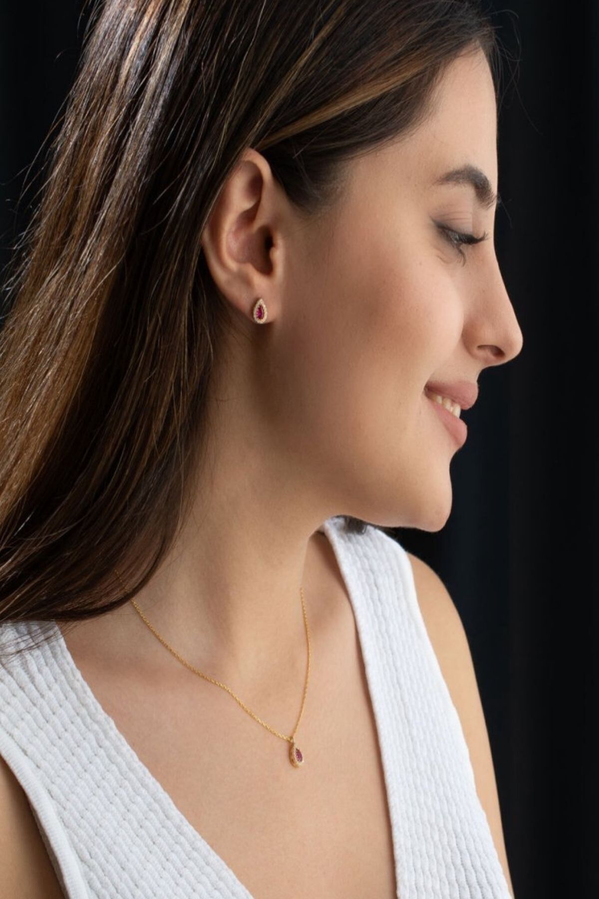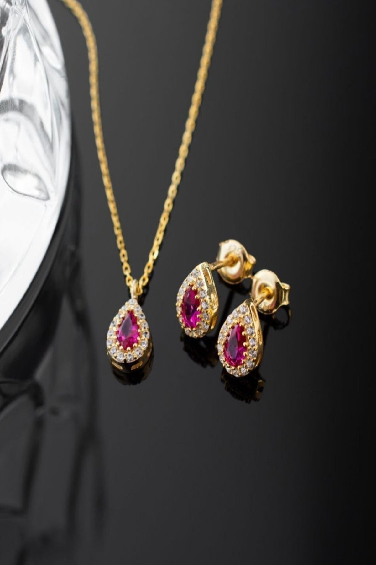 925 Ayar Gümüş Temmuz Ayı Doğum Taşı ( Ruby ) Kolye - Küpe Seti