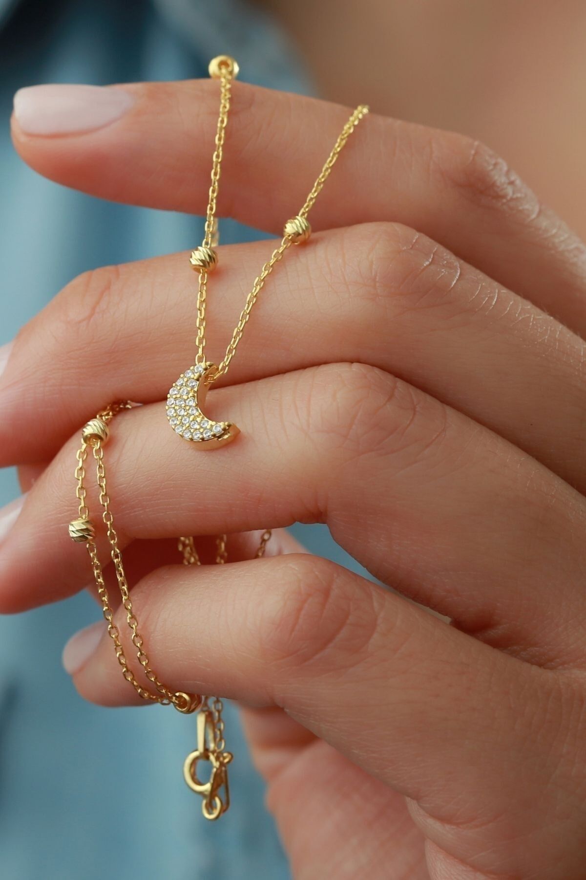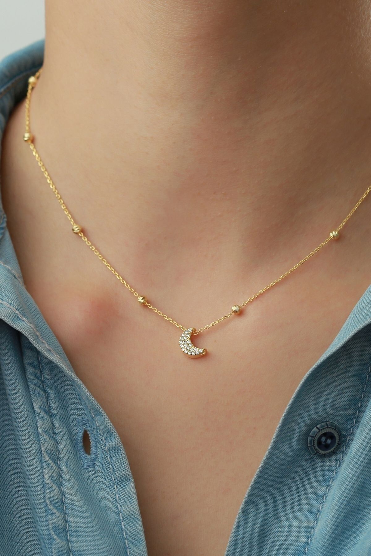 925 Ayar Gümüş Top Zincirli Ay Kolye