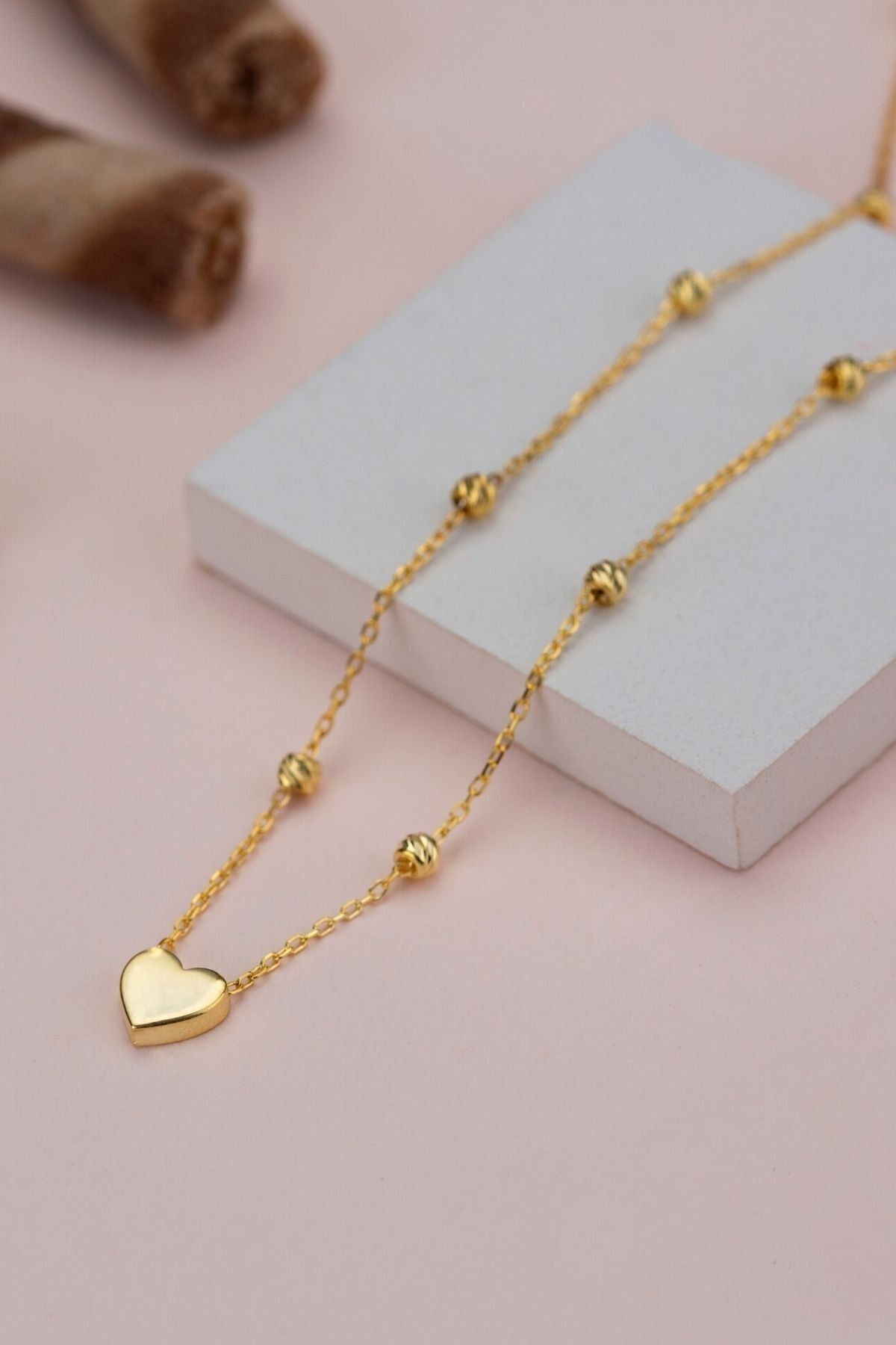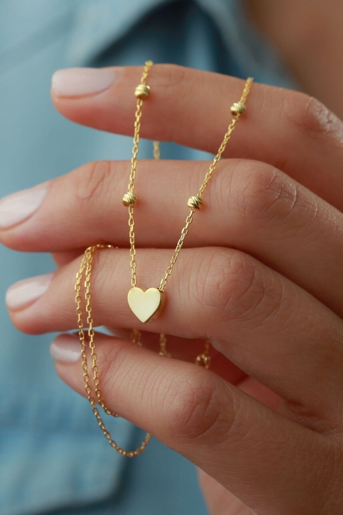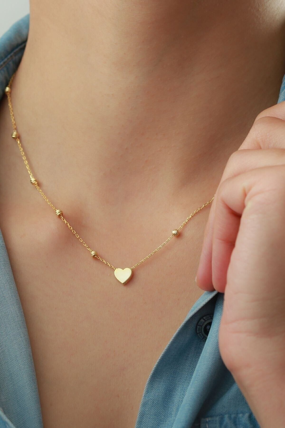 925 Ayar Gümüş Top Zincirli Kalp Kolye