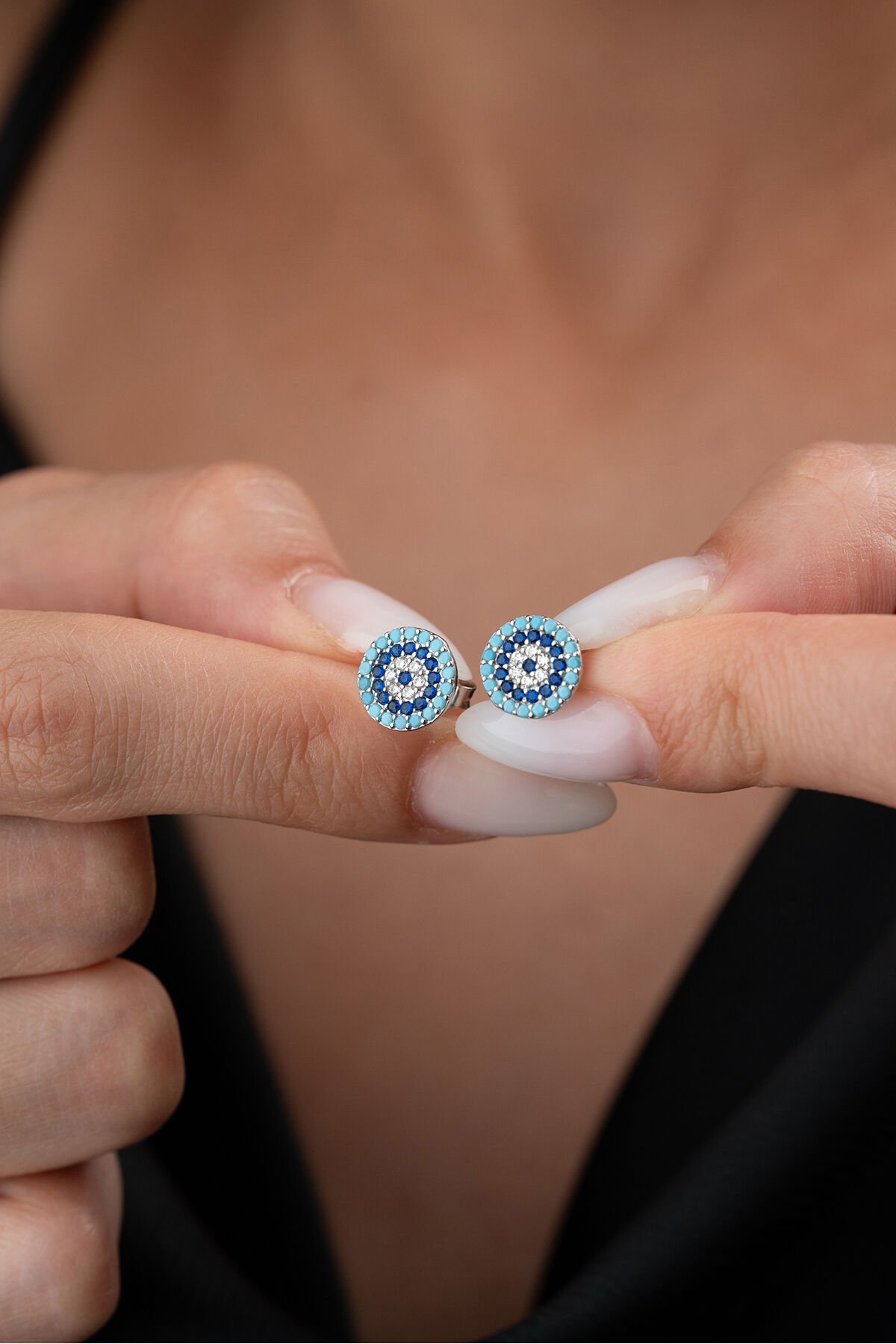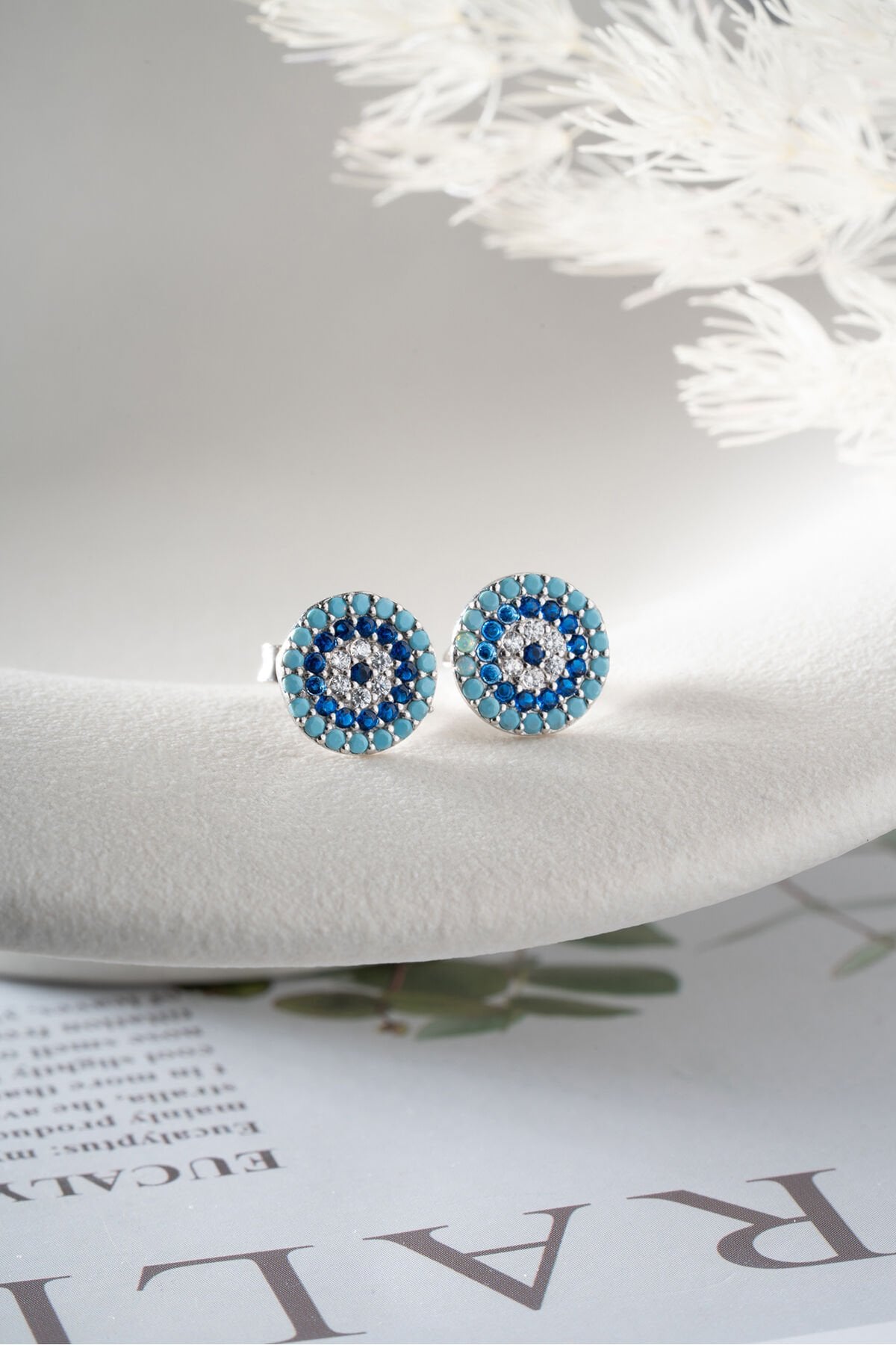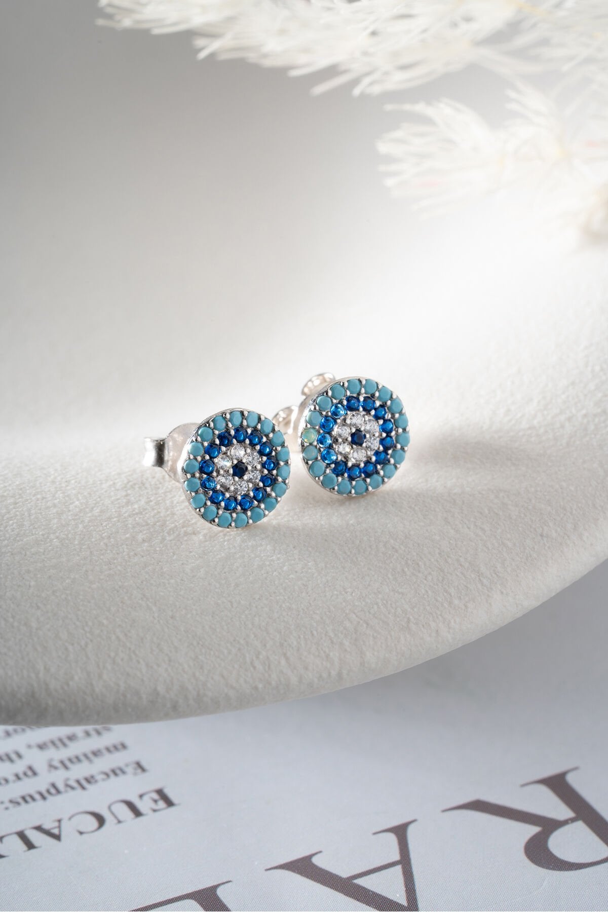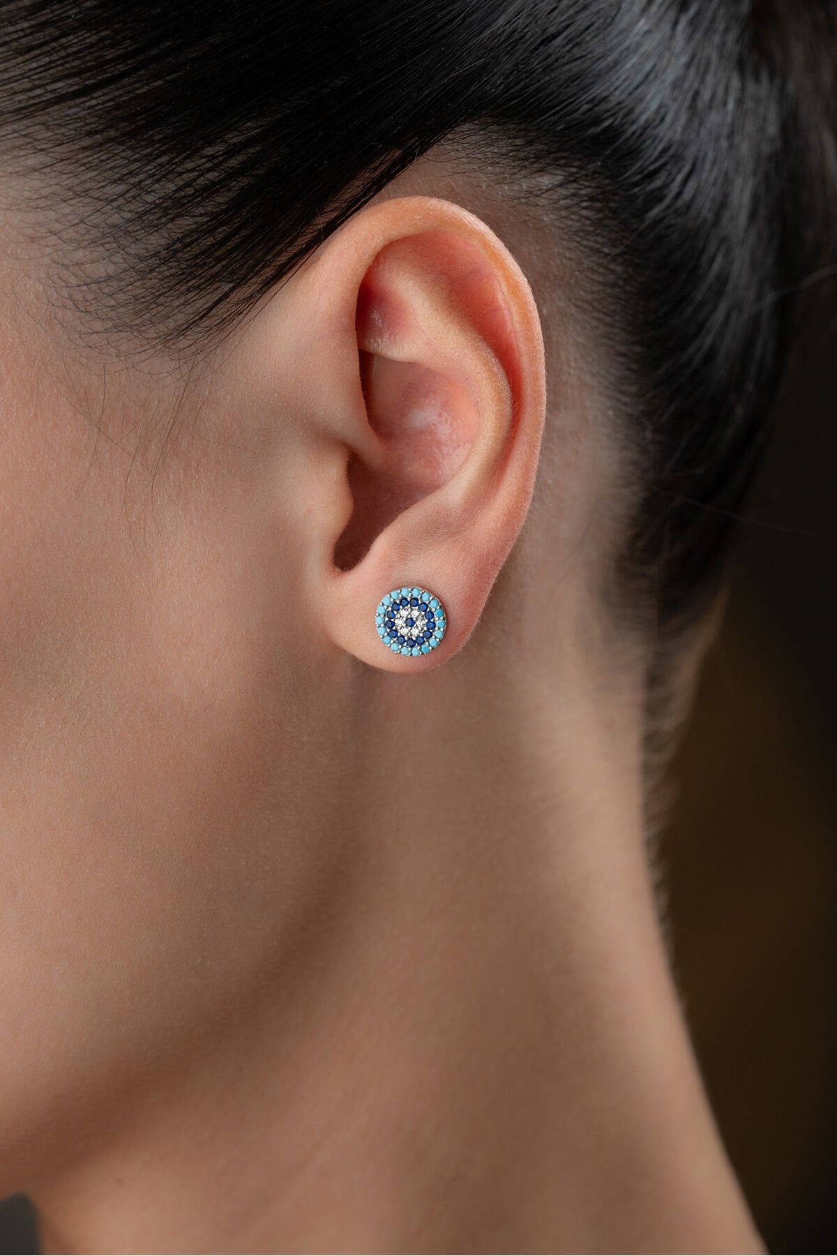 925 Ayar Gümüş Turkuaz Taşlı Göz Nazar Çivili Küpe