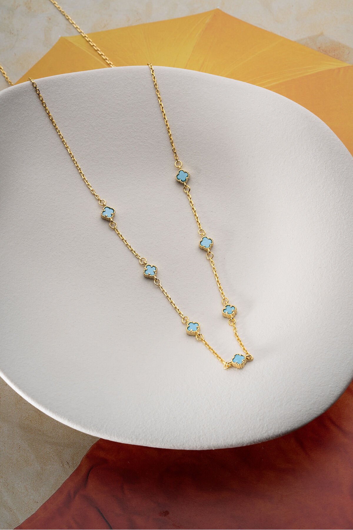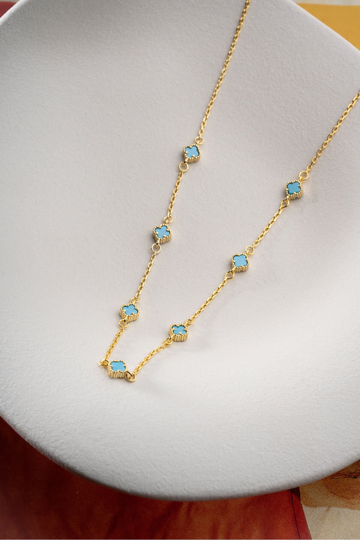 925 Ayar Gümüş Turkuaz Taşlı Yonca Kolye