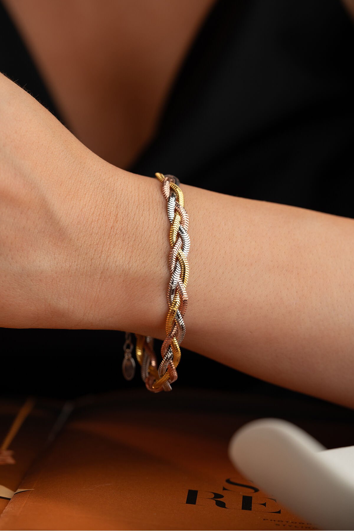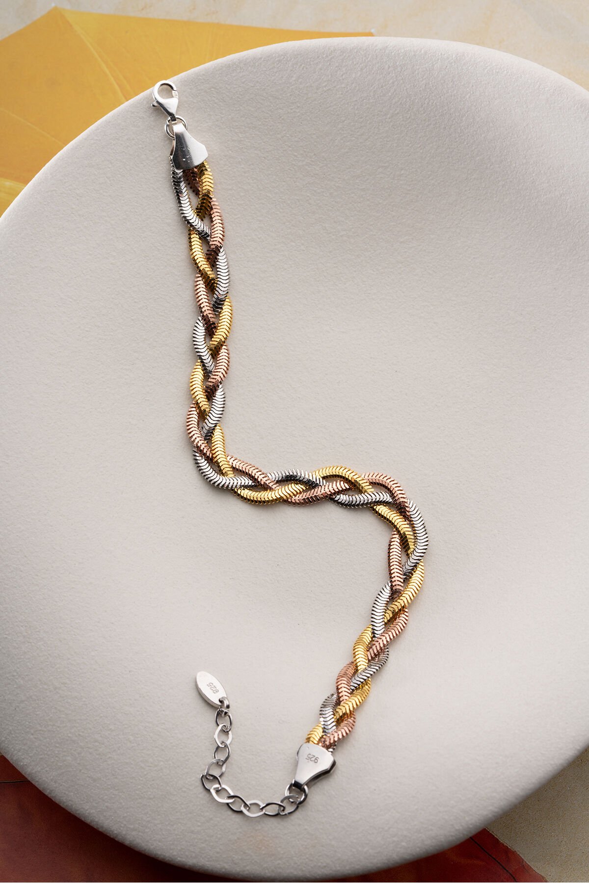 925 Ayar Gümüş Üç Renk İtalyan Ezme Zincir Bileklik